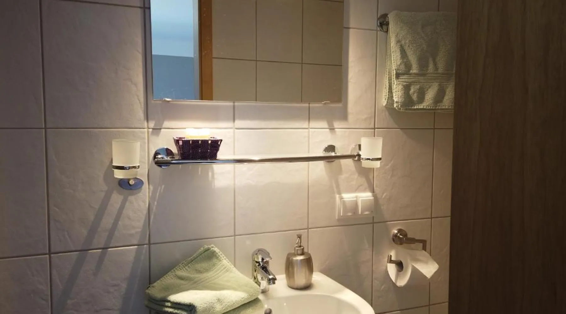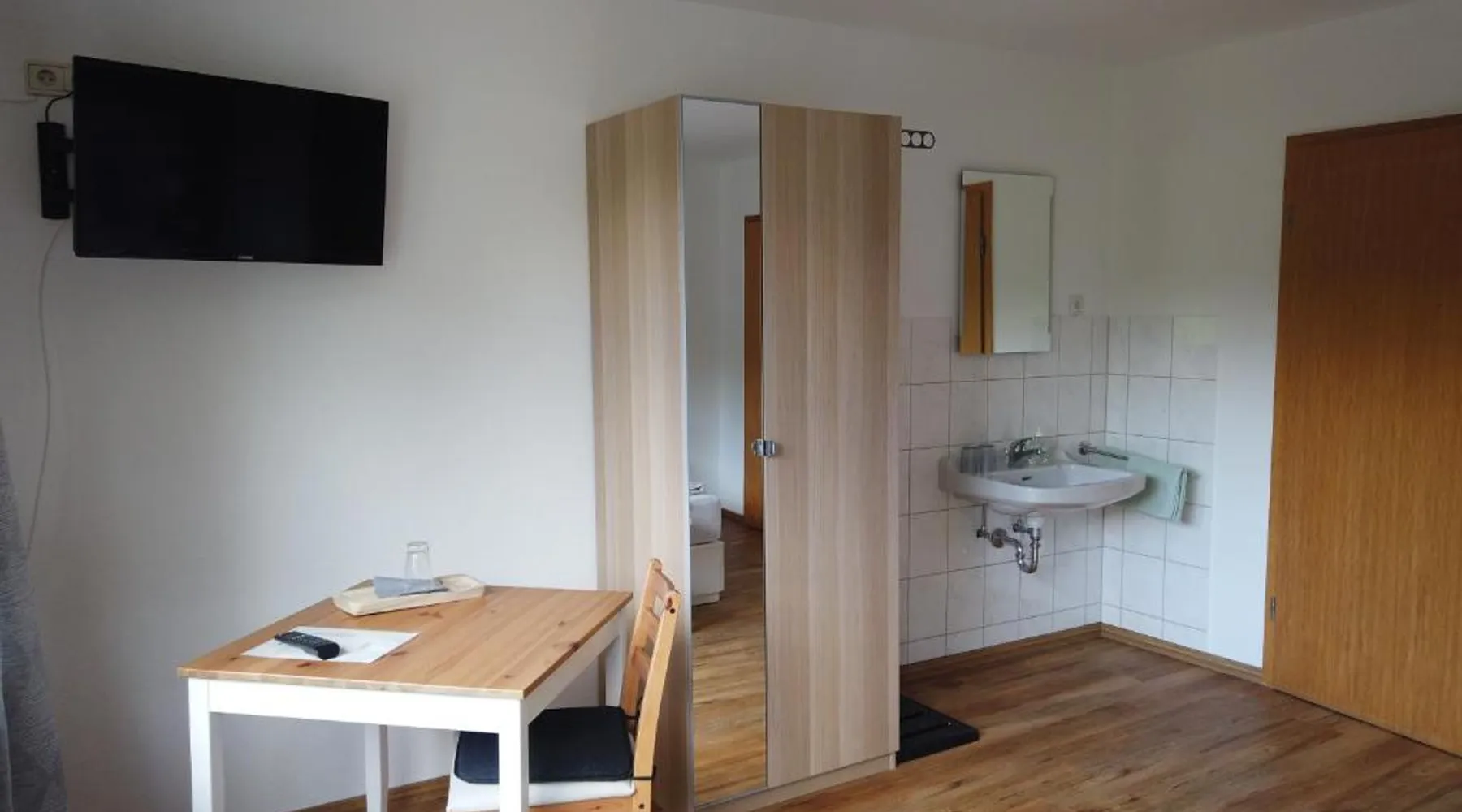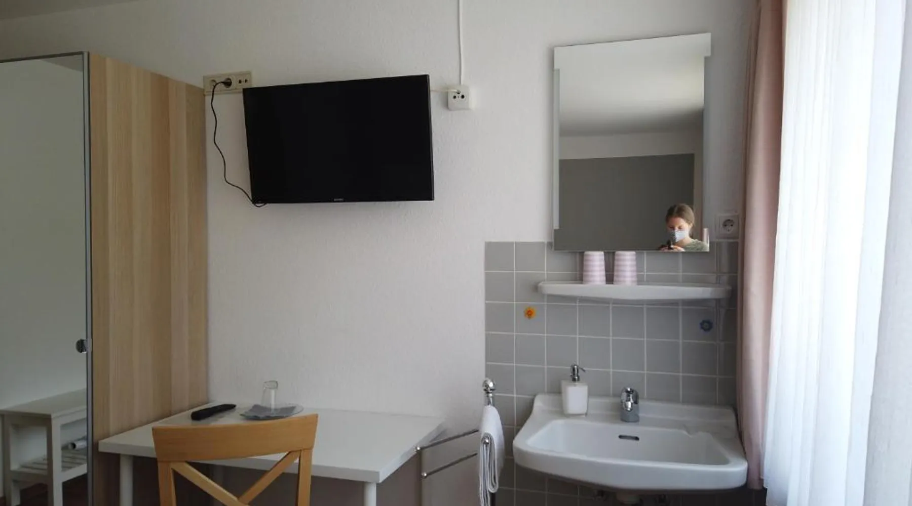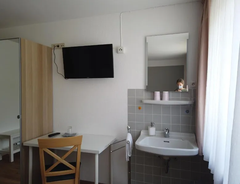 Comfortable Accommodations: Hotel Waldterrasse in Rengsdorf offers family rooms with private bathrooms, parquet floors, and free WiFi. Each room includes a work desk, TV, and seating area. Dining and Leisure: Guests can enjoy a sun terrace, restaurant, and bar. The property provides free on-site private parking, an outdoor seating area, and a tour desk. Breakfast and Amenities: A continental buffet breakfast is served with juice, fresh pastries, cheese, and fruits. Additional amenities include a paid shuttle service, menus for special diets, and free toiletries. Location and Attractions: Located 39 mi from Cologne Bonn Airport, the hotel is near attractions such as Löhr Center (16 mi) and Koblenz Theater (17 mi). Guests appreciate hiking, cycling, and the convenient location. Bright room featuring cable TV and a private bathroom.
