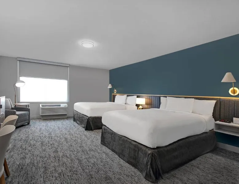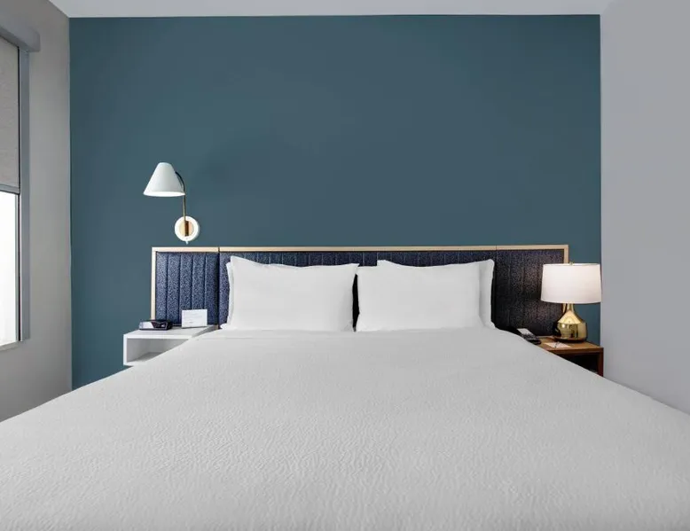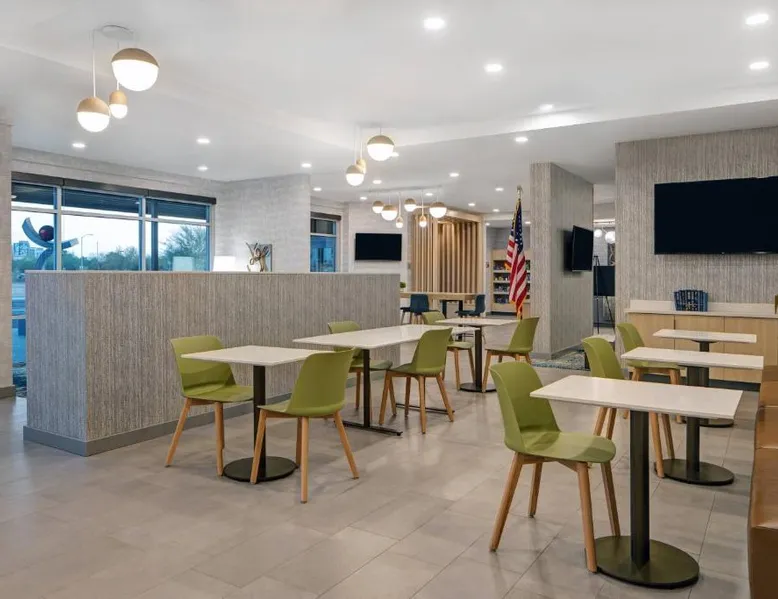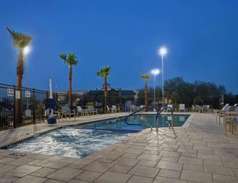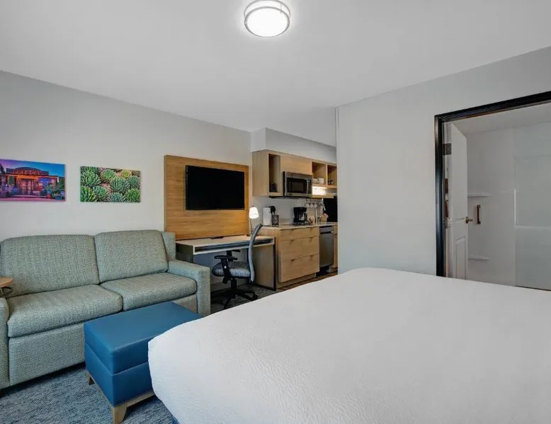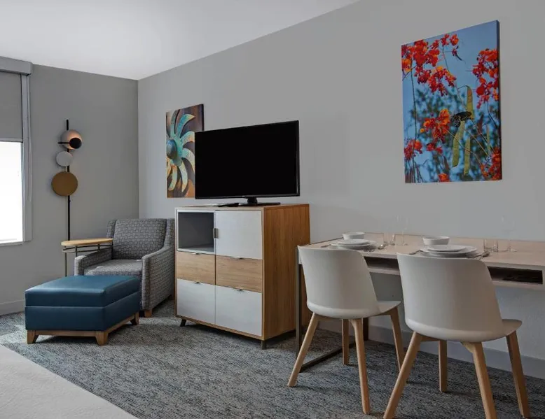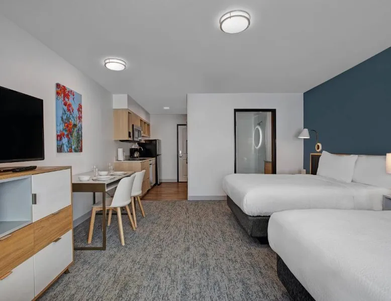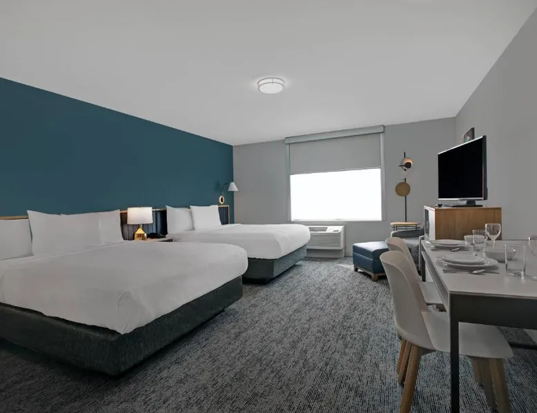 Comfortable Accommodations: TownePlace Suites by Marriott Phenix Glendale Sports & Entertainment District in Glendale offers family rooms with air-conditioning, baths, and TVs. Guests enjoy free WiFi, a fitness center, bar, and a year-round outdoor swimming pool. Convenient Facilities: The hotel features a hot tub, 24-hour front desk, electric vehicle charging station, and paid on-site parking. Additional amenities include a year-round outdoor swimming pool, fitness center, and a bar. Dining Options: An American buffet breakfast is served daily. The property also offers a bar for relaxation. Prime Location: Located 21 mi from Phenix Sky Harbor International Airport, the hotel is a 19-minute walk from State Farm Stadium and 0.7 mi from Gila River Arena. Nearby attractions include Camelback Ranch - Glendale at 3.7 mi and Glendale Public Library at 6.8 mi. Guest Satisfaction: Highly rated for room cleanliness, attentive staff, and quality breakfast. This double room provides air conditioning and a flat-screen TV. The unit offers 2 beds.