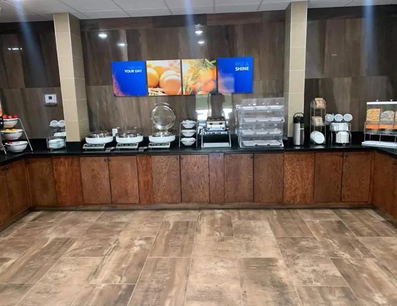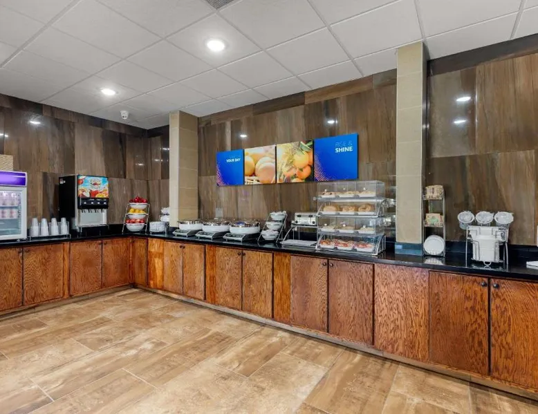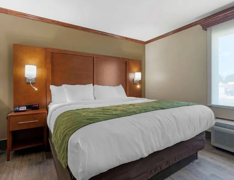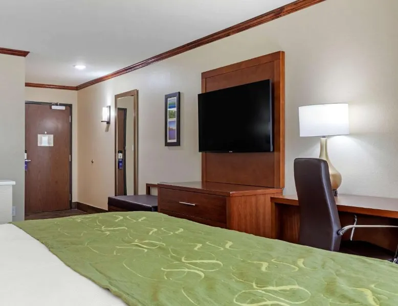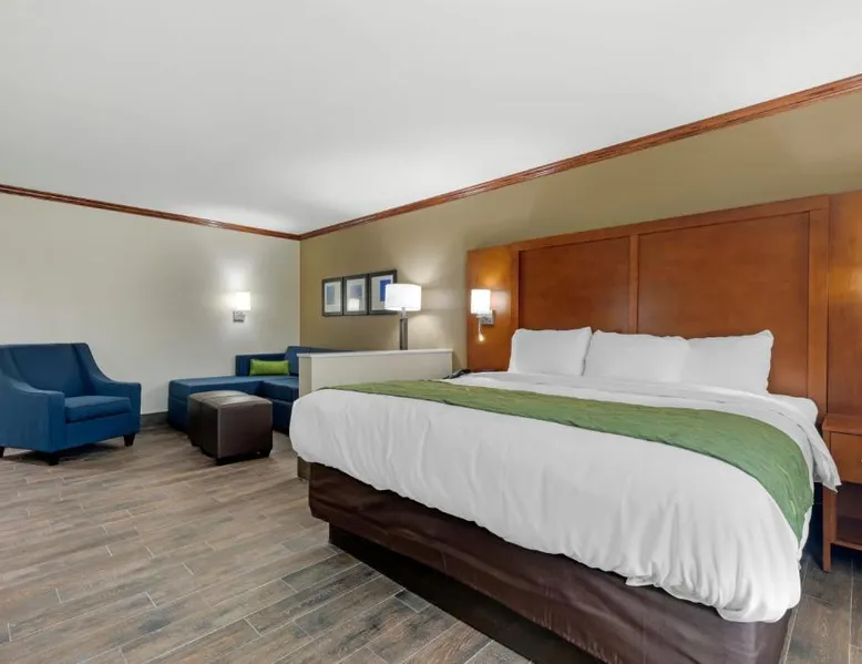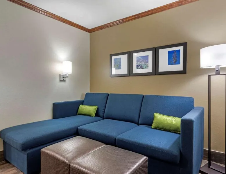 Comfortable Accommodations: Comfort Suites West Monroe near Ike Hamilton Expo Center in West Monroe offers comfortable rooms with free WiFi, air-conditioning, and modern amenities. Leisure Facilities: Guests can enjoy a fitness center, indoor swimming pool, and a bar. Additional facilities include a elevator, 24-hour front desk, business area, and free on-site private parking. Dining Experience: A complimentary American buffet breakfast is served daily, featuring warm dishes, juice, fresh pastries, pancakes, and fruits. Convenient Location: Located 11 mi from Monroe Regional Airport, the hotel is near attractions such as Ike Hamilton Expo Center (1.9 mi) and Malone Stadium (11 mi). Guests appreciate the convenient location and excellent breakfast. The suite is furnished with a desk and a seating area.