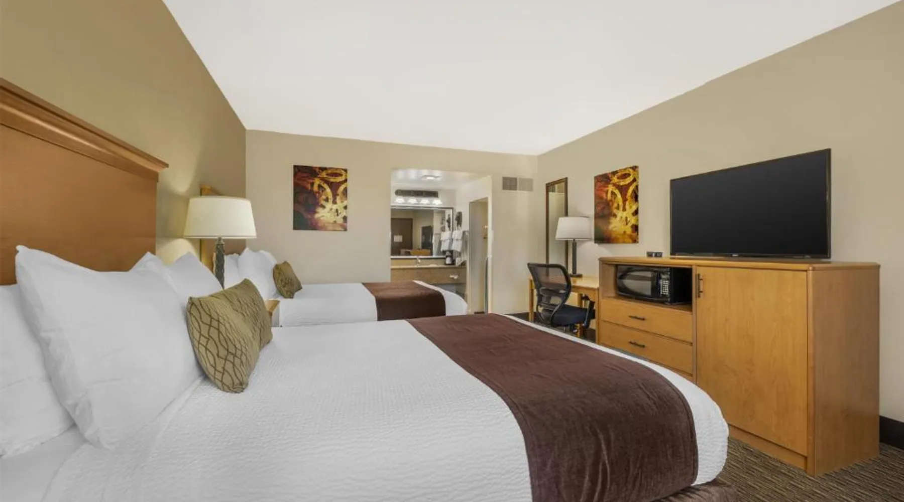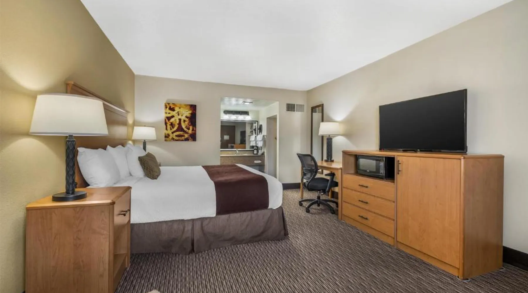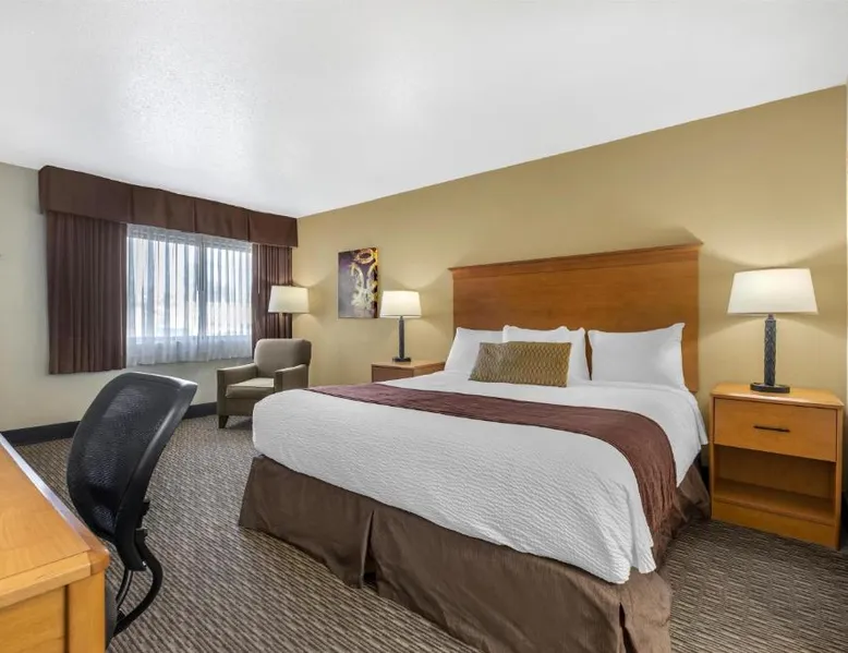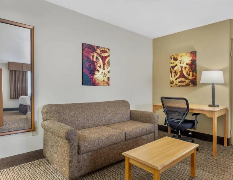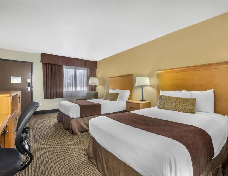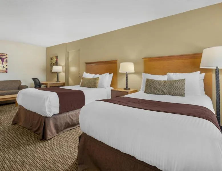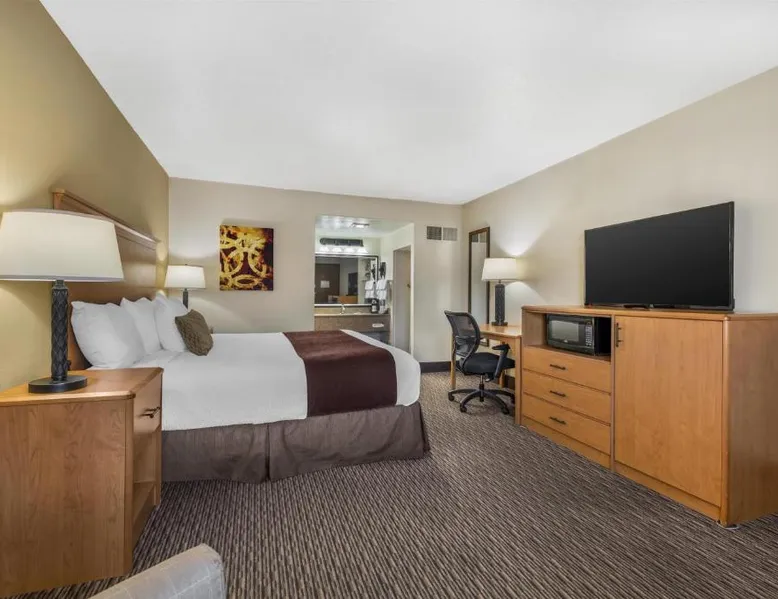 Comfortable Accommodations: Best Western Winchester Hotel in Winchester offers air-conditioned rooms with private bathrooms, tea and coffee makers, hairdryers, refrigerators, work desks, microwaves, bath or showers, carpeted floors, and TVs. Essential Facilities: Guests enjoy free WiFi, a 24-hour front desk, express check-in and check-out services, and free on-site private parking. Breakfast and Amenities: A continental breakfast is served with fresh pastries and fruits, providing a pleasant start to the day. Local Attractions: Located 25 mi from Blue Grass Airport, the hotel is near Fort Boonesborough State Park (9.9 mi), Mets Center and Boone Station State Historic Park (16 mi), and other attractions. This room has a cable TV, microwave and refrigerator.