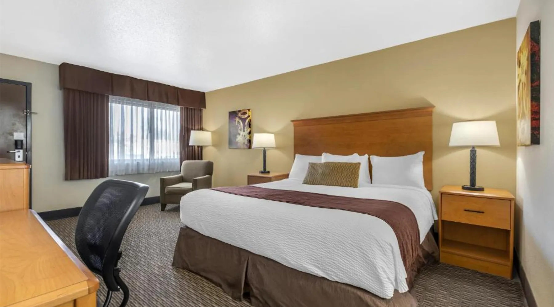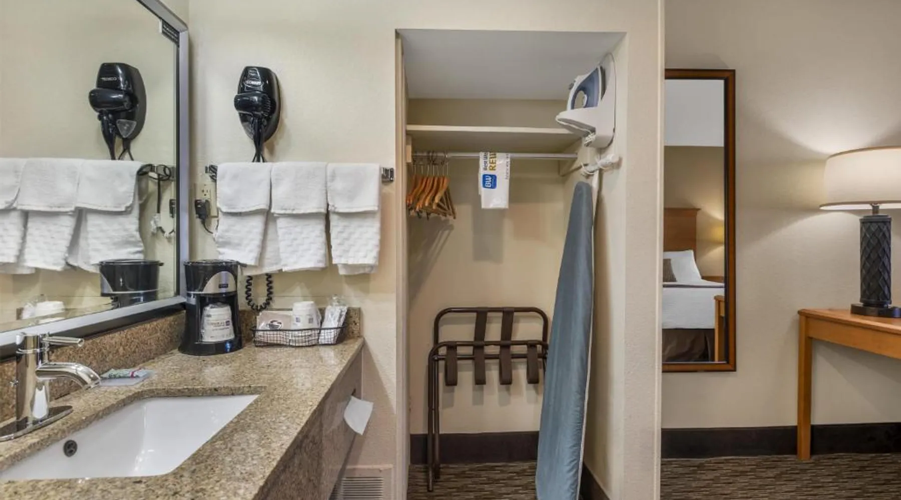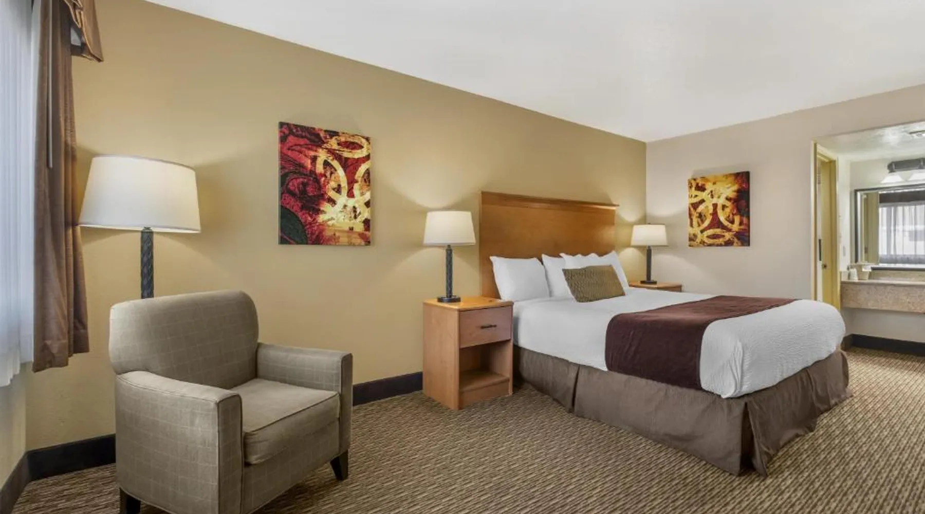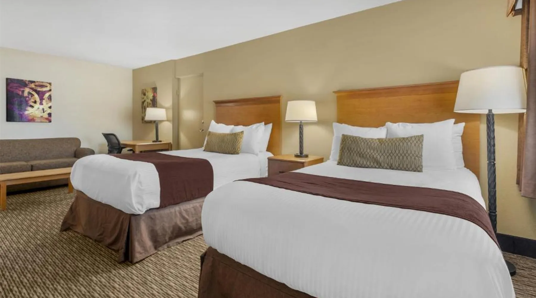 Comfortable Accommodations: Best Western Winchester Hotel in Winchester offers air-conditioned rooms with private bathrooms, tea and coffee makers, hairdryers, refrigerators, work desks, microwaves, bath or showers, carpeted floors, and TVs. Essential Facilities: Guests enjoy free WiFi, a 24-hour front desk, express check-in and check-out services, and free on-site private parking. Breakfast and Amenities: A continental breakfast is served with fresh pastries and fruits, providing a pleasant start to the day. Local Attractions: Located 25 mi from Blue Grass Airport, the hotel is near Fort Boonesborough State Park (9.9 mi), Mets Center and Boone Station State Historic Park (16 mi), and other attractions. This room has a cable TV, microwave and refrigerator.