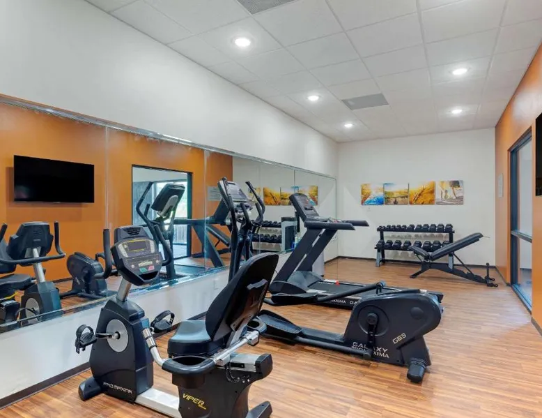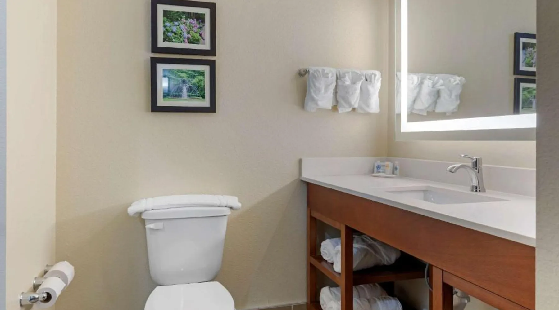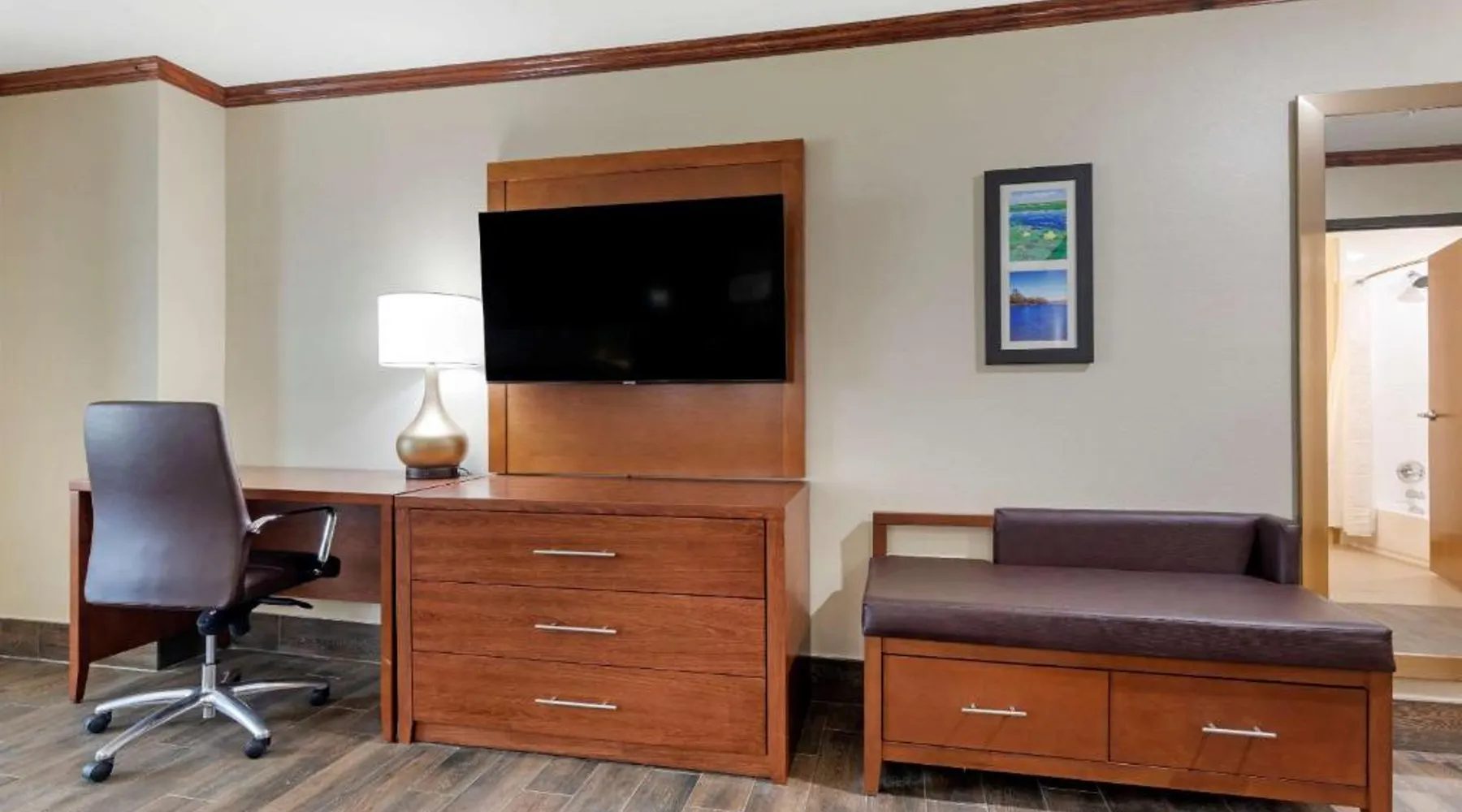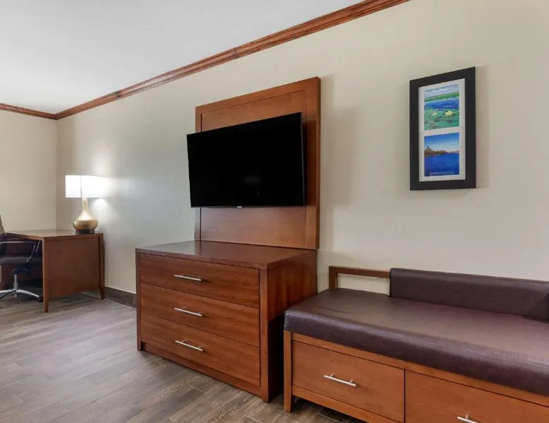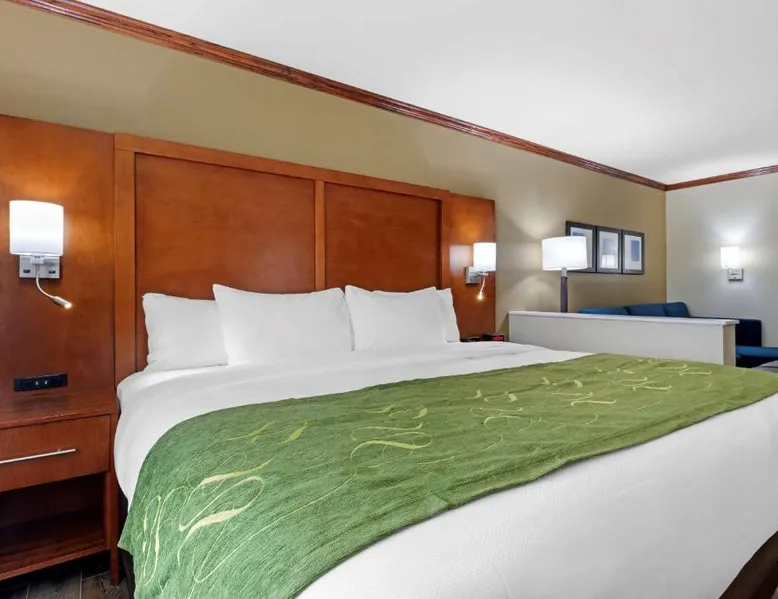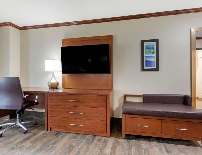 Comfortable Accommodations: Comfort Suites West Monroe near Ike Hamilton Expo Center in West Monroe offers comfortable rooms with free WiFi, air-conditioning, and modern amenities. Leisure Facilities: Guests can enjoy a fitness center, indoor swimming pool, and a bar. Additional facilities include a elevator, 24-hour front desk, business area, and free on-site private parking. Dining Experience: A complimentary American buffet breakfast is served daily, featuring warm dishes, juice, fresh pastries, pancakes, and fruits. Convenient Location: Located 11 mi from Monroe Regional Airport, the hotel is near attractions such as Ike Hamilton Expo Center (1.9 mi) and Malone Stadium (11 mi). Guests appreciate the convenient location and excellent breakfast. Meals can be prepared in the kitchen, which has a refrigerator, a microwave and a tea and coffee maker. The suite is furnished with a desk and a seating area.