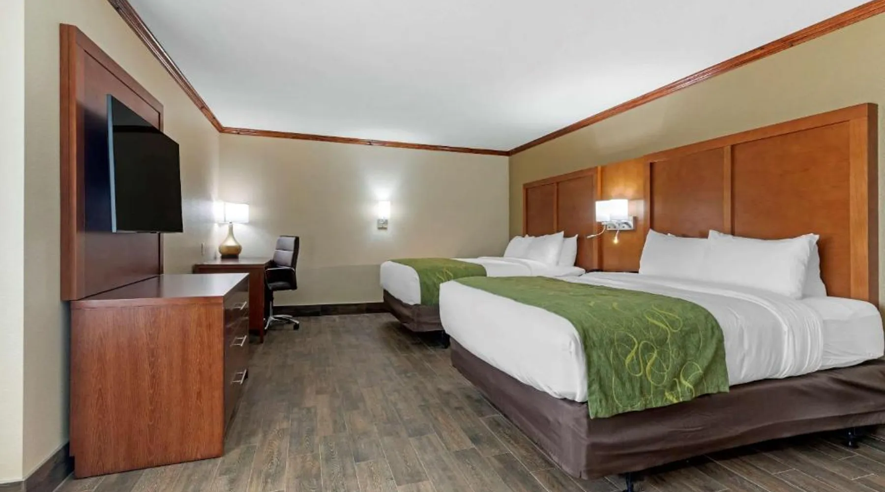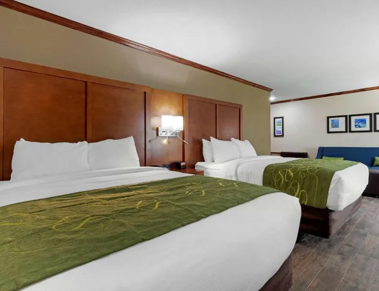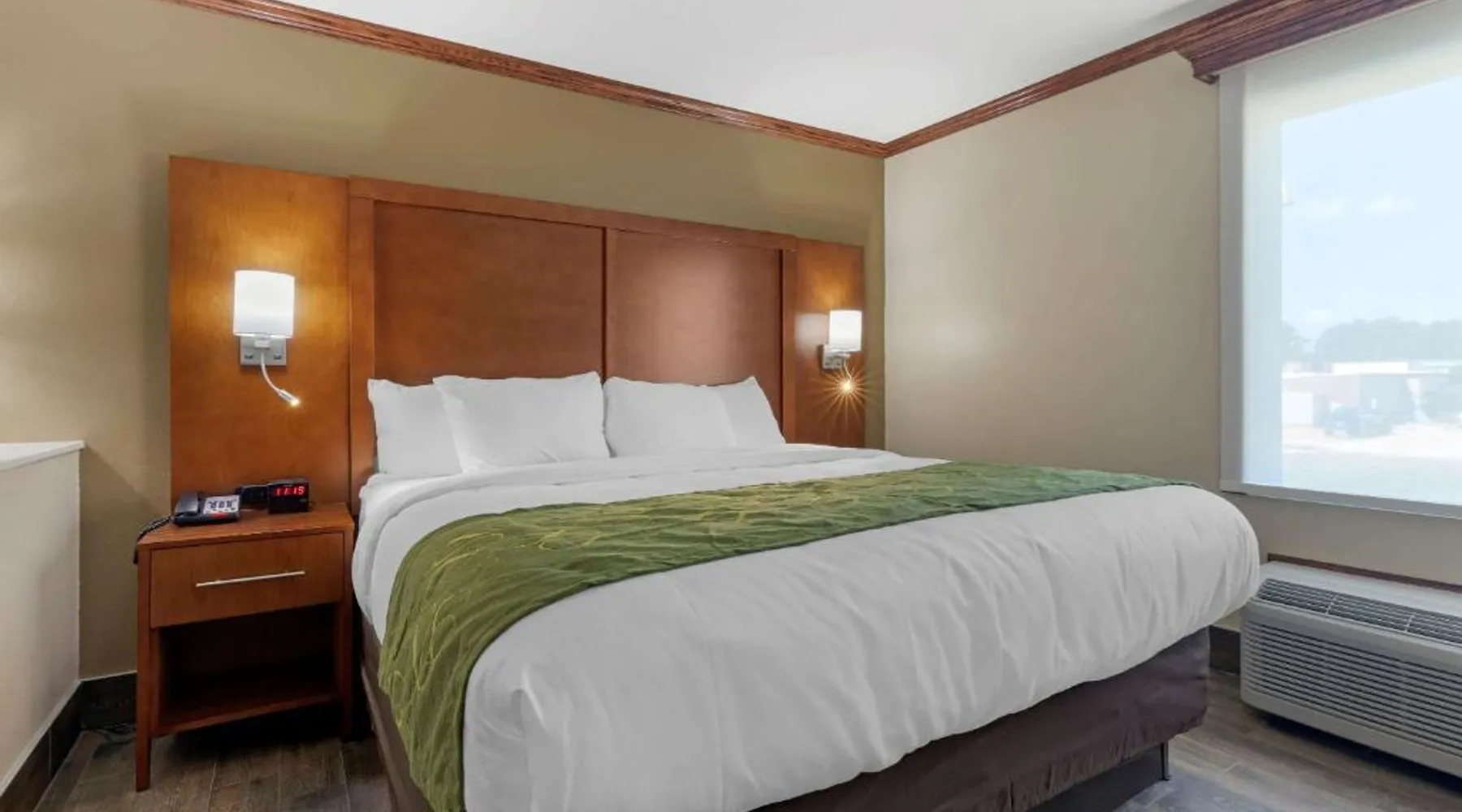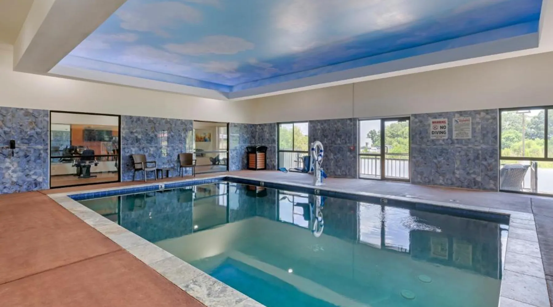 Comfortable Accommodations: Comfort Suites West Monroe near Ike Hamilton Expo Center in West Monroe offers comfortable rooms with free WiFi, air-conditioning, and modern amenities. Leisure Facilities: Guests can enjoy a fitness center, indoor swimming pool, and a bar. Additional facilities include a elevator, 24-hour front desk, business area, and free on-site private parking. Dining Experience: A complimentary American buffet breakfast is served daily, featuring warm dishes, juice, fresh pastries, pancakes, and fruits. Convenient Location: Located 11 mi from Monroe Regional Airport, the hotel is near attractions such as Ike Hamilton Expo Center (1.9 mi) and Malone Stadium (11 mi). Guests appreciate the convenient location and excellent breakfast. Meals can be prepared in the kitchen, which has a refrigerator, a microwave and a tea and coffee maker. The suite is furnished with a desk and a seating area.