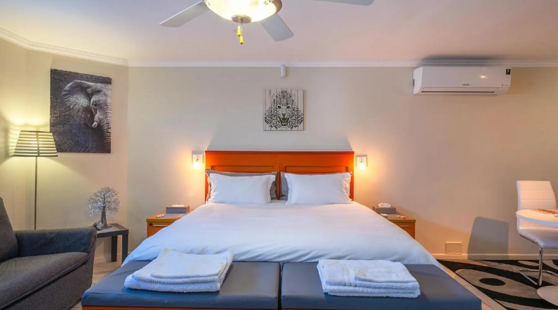 Comfortable Accommodations: Pro Moni's Guest house in Lakeside offers adults-only rooms with private bathrooms, air-conditioning, and garden or mountain views. Each room includes a work desk, dining area, and soundproofing for a relaxing stay. Essential Facilities: Guests enjoy free WiFi, a terrace, and a balcony. Additional amenities include a kitchenette, private entrance, and free on-site parking. The property provides private check-in and check-out, housekeeping, live music, full-day security, and luggage storage. Local Attractions: Located 14 mi from Cape Town International Airport, the guest house is near Muizenberg Beach (1.2 mi), Kirstenbosch National Botanical Garden (11 mi), and Table Mountain (19 mi). Activities include walking tours, hiking, cycling, and snorkeling. Guest Satisfaction: Highly rated for its friendly host, safety of the location, and comfortable beds. Featuring a private entrance, this air-conditioned suite consists of a kitchenette, 1 bedroom and 1 bathroom with a shower and a hairdryer. Guests can make meals in the kitchenette that is equipped with a stovetop, a refrigerator, kitchenware and a microwave. Boasting a balcony with garden views, this suite also provides soundproof walls and a flat-screen TV with cable channels. The unit offers 2 beds.