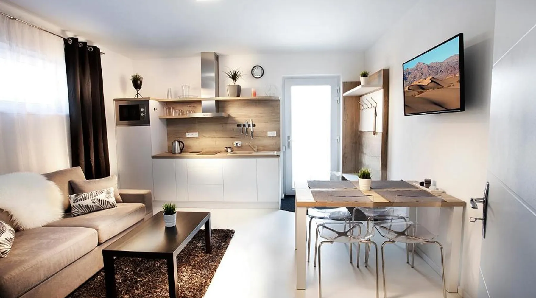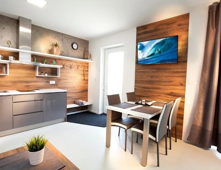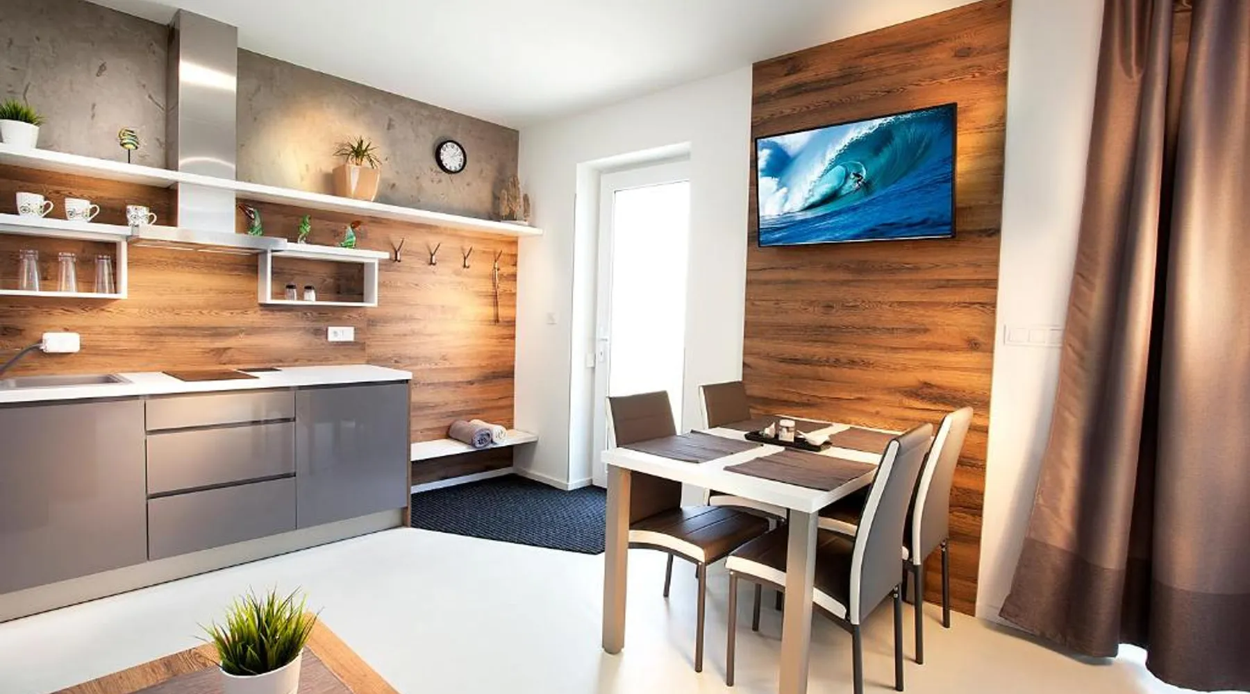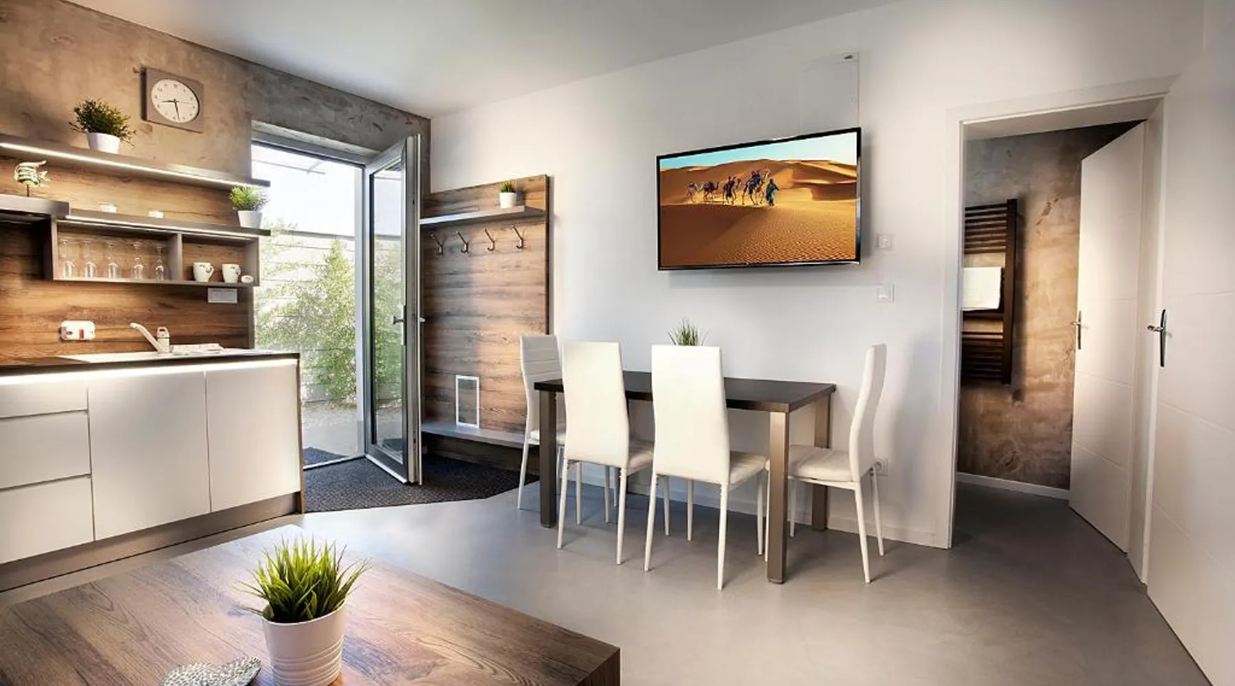 Comfortable Accommodations: Apartmány Ladná in Ladná offers family rooms with private bathrooms, air-conditioning, and garden views. Each unit includes a kitchen, dining area, and free WiFi. Leisure Facilities: Guests can enjoy a sauna, sun terrace, seasonal outdoor pool, and indoor pool. Additional amenities include a hot tub, lounge, and outdoor seating area. Convenient Location: Located 32 mi from Brno–Turany Airport, the aparthotel is near attractions such as Lednice Chateau (6.8 mi) and The Valtice Palace (11 mi). Free private parking is available. Activities and Services: Activities include yoga classes, walking tours, bike tours, hiking, and cycling. The reception staff speak Czech and Slovak. Featuring a private entrance, this air-conditioned apartment is consisted of of a kitchen, 2 bedrooms and 1 bathroom with a shower and a hairdryer. Guests will find a stovetop, a refrigerator, kitchenware and a microwave in the well-equipped kitchen. The apartment also has a barbecue. Boasting a terrace with garden views, this apartment also offers a tea and coffee maker and a flat-screen TV. The unit offers 4 beds.