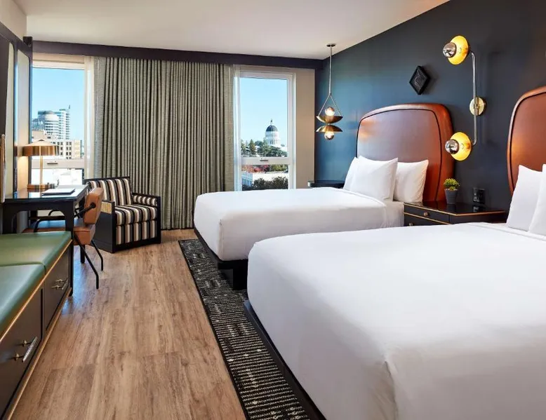 Prime Location: Hyatt Centric Sacramento Downtown in Sacramento offers a central location with the California Capitol Building a 7-minute walk away. Nearby attractions include the Crocker Art Museum (less than 0.6 mi) and Sacramento Convention Center (0.6 mi). Sacramento International Airport is 9.3 mi from the hotel. Comfortable Accommodations: Rooms feature air-conditioning, private bathrooms, city views, and modern amenities such as streaming services and free WiFi. Additional comforts include sofa beds, work desks, and free toiletries. Dining and Leisure: The modern restaurant serves brunch, lunch, and dinner, alongside cocktails. Guests can relax on the terrace or enjoy live music in the outdoor seating area. The hotel also offers a fitness center, bar, and lounge. Guest Services: Highly rated for its convenient location and attentive staff, the hotel provides a 24-hour front desk, housekeeping, room service, and luggage storage. Additional amenities include bicycle parking and paid private parking. Providing free toiletries, this double room includes a private bathroom with a shower and a hairdryer. The spacious air-conditioned double room provides a flat-screen TV with streaming services, a tea and coffee maker, a seating area, a wardrobe as well as city views. The unit offers 1 bed.