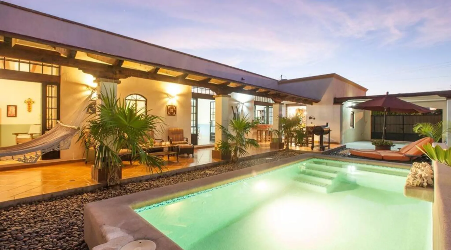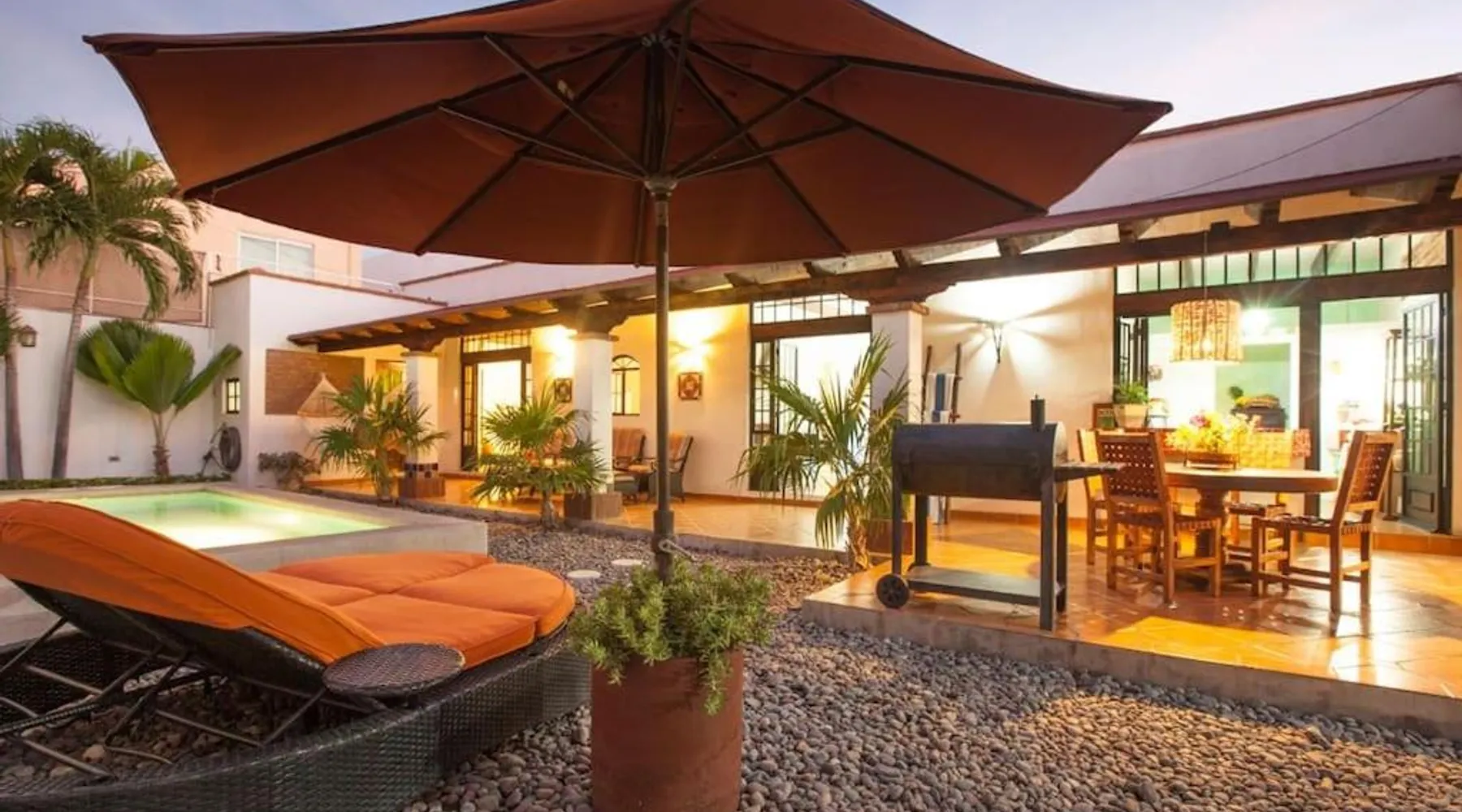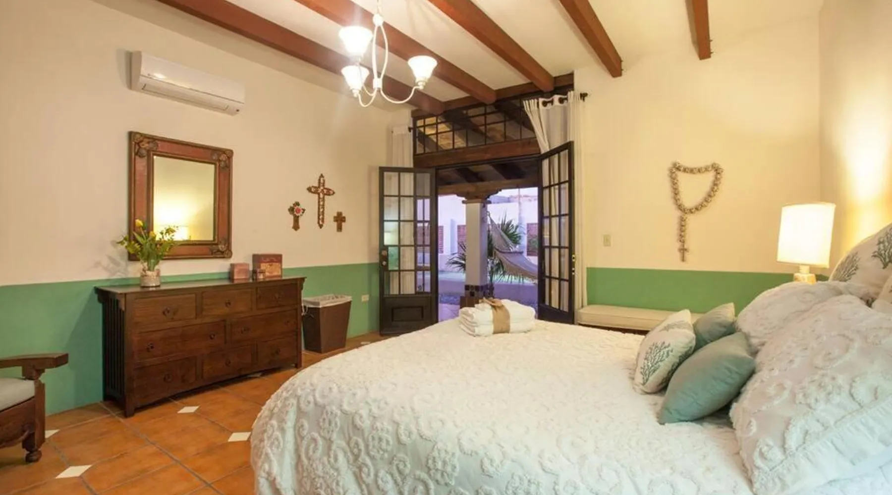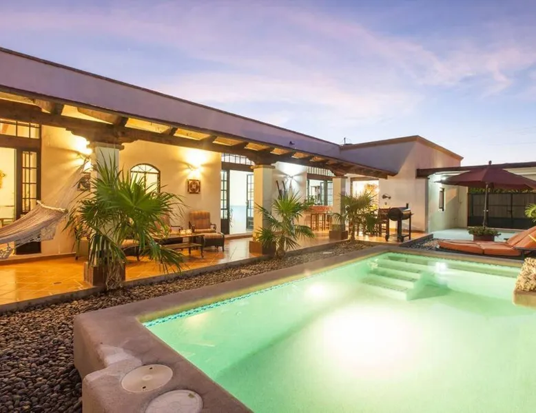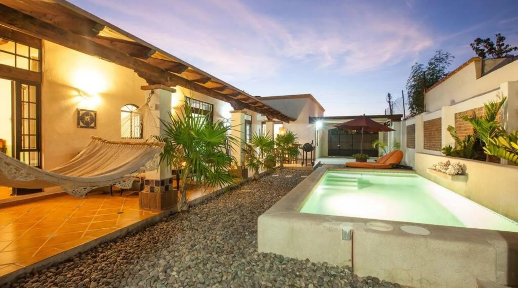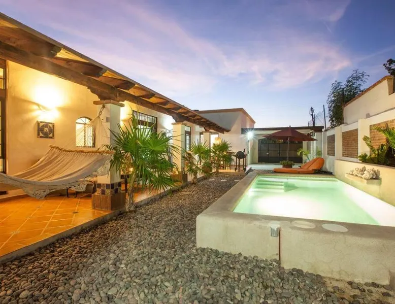 Elegant Holiday Home in La Paz: Casa de los Santos offers a serene holiday home experience in La Paz. Guests enjoy a beautiful garden, an outdoor swimming pool, and free WiFi throughout the property. Comfortable Accommodations: The holiday home features two bedrooms and two bathrooms, a spacious living room, and family rooms. Air-conditioning, a washing machine, and a fully equipped kitchen with modern appliances ensure a comfortable stay. Convenient Facilities: Free on-site parking is available, along with a patio, barbecue, and a variety of amenities including a TV, hairdryer, and kitchenware. La Paz Malecon Beach is a 15-minute walk away, while Barco Hundido Beach lies 1.5 mi from the property. Highly Rated by Guests: Casa de los Santos receives high ratings from guests for its excellent facilities and comfortable accommodations. Guests will find a stovetop, a refrigerator, kitchenware and an oven in the well-equipped kitchen. The apartment also comes with a barbecue. This apartment has air conditioning, a washing machine, a TV with cable channels and a patio. The unit has 4 beds.