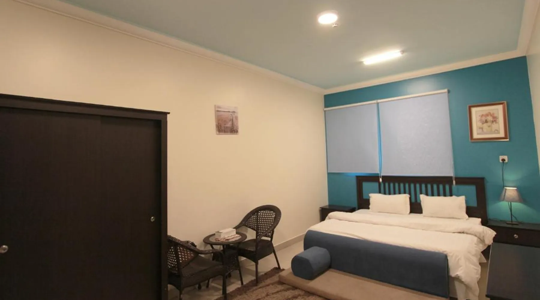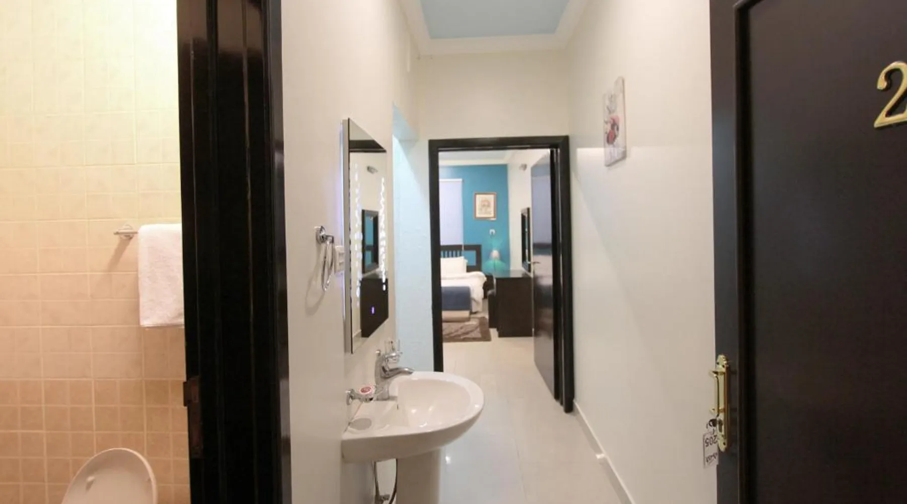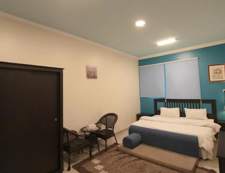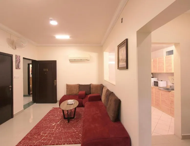 Comfortable Accommodations: شقق منازل القصواء للشقق المخدومة إقتصادي in Buraydah offers aparthotel-style accommodations with spa facilities and free WiFi. Guests enjoy amenities such as a lounge, steam room, wellness packages, and a 24-hour front desk. Modern Amenities: Each unit features air-conditioning, a kitchenette, washing machine, and a private bathroom. Additional amenities include a hot tub, fireplace, dining area, and free toiletries. Free on-site private parking is available for guests. Prime Location: Located 21 mi from Prince Naif bin Abdulaziz International Airport, the aparthotel is near attractions like Al Aqelat Garden Park (1.4 mi) and Buraydah Museum (1.9 mi). Guests appreciate the property staff and service support, room cleanliness, and convenient location. The hot tub and fireplace are the standout features of this apartment. Boasting a private entrance, this air-conditioned apartment comes with 1 living room, 2 separate bedrooms and 1 bathroom with a walk-in shower and a bidet. In the well-equipped kitchen, guests will find a stovetop, a refrigerator, kitchenware and a microwave. The spacious apartment features a flat-screen TV with cable channels, a washing machine, soundproof walls, a seating area as well as a quiet street view. The unit has 3 beds.