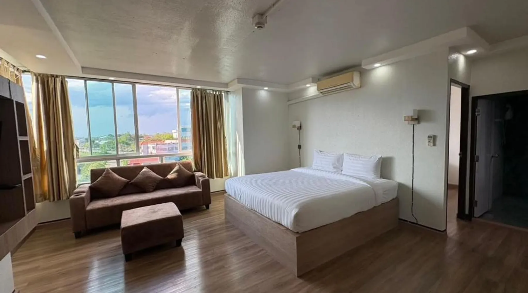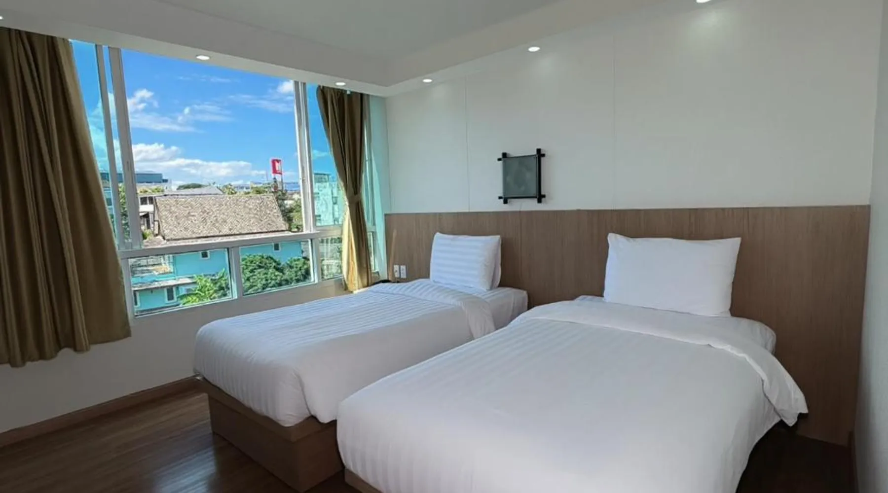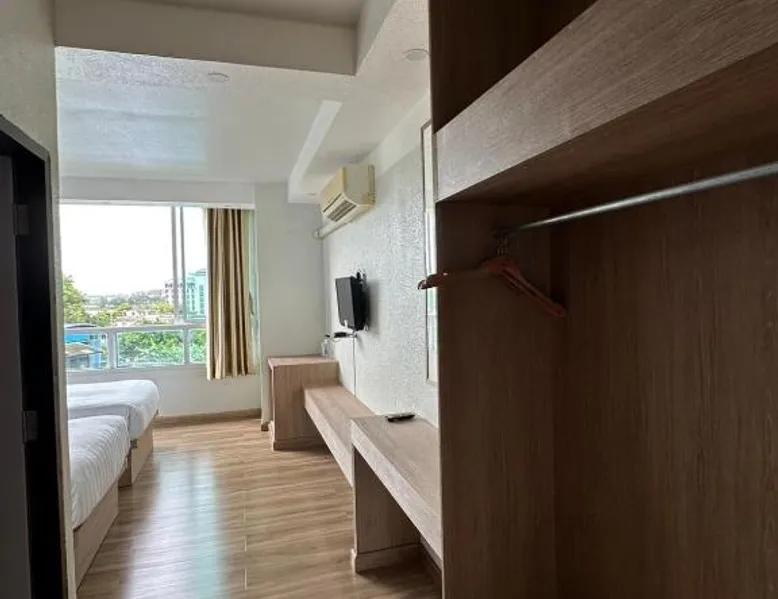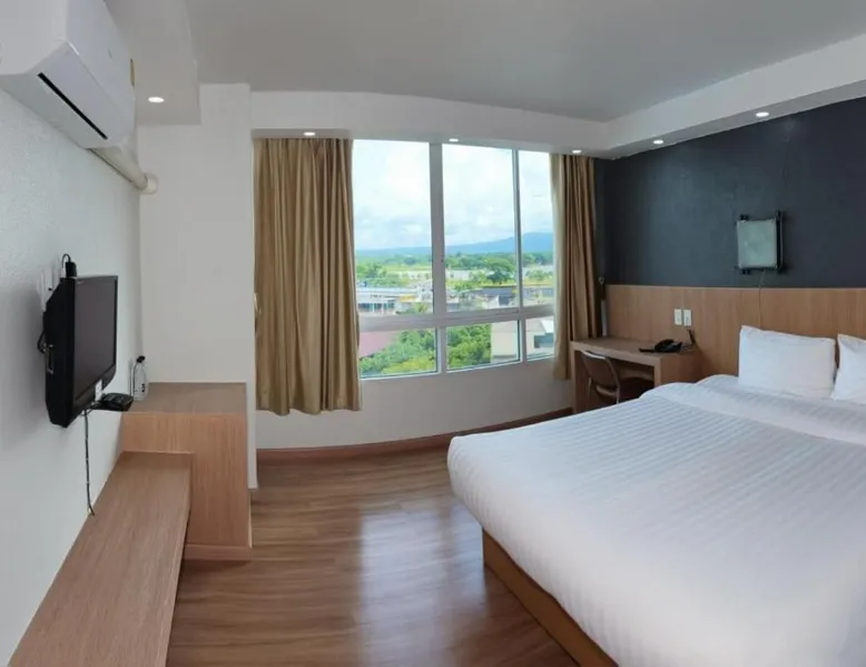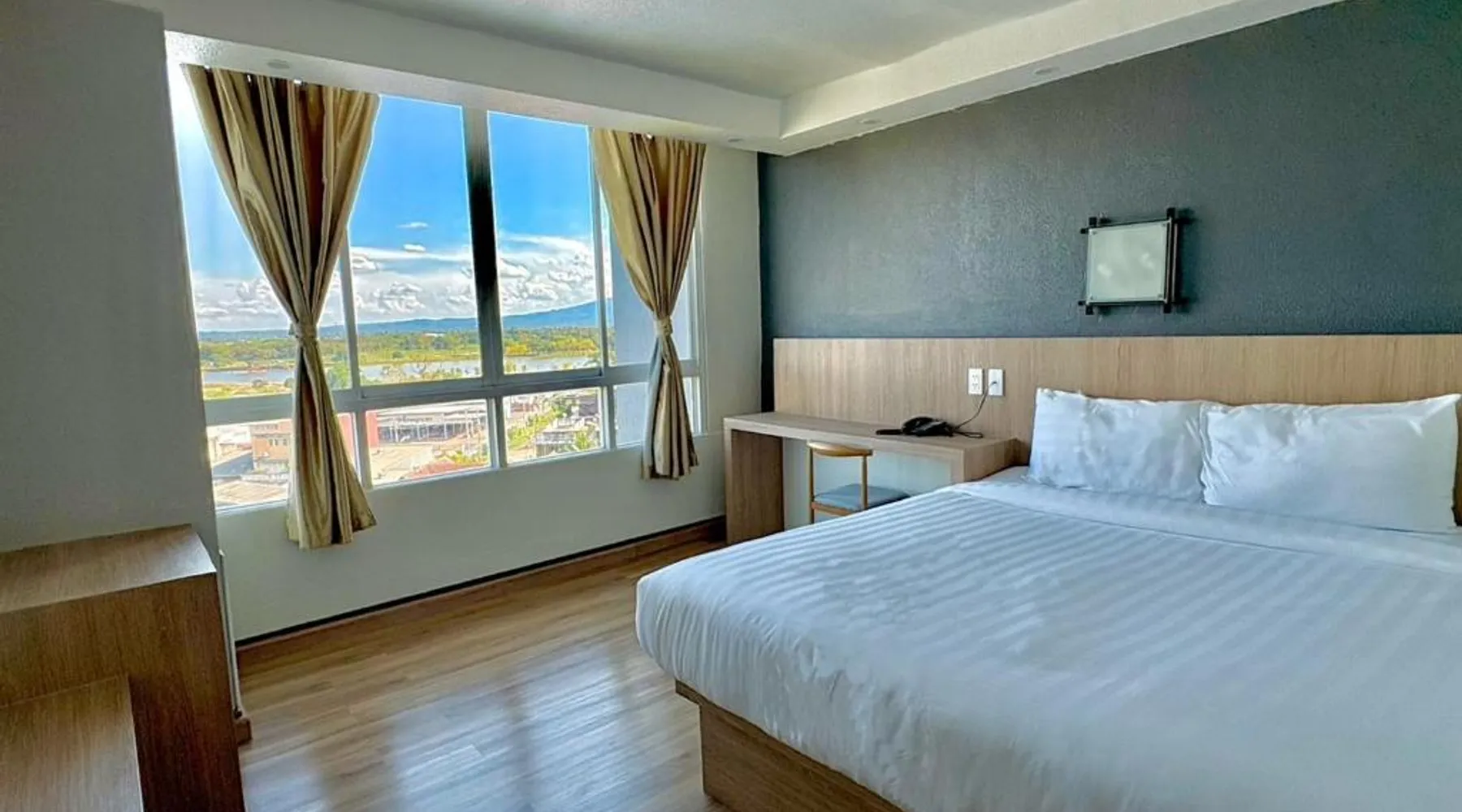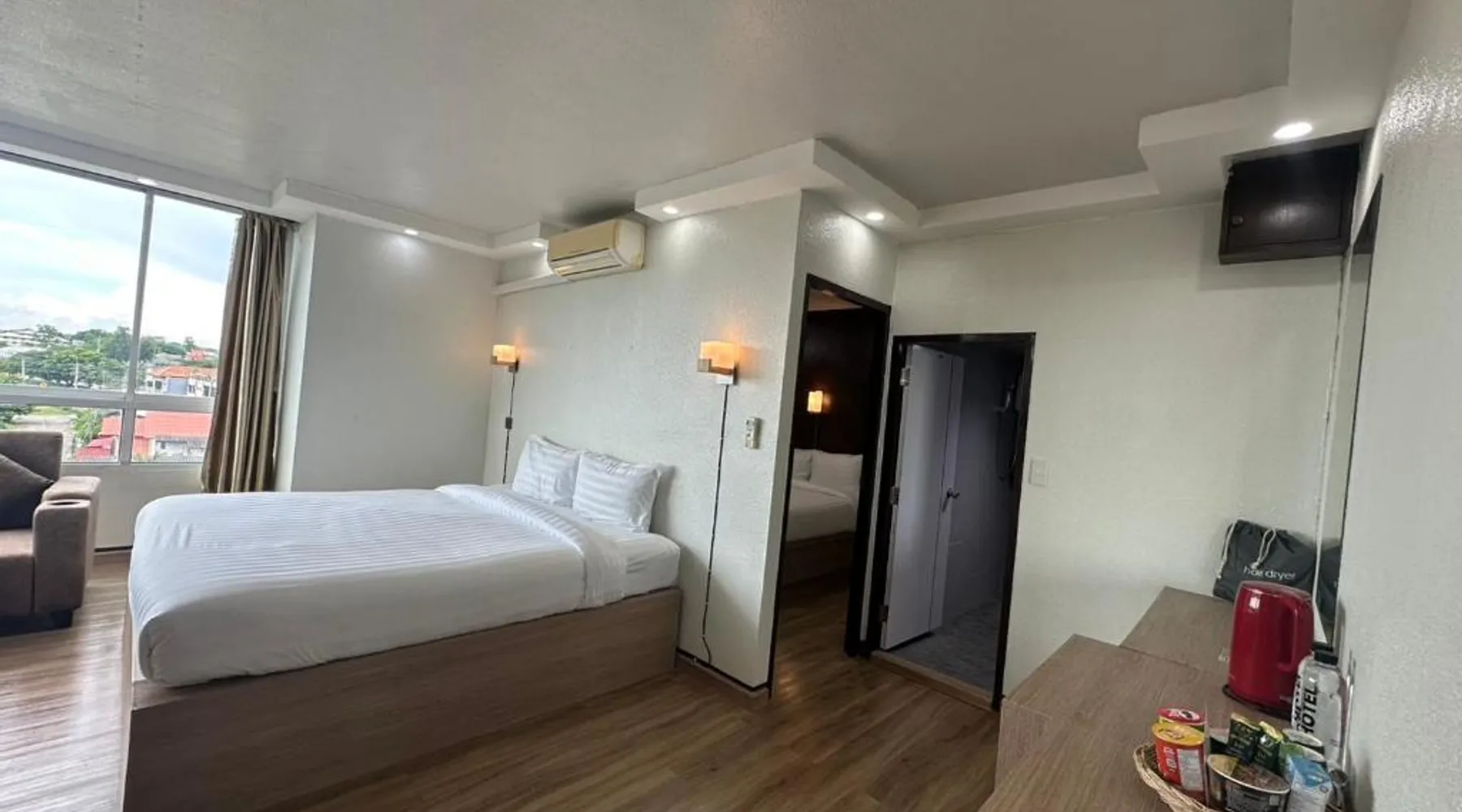Comfortable Accommodations: KM Kwanphayao Hotel in Phayao offers family rooms with air-conditioning, private bathrooms, and city views. Each room includes a refrigerator, shower, TV, and wardrobe. Dining and Leisure: The family-friendly restaurant serves Thai and local cuisines with vegetarian and vegan options. Guests can also enjoy free WiFi, a coffee shop, and a minimarket. Facilities and Services: The hotel provides free bicycles, a 24-hour front desk, elevator, paid shuttle service, full-day security, and luggage storage. Free on-site private parking is available. Location and Attractions: Located 62 mi from Mae Fah Luang - Chiang Rai International Airport, the hotel is near attractions such as Phayao Lake and Phayao City. Featuring free toiletries, this family room includes a private bathroom with a shower and a hairdryer. The air-conditioned family room features a flat-screen TV with cable channels, a mini-bar, a tea and coffee maker, a dining area as well as lake views. The unit has 2 beds.