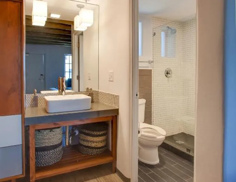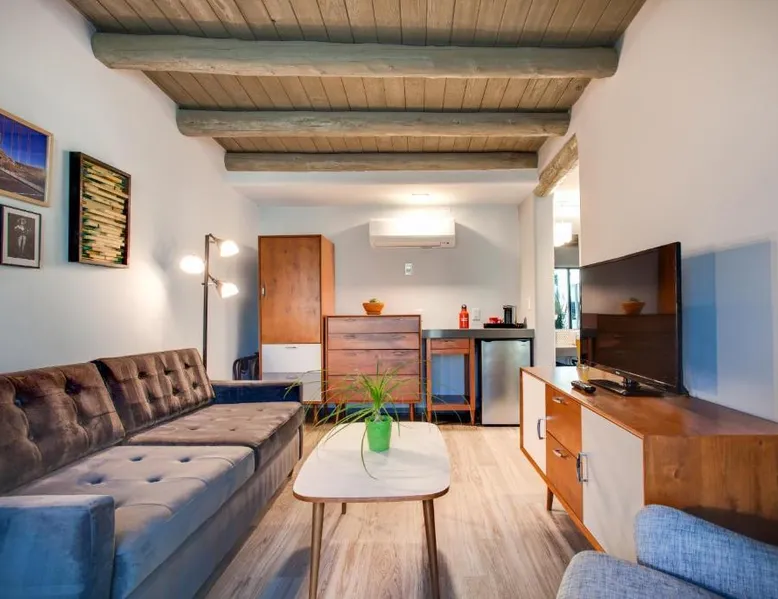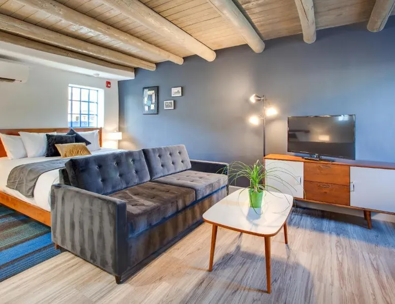 Comfortable Accommodations: El Vado Motel in Albuquerque offers family rooms with air-conditioning, private bathrooms, and garden, pool, or mountain views. Each room includes a work desk, TV, and free WiFi. Exceptional Facilities: Guests enjoy a saltwater swimming pool with a view, sun terrace, and modern restaurant serving dinner. Additional amenities include a lounge, outdoor fireplace, concierge service, and free on-site private parking. Prime Location: Located 6.2 mi from Albuquerque International Sunport, the motel is near attractions such as the New Mexico Museum of Natural History and Science (19-minute walk) and Amapola Gallery (9-minute walk). A restaurant is available in the surroundings. Guest Favorites: Guests highly rate the convenient location, bar, and swimming pool, making El Vado Motel a preferred choice for relaxation and leisure. The pool with a view is the standout feature of this suite. Offering free toiletries and bathrobes, this suite includes a private bathroom with a shower and a hairdryer. The spacious air-conditioned suite offers a flat-screen TV with cable channels, a private entrance, soundproof walls, a coffee machine as well as garden views. The unit has 1 bed.