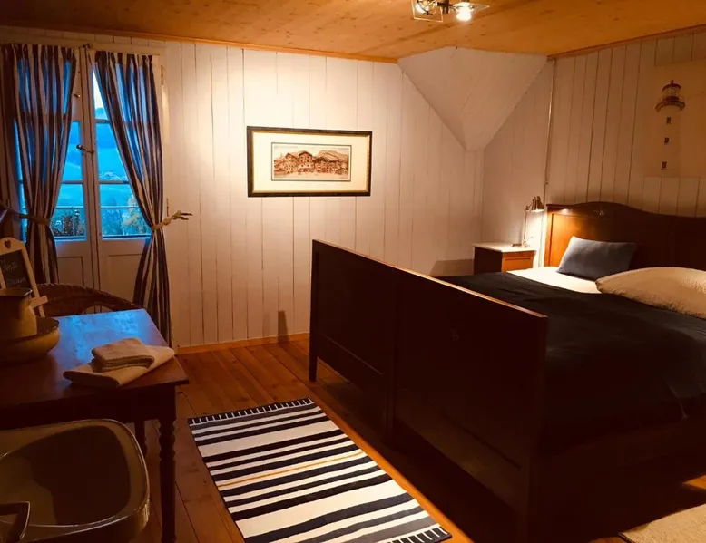 Comfortable Accommodations: B&B Bären in Rüeggisberg offers family rooms with private bathrooms, balconies, and views of the lake or mountains. Each room includes a work desk, mini-bar, and free toiletries. Essential Facilities: Guests enjoy a sun terrace, free WiFi, and an outdoor seating area. Additional amenities include a minimarket, bicycle parking, and free on-site private parking. Breakfast and Services: A delicious breakfast is served in the room, complemented by room service. Housekeeping and room comfort receive high ratings from guests. Local Attractions: Located 11 mi from the House of Parliament Bern and Münster Cathedral, the property is also close to Bern railway station and the University of Bern. Hiking enthusiasts can explore nearby trails. This double room has a balcony and a shared bathroom.