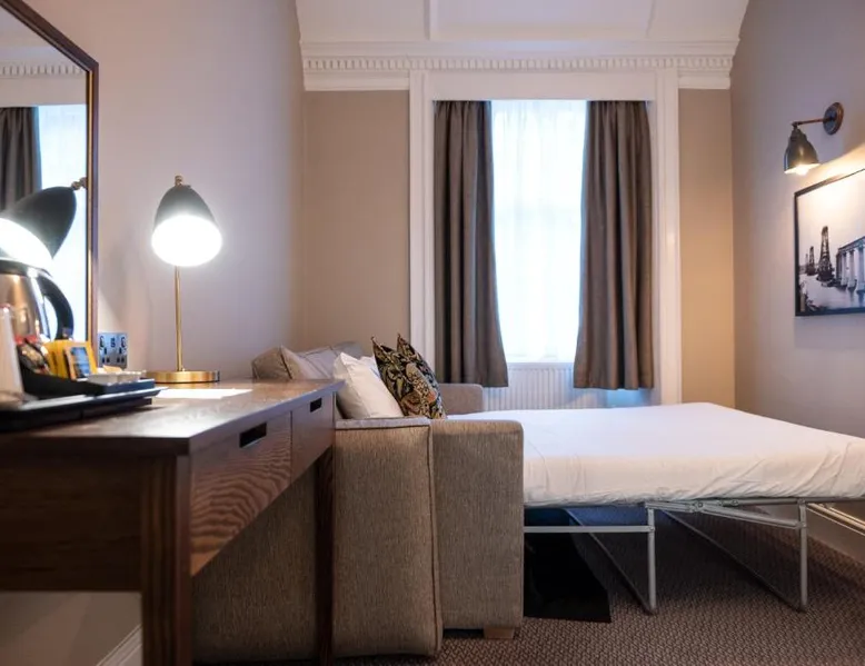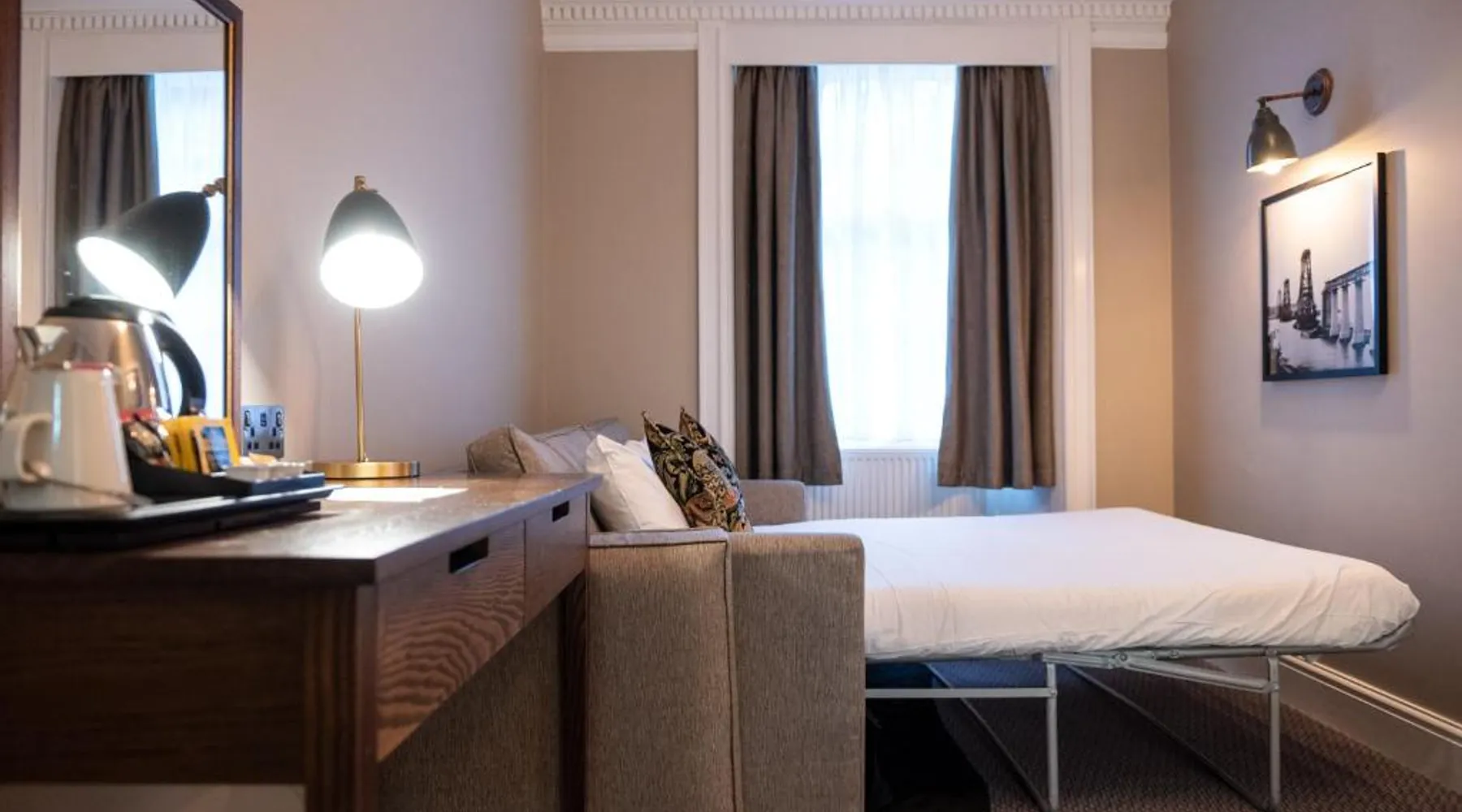 Overlooking the Firth of Forth railway bridge, The Hawes Inn by Innkeeper's Collection, is just 20 minutes’ drive from the historical city center of Edinburgh. 2 golf courses are located within 5 miles of the accommodations. Many rooms at The Hawes Inn overlook the river and iconic Forth Road Bridge, and each has a flat-screen TV, private bathroom and tea/coffee making facilities. A log fire and beer garden are featured in the Hawes Inn country pub and restaurant, which is attached to the Hotel. Dishes such as braised pork belly and cheese-topped fish pies are served in the restaurant. Deep Sea World aquarium is only 15 minutes by car, and Bedlam Paintball Edinburgh is just 2.3 miles away. With river views, this room also features an private bathroom, flat-screen TV and tea/coffee making facilities. A double sofa bed is provided for children.