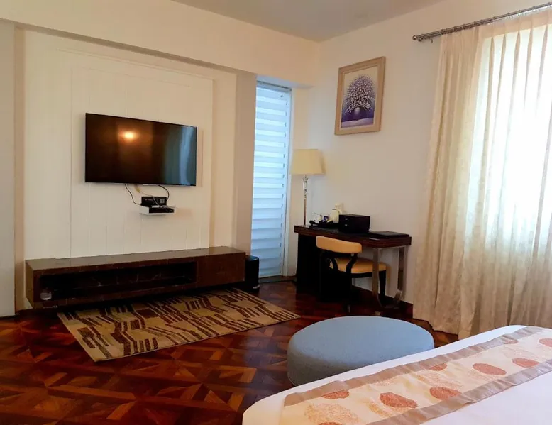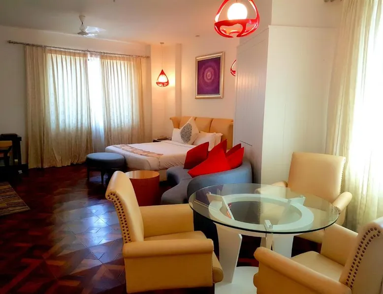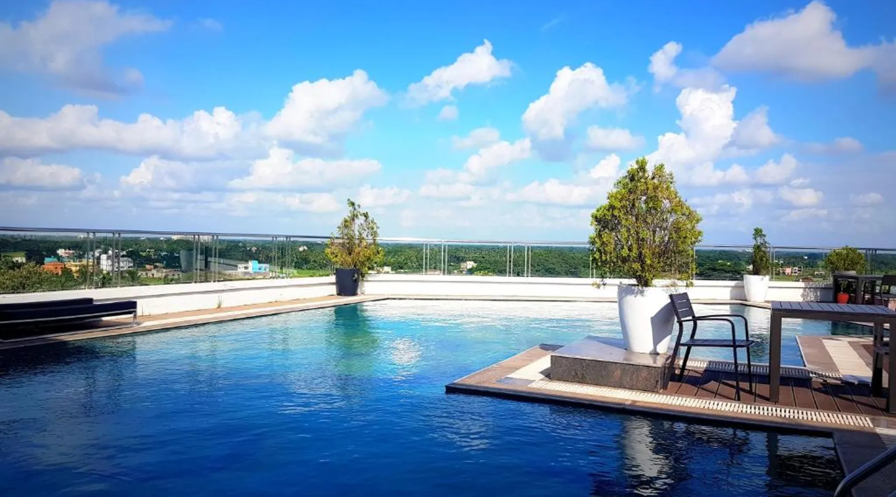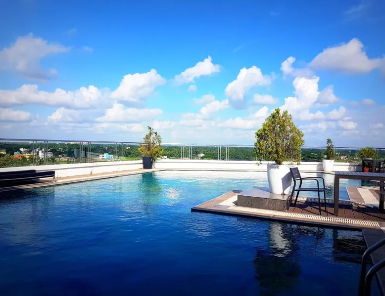 Elegant Accommodations: Pal Heights Mantra in Bhubaneshwar offers a 4-star adults-only experience with a rooftop swimming pool, fitness center, terrace, restaurant, bar, and free WiFi. Comfortable Amenities: Guests enjoy air-conditioning, private bathrooms, tea and coffee makers, walk-in showers, and city views. Additional facilities include a fitness room, 24-hour front desk, concierge service, and free on-site parking. Dining Options: The family-friendly restaurant serves Indian and Asian cuisines with continental, American, and vegetarian breakfasts. Dining options include lunch, dinner, high tea, and cocktails in traditional, modern, and romantic ambiances. Prime Location: Located 9.3 mi from Biju Patnaik International Airport and 6.8 mi from Janardana Temple and Bhubaneswar Station, the hotel provides easy access to local attractions. This suite features a rooftop pool. The spacious suite has 1 bedroom and 1 bathroom with a walk-in shower and free toiletries. The air-conditioned suite features a flat-screen TV with cable channels, soundproof walls, a mini-bar, a tea and coffee maker as well as city views. The unit has 1 bed.