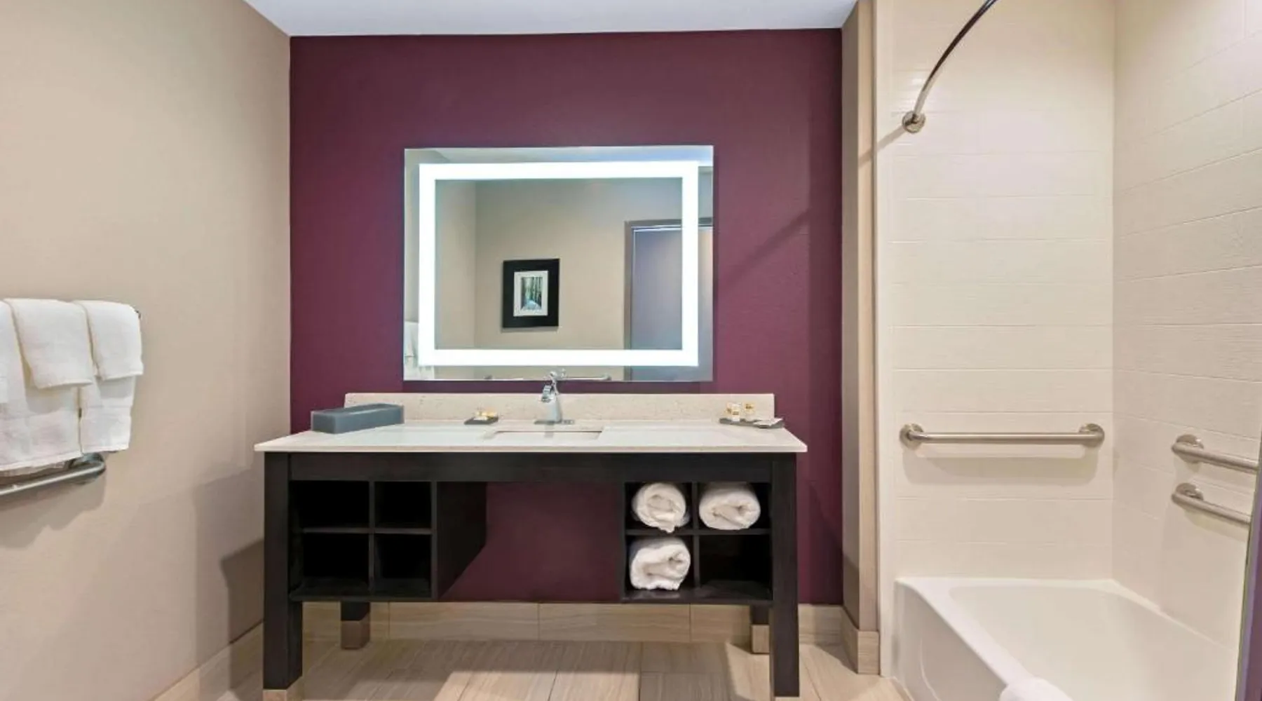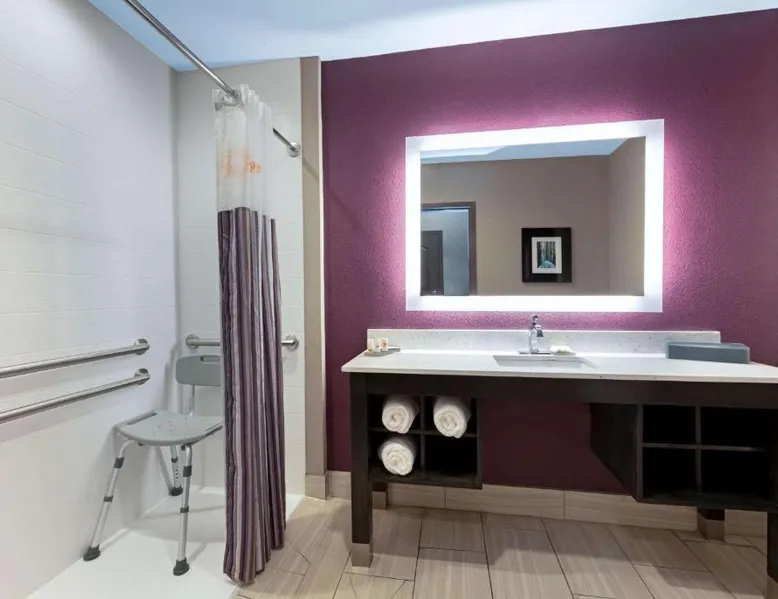 Comfortable Accommodations: La Quinta by Wyndham West Monroe in West Monroe offers family rooms with private bathrooms, air-conditioning, and free WiFi. Each room includes a work desk, TV, and free toiletries. Leisure Facilities: Guests can enjoy a fitness center, year-round outdoor swimming pool, and outdoor seating areas. Additional amenities include a lounge, minimarket, and barbecue facilities. Dining Options: A continental and American buffet breakfast is served daily, featuring warm dishes, juice, cheese, and fruits. The property also offers a child-friendly buffet. Convenient Location: Located 8.7 mi from Monroe Regional Airport and 1.2 mi from Ike Hamilton Expo Center, the hotel provides easy access to local attractions. This air-conditioned family room is consisted of of a TV with cable channels and a private bathroom. The unit has 2 beds.