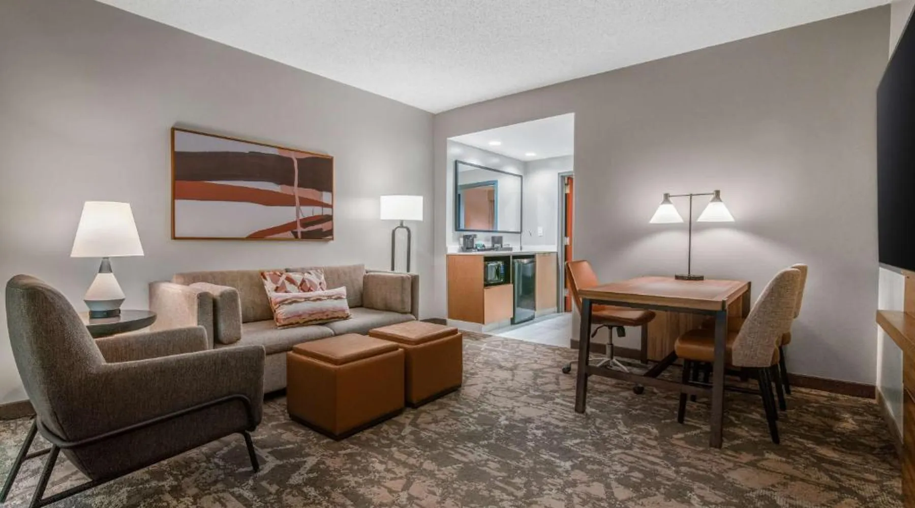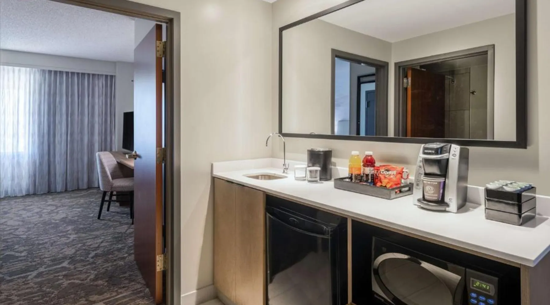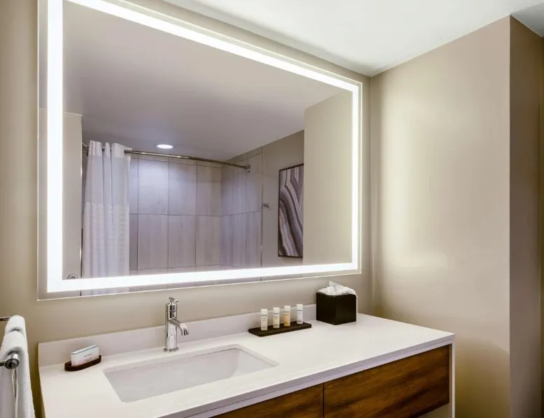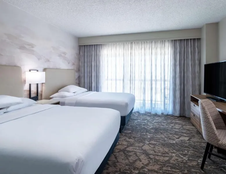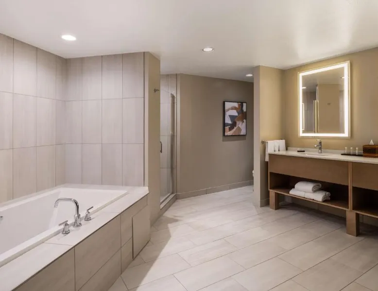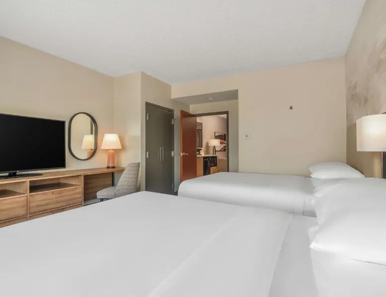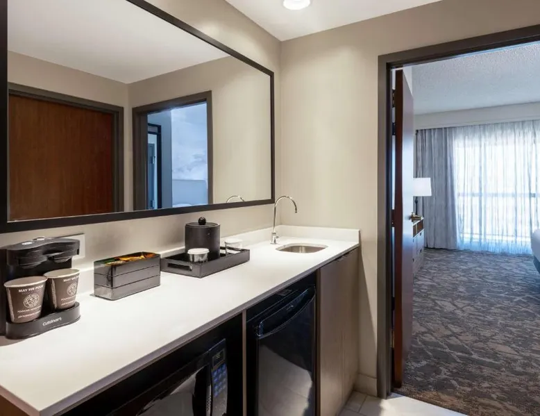 This downtown Albuquerque all-suite hotel includes a full-service spa. The hotel also features an indoor pool, a restaurant with cooked-to-order breakfasts and the suites provide cable TV with HBO. At the Embassy Suites by Hilton Albuquerque, each spacious 2-room suite includes a coffee maker, a microwave and a refrigerator. Guests can watch pay-per-view movies or sit on the balcony in select suites. The Embassy Suites by Hilton Albuquerque provides access to a gym. Guests can receive massages at the on-site spa or have a drink at the bar. Room service is available along with laundry facilities and a gift shop. Located close to the Embassy Suites by Hilton Albuquerque is the campus of the University of New Mexico as well as the Albuquerque Convention Center. The historic Old Town area, the Rio Grande Zoo and Sandia Casino are within driving distance. The suite offers air conditioning, a tea and coffee maker, a seating area, a safe deposit box and a flat-screen TV with cable channels. The unit offers 1 bed.