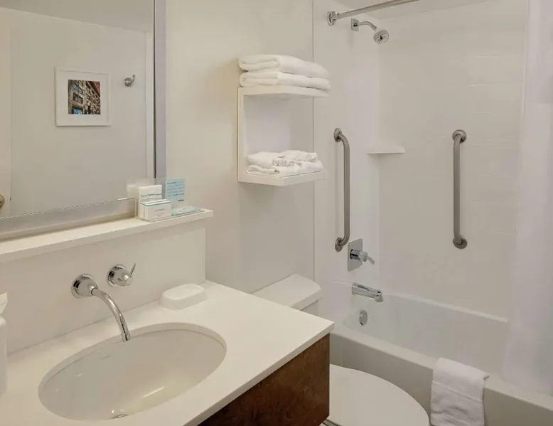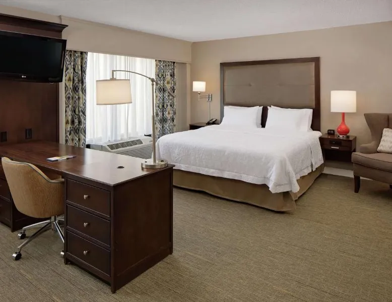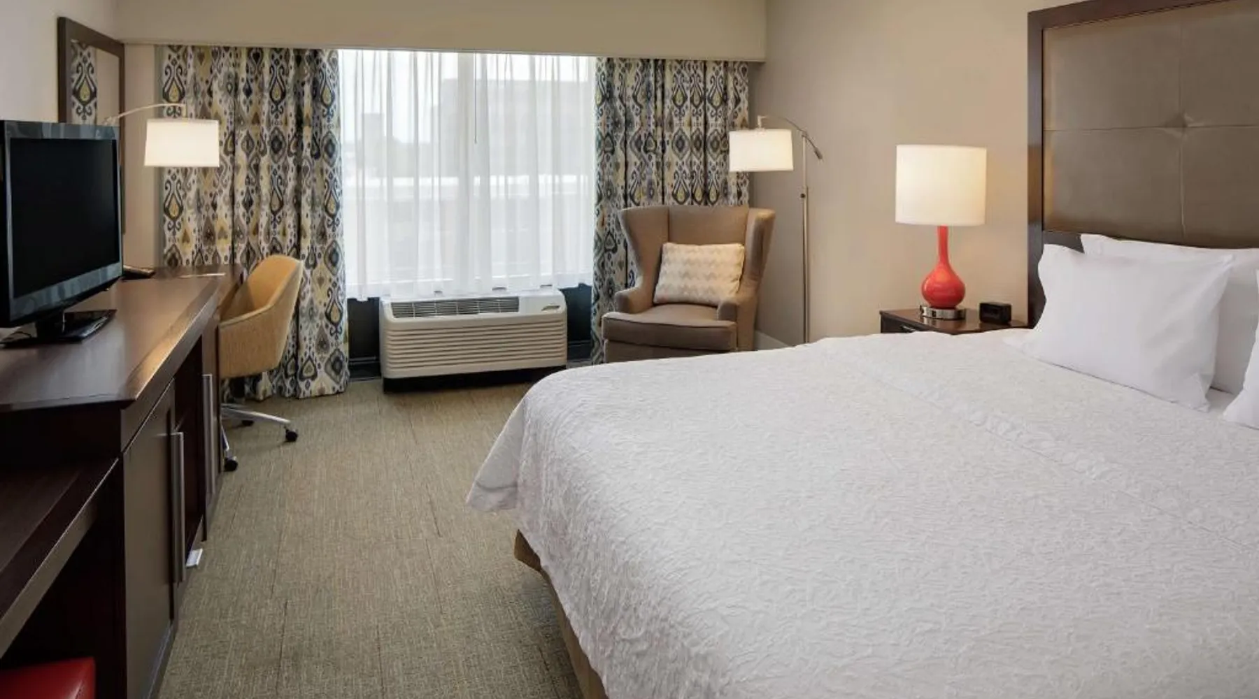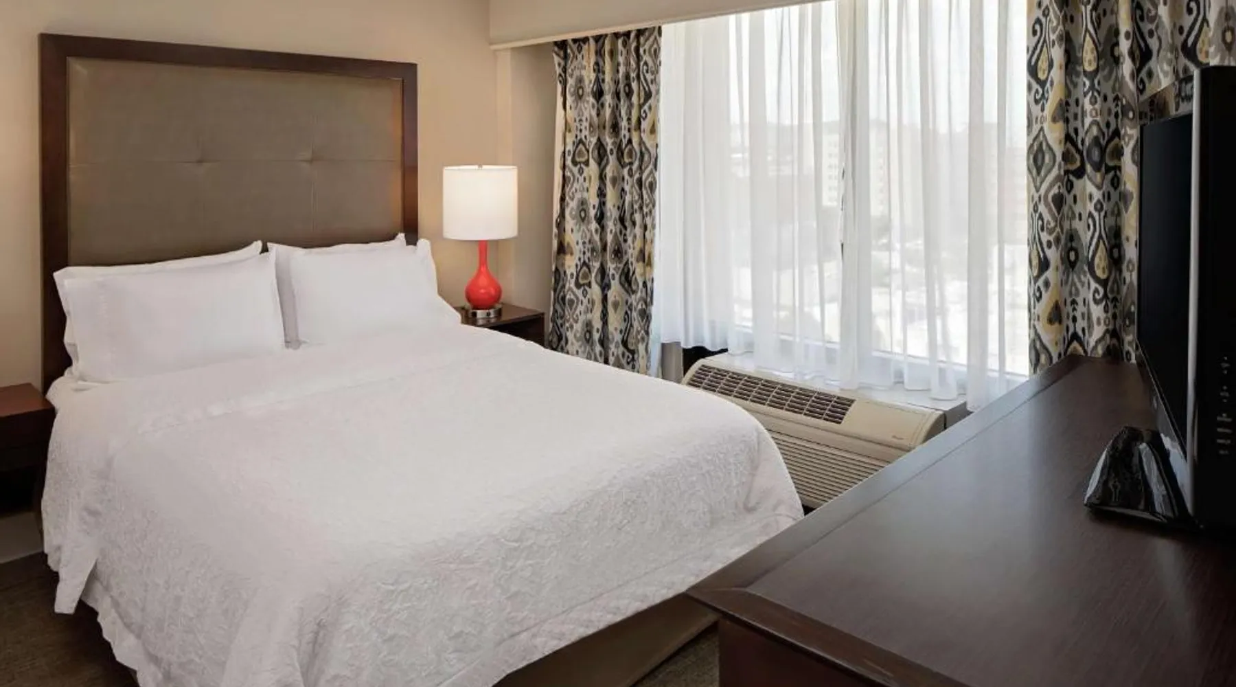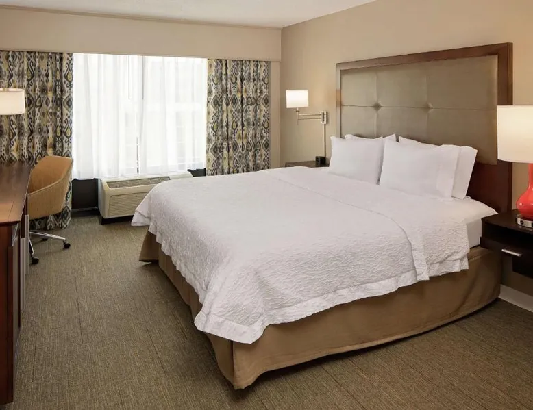 Located 5 miles from Louisville International Airport in downtown Louisville, Kentucky. Rooms at Hampton Inn feature free Wi-Fi. All rooms provide cable TV with on-demand movies. They have desks along with coffee makers and hairdryers. Guests at Hampton Inn Louisville Downtown can enjoy a breakfast buffet. For added convenience, the hotel offers a bar. There is also a gym and business center. Downtown Louisville Hampton is within a 5-minute drive of Louisville Slugger Museum & Factory, Muhammad Ali Center and Louisville Waterfront Park. It is within 15 minutes of Kentucky Kingdom Amusement Park and Churchill Downs, home of the Kentucky Derby. Hampton Inn Louisville Downtown is committed to providing its guests and associates with a smoke free environment. Smoking tobacco, pipes, vapes, e-cigarets and marijuana is strictly prohibited within the hotel. By booking through this website, you acknowledge that the hotel has installed smoking detection sensors provided by Rest in its rooms. Rest is a smart device that allows hotel management to respond to smoking events without disrupting your stay. You hereby agree and consent to the use of such sensor in your room and acknowledge and agree that it is 100% privacy compliant and required by the hotel. By acknowledging the foregoing, you agree to waive any future claims related to the presence of the sensor in a room you may book. Tampering with the sensor is strictly prohibited. This double room features air conditioning, a tea and coffee maker and a flat-screen TV with cable channels. The unit offers 1 bed.
