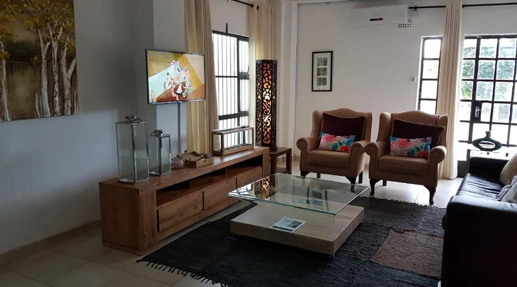 The Residence Villa Chobe is a luxury holiday home with a large private garden and balcony overlooking the Chobe River, located close to Kasane. Guests benefit from free WiFi, air-conditioning, and private parking available on site. There are four bedrooms, three bathrooms, and a kitchen complete with an oven and a microwave. A flat-screen TV with cable channels is featured. Other facilities at The Residence Villa Chobe include a private outdoor pool, gas bbq and entertaining area, and guests can dine at Rudy's restaurant, located on the far side of the property. Guests will have a special experience as this holiday home offers a pool with a view. Featuring a private entrance, this air-conditioned holiday home consists of 2 living rooms, 4 separate bedrooms and 3 bathrooms with a walk-in shower and a bath. Guests will find a stovetop, a refrigerator, a dishwasher and kitchenware in the kitchen. The holiday home also provides guests with a barbecue. The spacious holiday home provides a washing machine, a mini-bar, a tea and coffee maker, a flat-screen TV with cable channels, as well as garden views. The unit offers 5 beds.