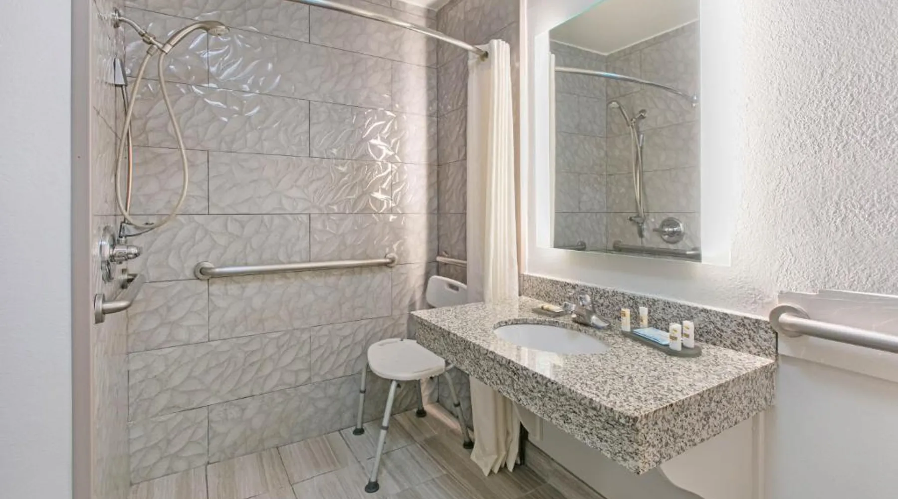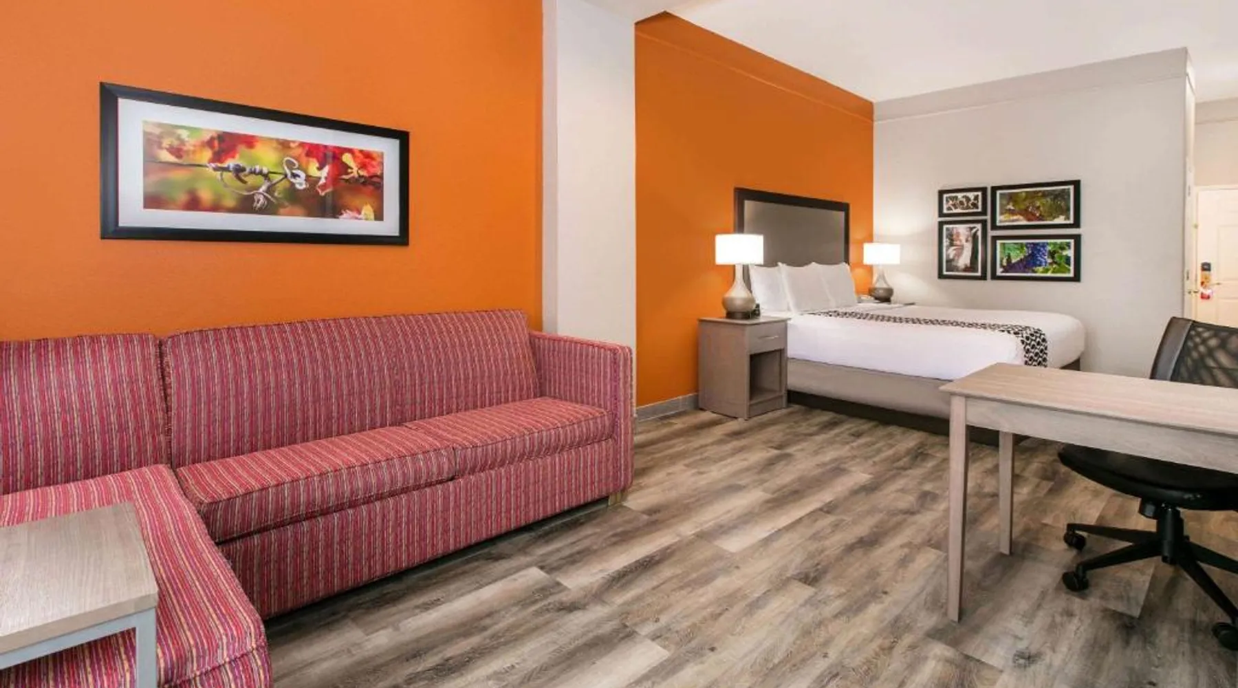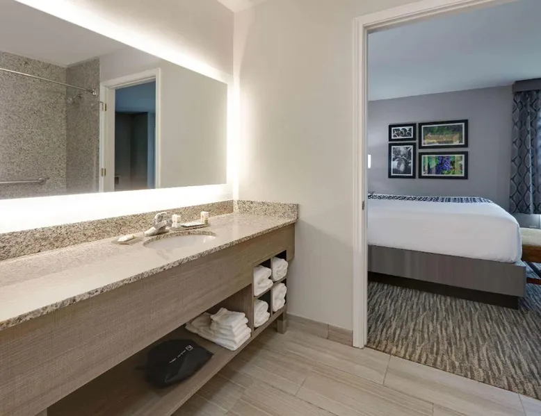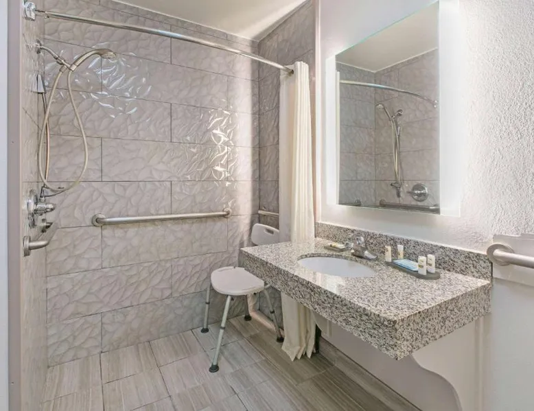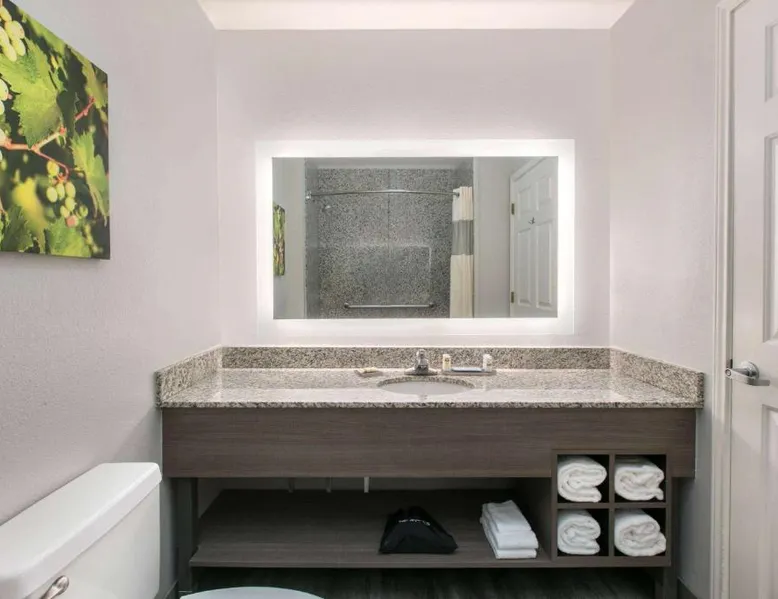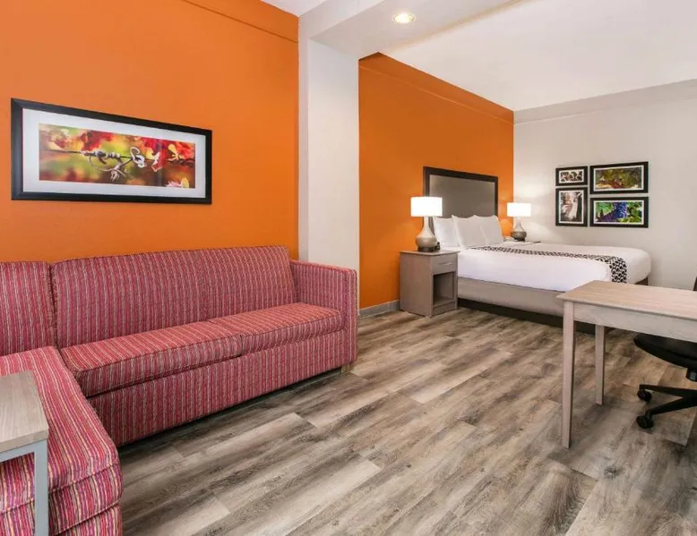 Daily breakfast and free Wi-Fi are provided at this Fredericksburg property. A fridge and a microwave are included in each room and a fitness center is on site. Texas Tech University is 2 miles away. A flat-screen cable TV is featured in rooms at La Quinta Inn and Suites Fredericksburg. A coffee maker is also provided in each air-conditioned guest room. Cereal, biscuits and gravy are available for breakfast at Fredericksburg La Quinta Inn and Suites. Waffles, fresh fruit and muffins are also available. Guests can enjoy unlimited coffee and juice. An outdoor swimming pool is featured at La Quinta – Fredericksburg. A guest laundromat and fax and photocopying facilities are available on site. Northwoods Shopping Center is a 5-minute drive away. Lady Bird Johnson Golf Course is 5 miles from La Quinta Inn and Suites Fredericksburg. The spacious double room features air conditioning, a tea and coffee maker, as well as a private bathroom boasting a bath and a shower. The double room offers a seating area, a wardrobe, a sofa, heating, as well as a flat-screen TV with cable channels. The unit has 1 bed.