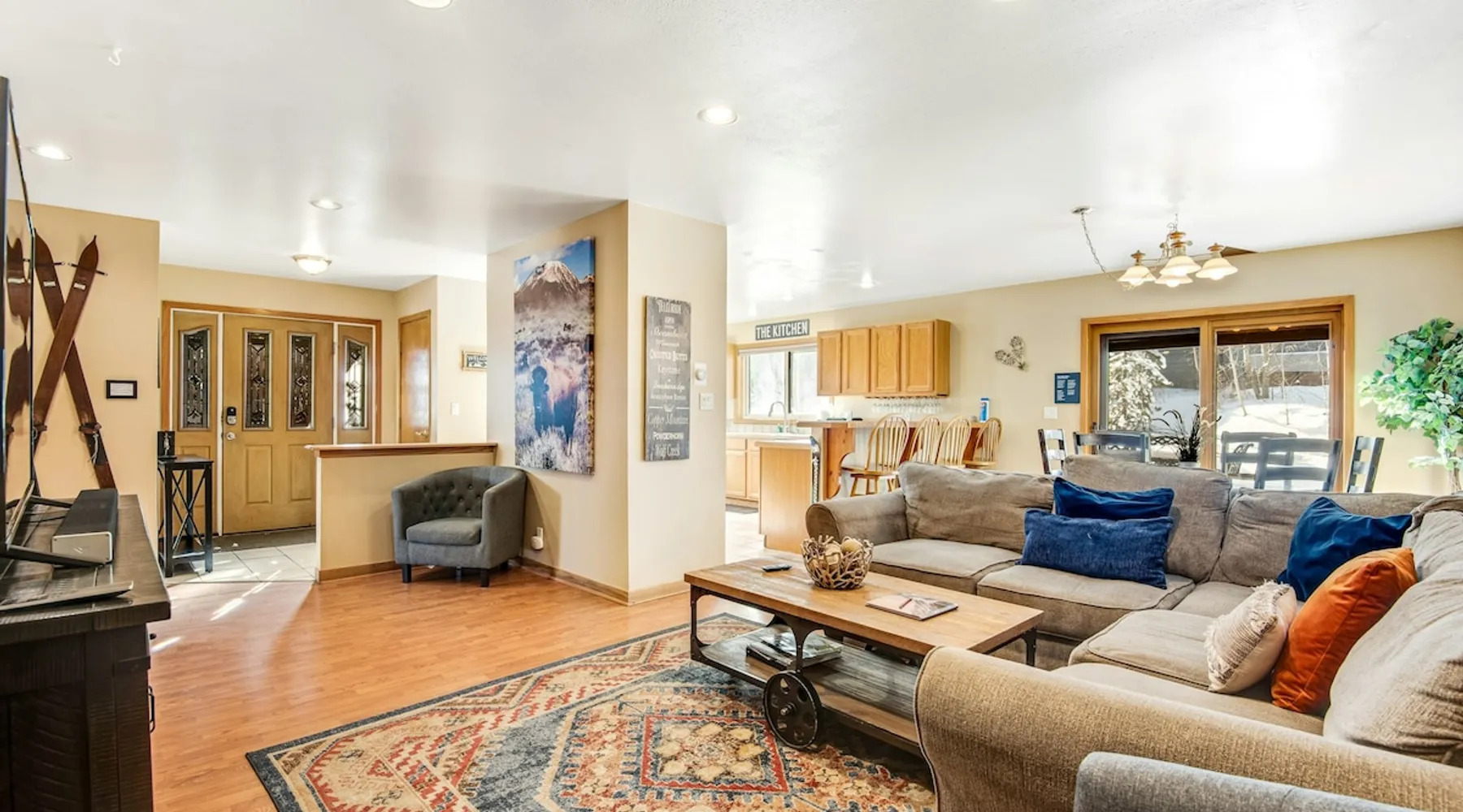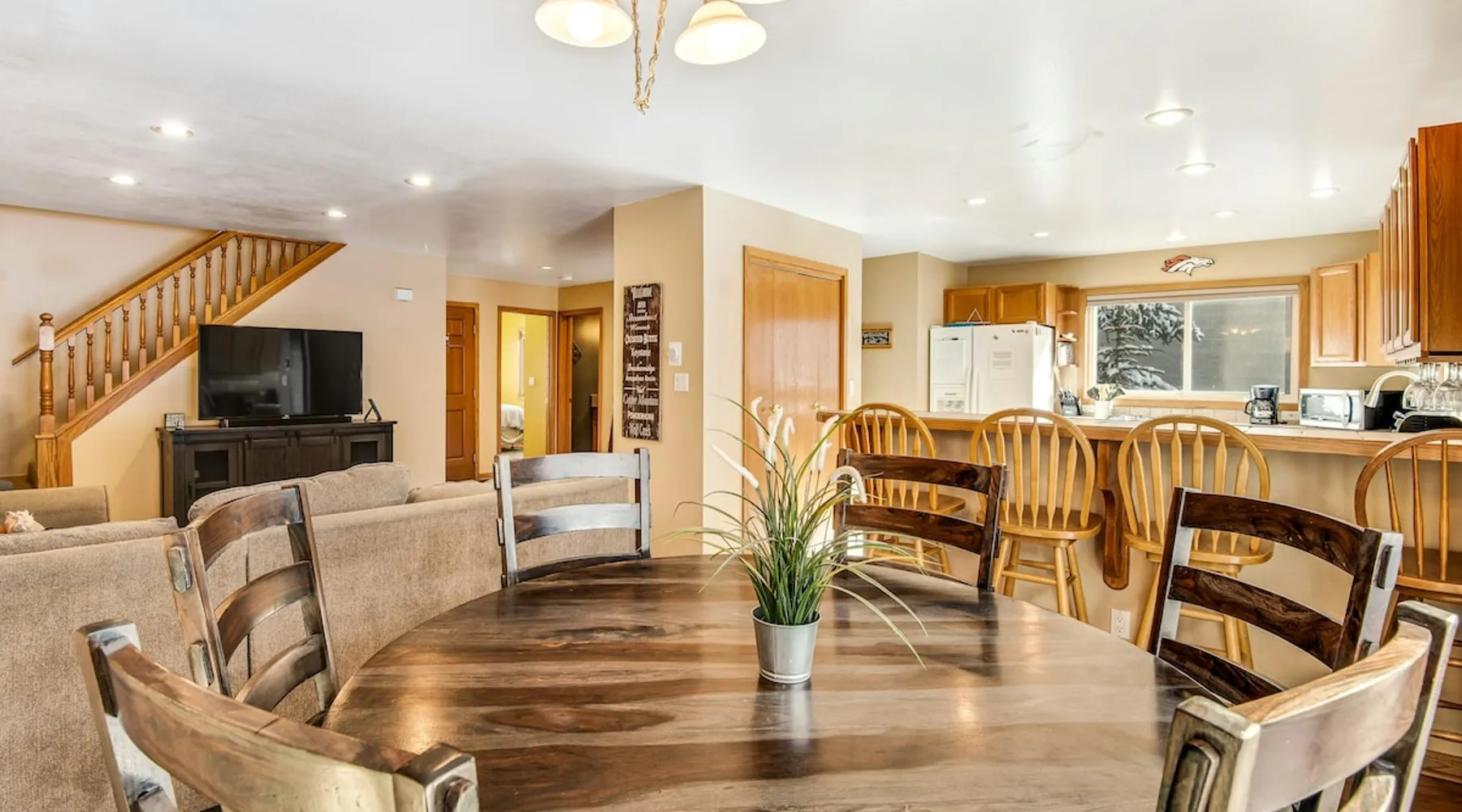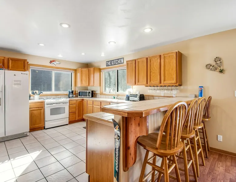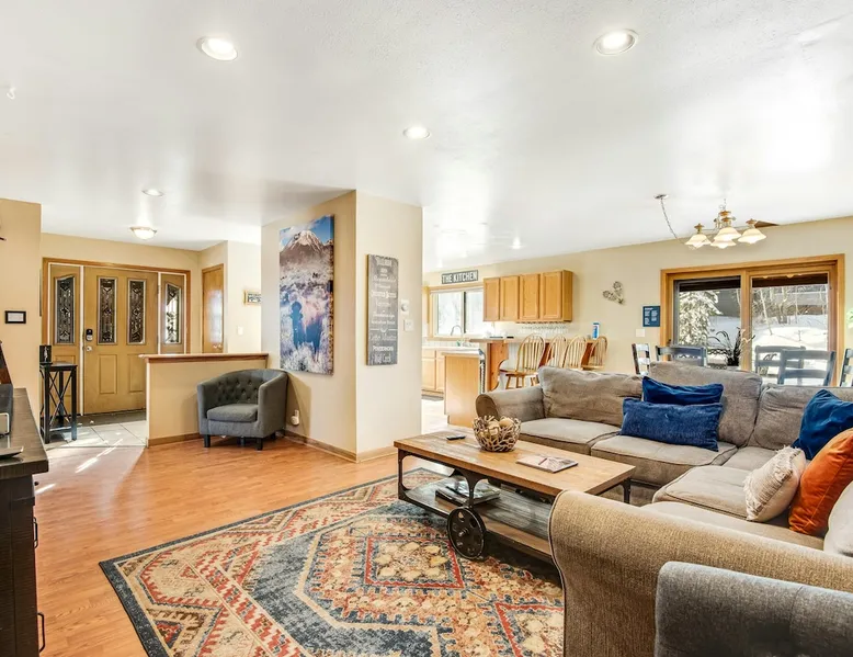 The space Twenty Grand Chalet Please be advised all shared hot tubs, pools, and clubhouses in Summit County are closed due to local rules and regulations. All hot tubs at private homes will remain open. As local policies change by the hour, access to amenities is beyond our control. We encourage you to check local regulations before your trip so you can be as prepared as possible. This five-bedroom, chalet-style duplex provides guests comfort and convenience with a private hot tub, a jetted tub, steam shower in the master bathroom, and close proximity to the lake and slopes. Dillon Reservoir is only four miles away and is ideal for boating and fishing in the summer. Plentiful hiking is also available in the area. In the winter, drive 10 miles to Keystone Resort for quality downhill and boarding; closer to home, do a little cross-country skiing or snowshoeing. Up to 16 guests can revel in the comfort and style of this home. Entertain yourself with the free WiFi, take a soak in the hot tub, or relax on the deck after enjoying the meal you made in the full kitchen. A private washer/dryer are also available. Your stress-free Silverthorne adventure awaits. Reserve this home today! No dog(s) are welcome in this home. No other animals are allowed without specific Vacasa approval. Parking notes: There is free parking available for 4 vehicles. Damage waiver: The total cost of your reservation for this Property includes a damage waiver fee which covers you for up to $3,000 of accidental damage to the Property or its contents (such as furniture, fixtures, and appliances) as long as you report the incident to the host prior to checking out. More information can be found from the "Additional rules" on the checkout page. Due to local laws or HOA requirements, guests must be at least 25 years of age to book. Guests under 25 must be accompanied by a parent or legal guardian for the duration of the reservation. Registration Details STR21-01486