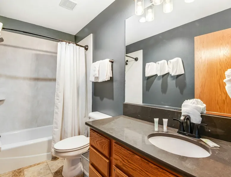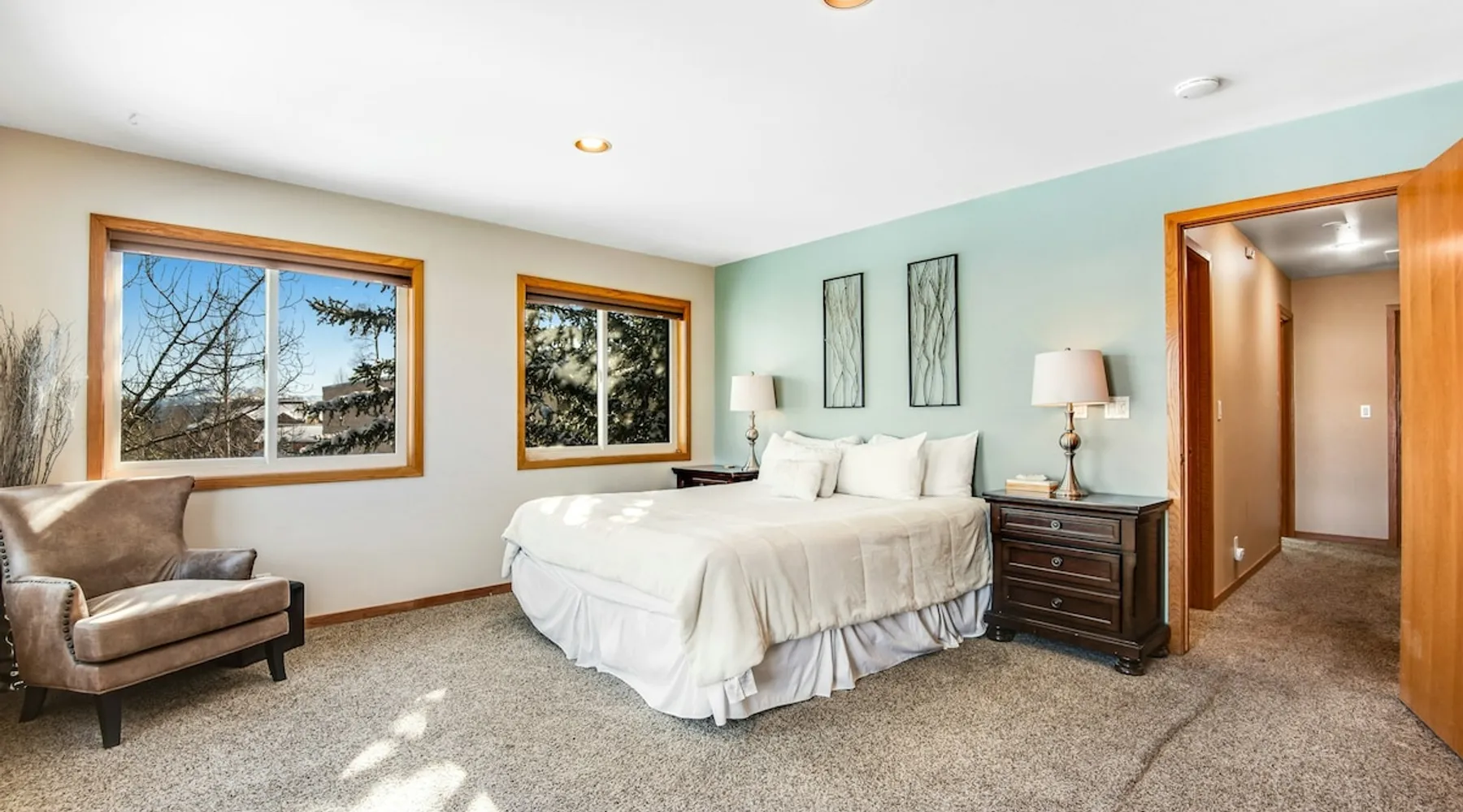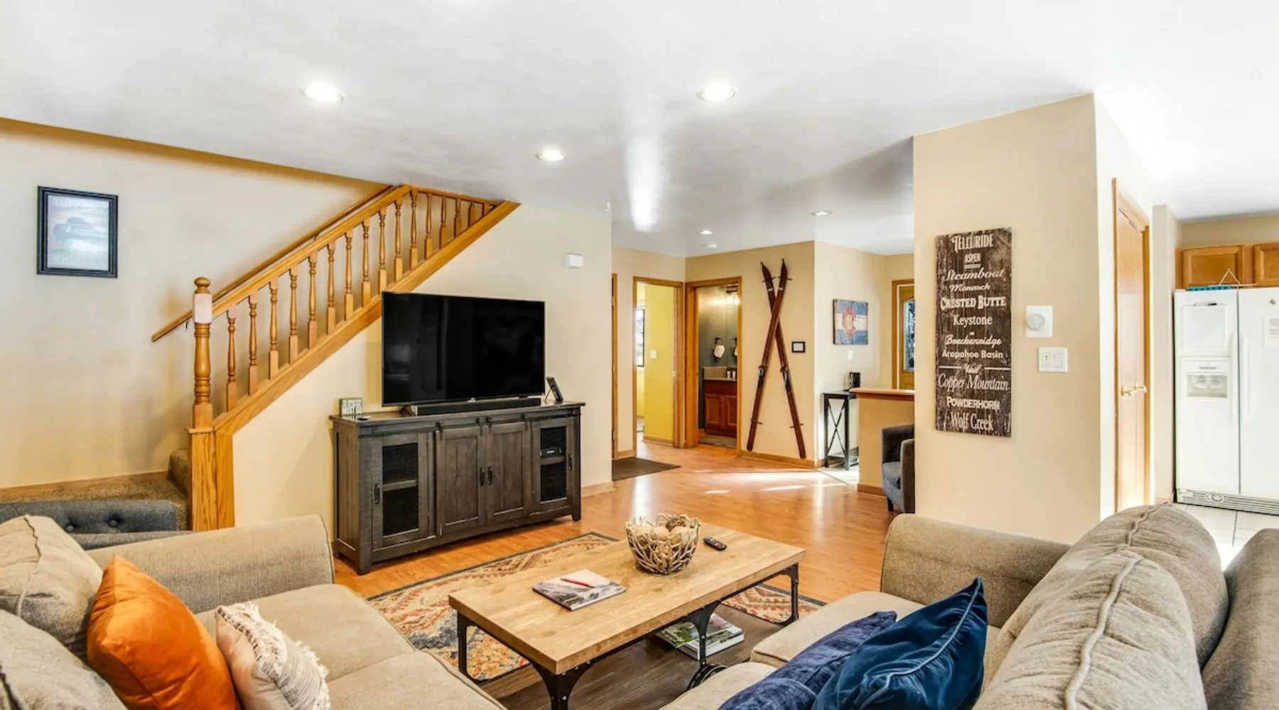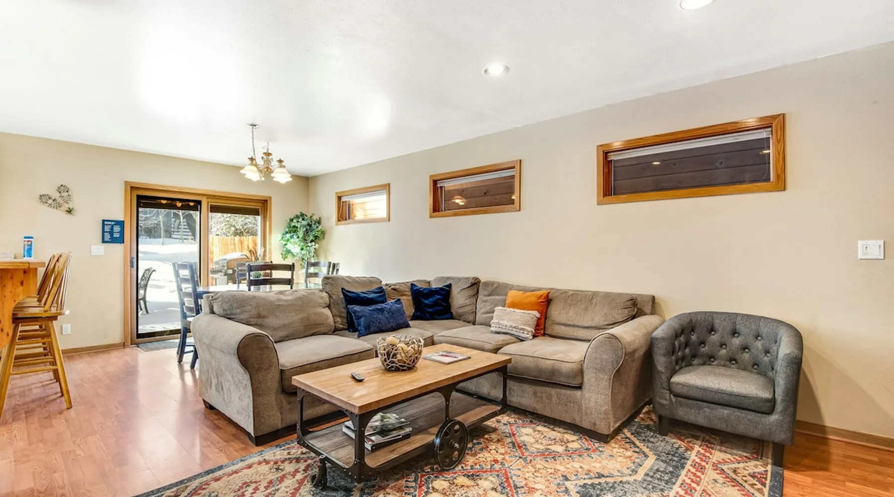 The space Twenty Grand Chalet Please be advised all shared hot tubs, pools, and clubhouses in Summit County are closed due to local rules and regulations. All hot tubs at private homes will remain open. As local policies change by the hour, access to amenities is beyond our control. We encourage you to check local regulations before your trip so you can be as prepared as possible. This five-bedroom, chalet-style duplex provides guests comfort and convenience with a private hot tub, a jetted tub, steam shower in the master bathroom, and close proximity to the lake and slopes. Dillon Reservoir is only four miles away and is ideal for boating and fishing in the summer. Plentiful hiking is also available in the area. In the winter, drive 10 miles to Keystone Resort for quality downhill and boarding; closer to home, do a little cross-country skiing or snowshoeing. Up to 16 guests can revel in the comfort and style of this home. Entertain yourself with the free WiFi, take a soak in the hot tub, or relax on the deck after enjoying the meal you made in the full kitchen. A private washer/dryer are also available. Your stress-free Silverthorne adventure awaits. Reserve this home today! No dog(s) are welcome in this home. No other animals are allowed without specific Vacasa approval. Parking notes: There is free parking available for 4 vehicles. Damage waiver: The total cost of your reservation for this Property includes a damage waiver fee which covers you for up to $3,000 of accidental damage to the Property or its contents (such as furniture, fixtures, and appliances) as long as you report the incident to the host prior to checking out. More information can be found from the "Additional rules" on the checkout page. Due to local laws or HOA requirements, guests must be at least 25 years of age to book. Guests under 25 must be accompanied by a parent or legal guardian for the duration of the reservation. Registration Details STR21-01486