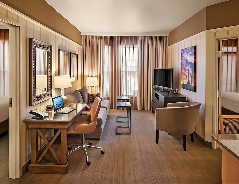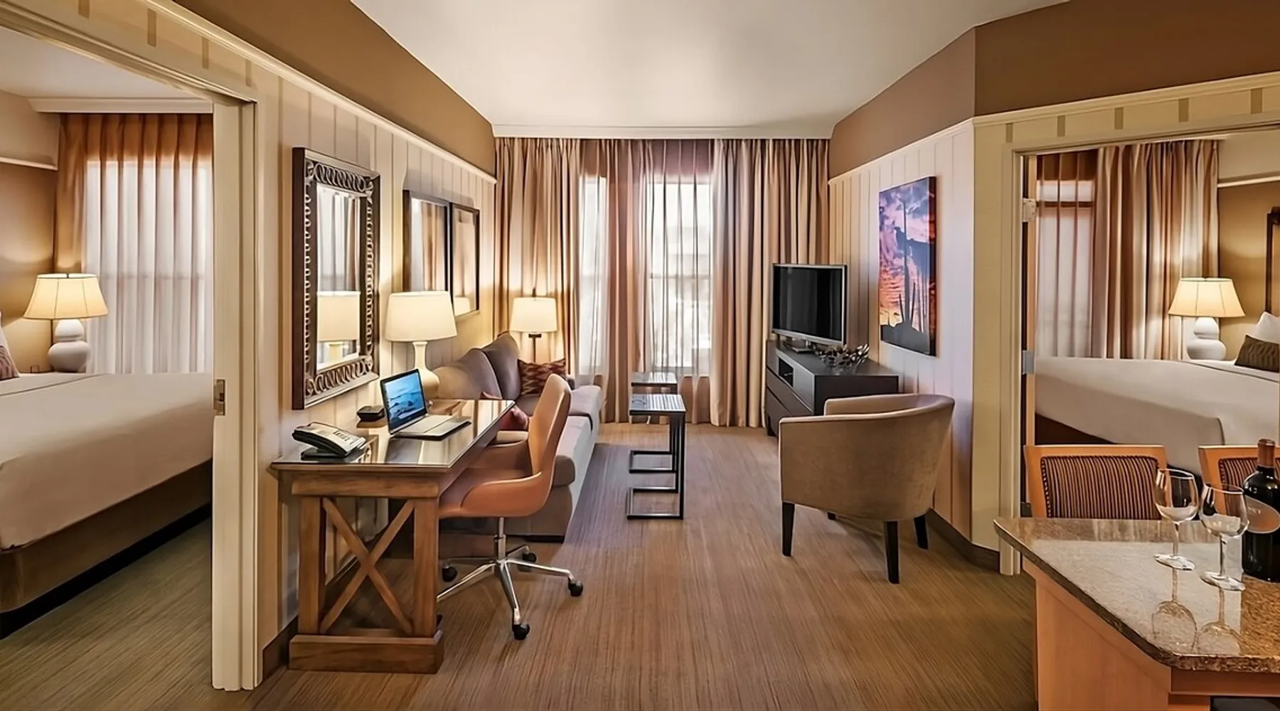 The property is excellently situated in the heart of downtown Scottsdale, Arizona. Visit the picturesque Gainey Ranch Golf Club for a day on the greens, or indulge in retail therapy at the nearby upscale Kierland Commons and Scottsdale Quarter. OdySea Aquarium is only 3 miles from the hotel. Immerse yourself in the beauty of the McDowell Sonoran Preserve with its scenic hiking trails, or spend a day in Old Town Scottsdale, where you'll find art galleries, boutiques, and delicious dining options. The space Discover an all-suite hotel offering spacious accommodations designed for your comfort and convenience. Our elegantly appointed suites feature separate living and sleeping areas, fully equipped kitchens, and complimentary high-speed Wi-Fi. Enjoy a delicious complimentary breakfast each morning, and unwind at our evening reception with drinks and light fare. Maintain your fitness routine in our well-equipped gym, or take a refreshing swim in our outdoor pool and whirlpool. PLEASE NOTE: This listing is specifically for a hotel room located within a hotel, distinguishing it from typical residential or apartment accommodations. - The property requires a damage deposit of USD 75/night/unit on the credit/debit card provided. The deposit is required for EACH UNIT and is refunded IN FULL upon check-out. - Early check-in is subject to availability upon arrival. - Following property rules, the minimum age required for check-in is 21 years old. - The offline daily resort fee will be collected in person at check-in. This fee includes the following amenities and services: -Evening snack with beer, wine, and soft drinks -Wi-Fi in guest rooms and public areas -Local calls We're delighted you're considering RoomPick’s curated selection of boutique hotels, condo hotels, and resorts worldwide. This room comes with: THE UNIT This 733 ft² Two Bedroom Suite - Two Kings features: - 2 King beds; - 1 Sofa bed; - Kitchenette with Coffee Maker, Microwave, and Refrigerator; - Seating area; - Desk; - Flat-screen TV; - All linens, towels, and bathroom essentials are provided. You don’t need to bring anything!! THE PROPERTY Our family and pet-friendly property provides the following on-site amenities: - 24-hour front desk security; - Luggage storage & wake up service; - Heated Outdoor swimming pool; - Loungers, umbrellas, and towels by the pool; - Hot tub/Jacuzzi; - Bar with Happy hour; - Shared lounge/TV area; - Fitness center; - Business center with meeting/banquet facilities; - Fax/photocopying available; - Laundry & dry cleaning services; - Pets allowed for an extra charge of USD 75 per pet, per stay; - Parking is available for guests on the property and is free of cost (for 1 car per unit). Please ensure you have a valid ID for check-in, as it is mandatory for entry. Guest access There is a 24/7 front desk in the building that handles the keys. The guests can keep their luggage at the front desk before check-in and after check out. Other things to note We have more units to accommodate larger groups