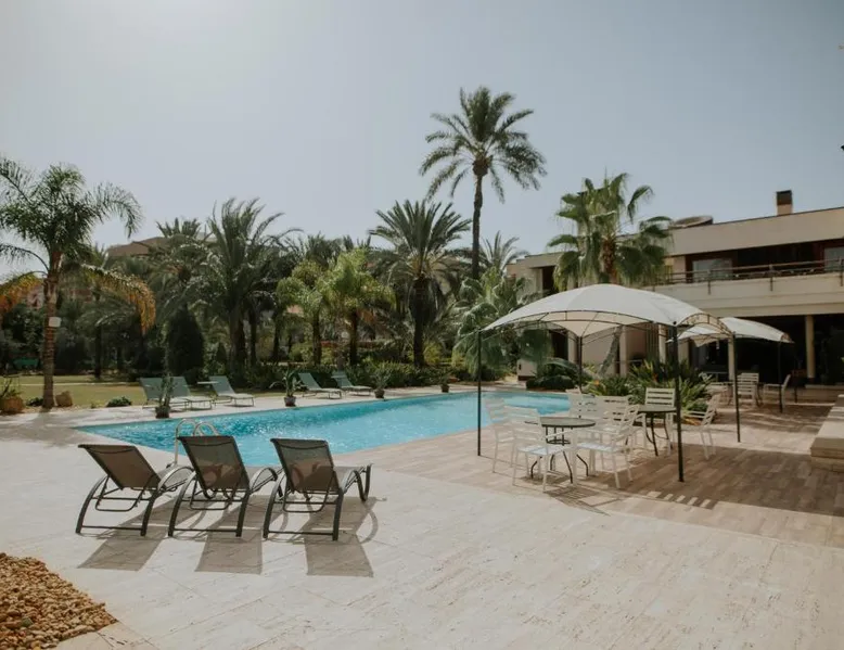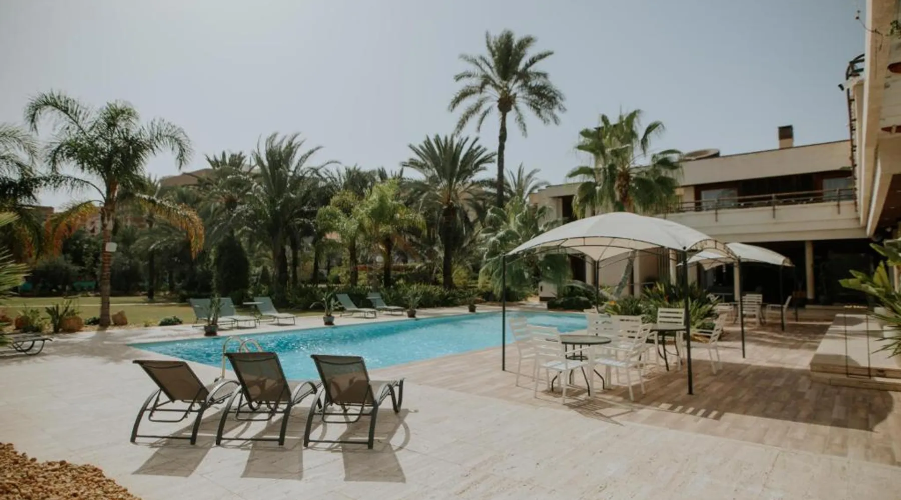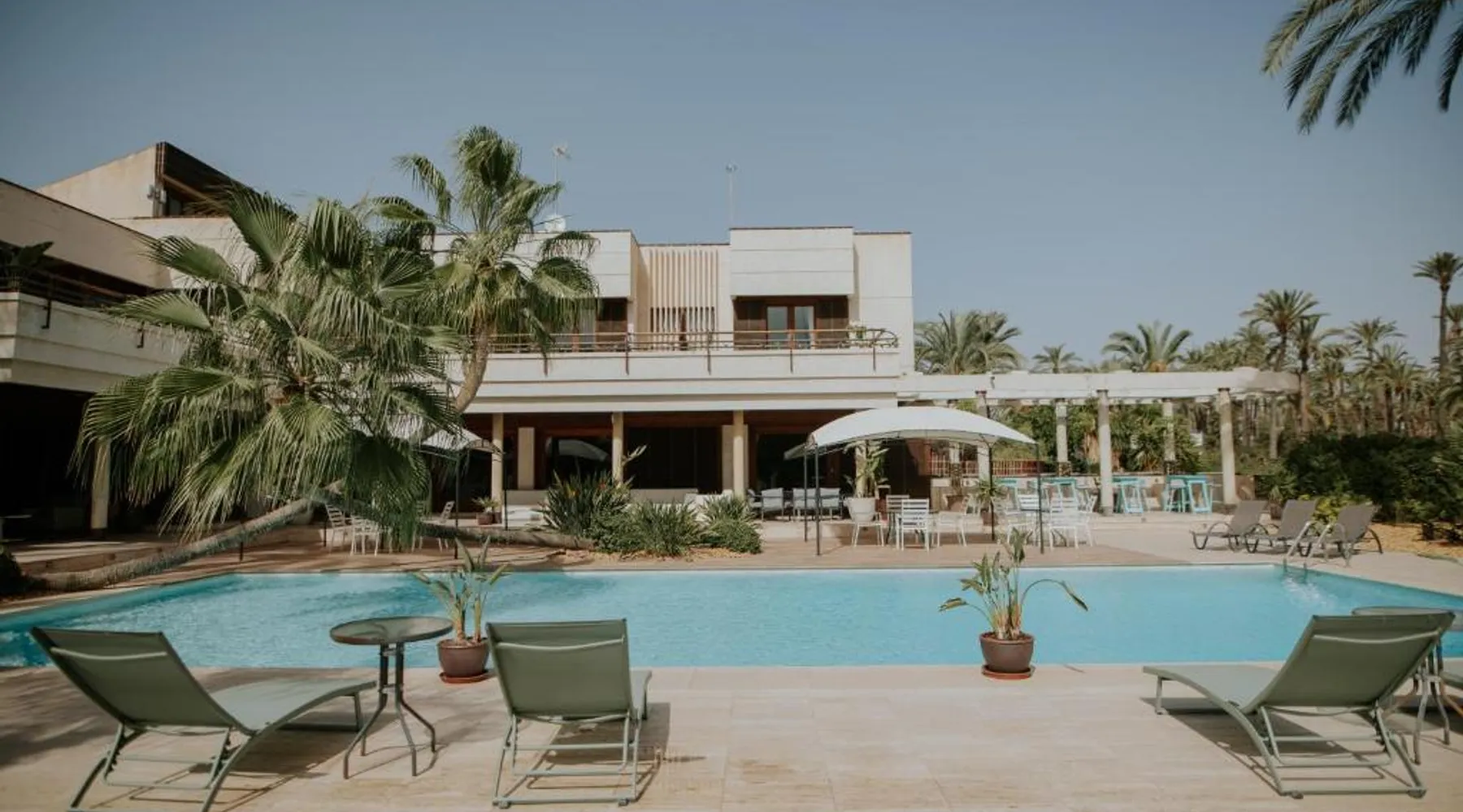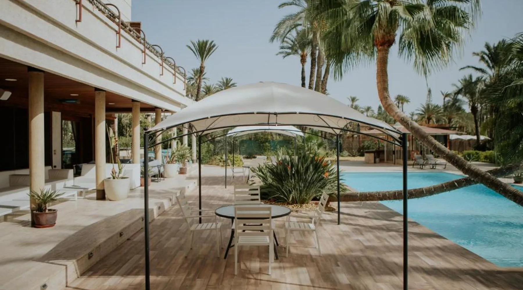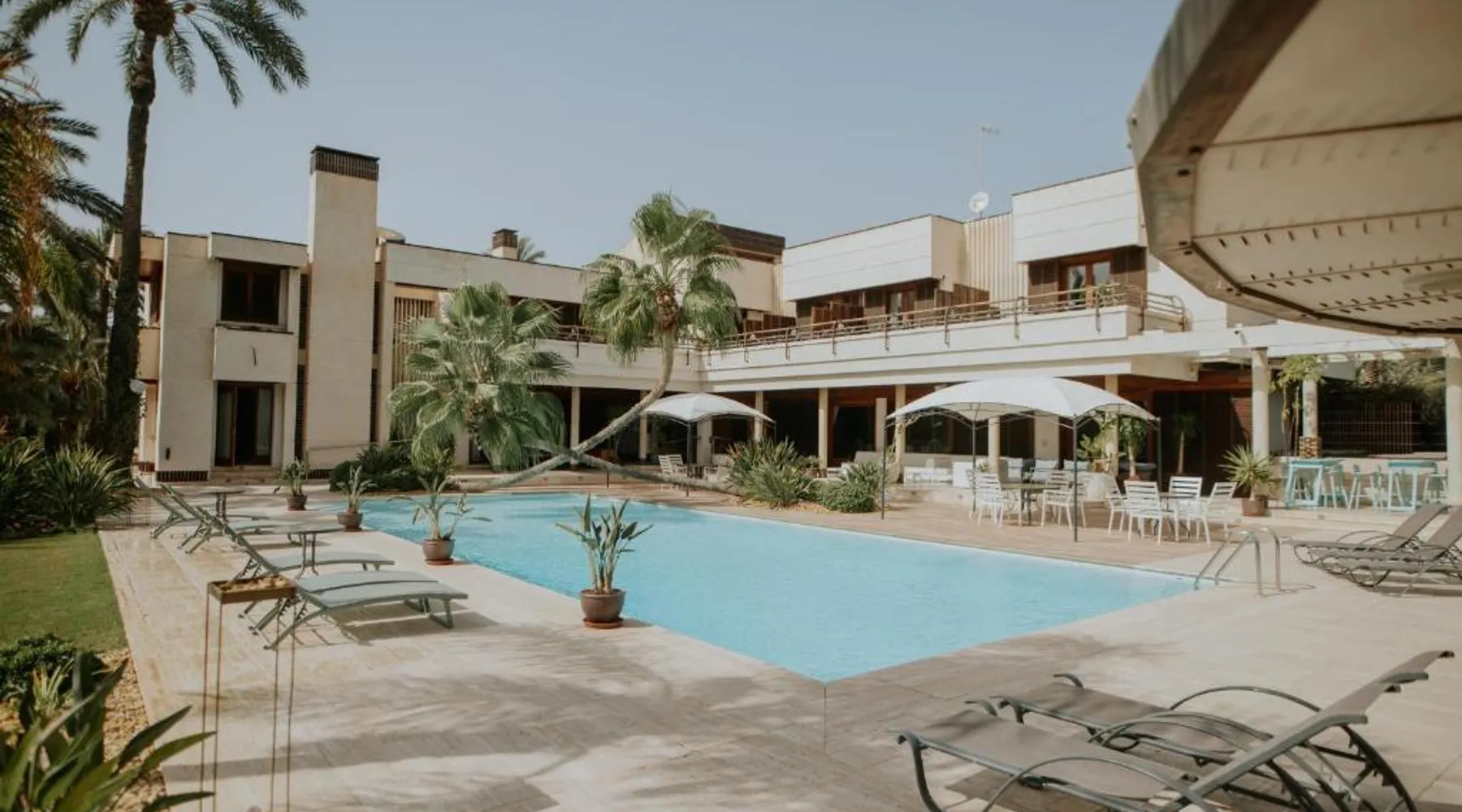 Elegant Accommodations: Hotel Boutique Hort de Nal in Elche offers an adults-only 4-star experience with a sun terrace, garden, and a year-round outdoor swimming pool. Free WiFi is available throughout the property. Comfortable Amenities: Guests enjoy private check-in and check-out, a paid airport shuttle service, lounge, beauty services, and a tour desk. Additional facilities include a coffee shop, outdoor seating area, picnic area, and free on-site private parking. Dining Experience: The modern, romantic restaurant serves European cuisine with vegetarian, vegan, gluten-free, and dairy-free options. Breakfast includes continental, American, full English/Irish, and local specialties. Prime Location: Located 6.8 mi from Alicante–Elche Miguel Hernández Airport, the hotel is near attractions such as Santa Pola Salt Museum (11 mi) and Alicante Museum of Contemporary Art (16 mi). Highly rated for its attentive staff and beautiful garden. Guests will have a special experience as the family room offers a pool with a view. The spacious family room provides air conditioning, a private entrance, a terrace with garden views as well as a private bathroom featuring a bath. The unit offers 1 bed.