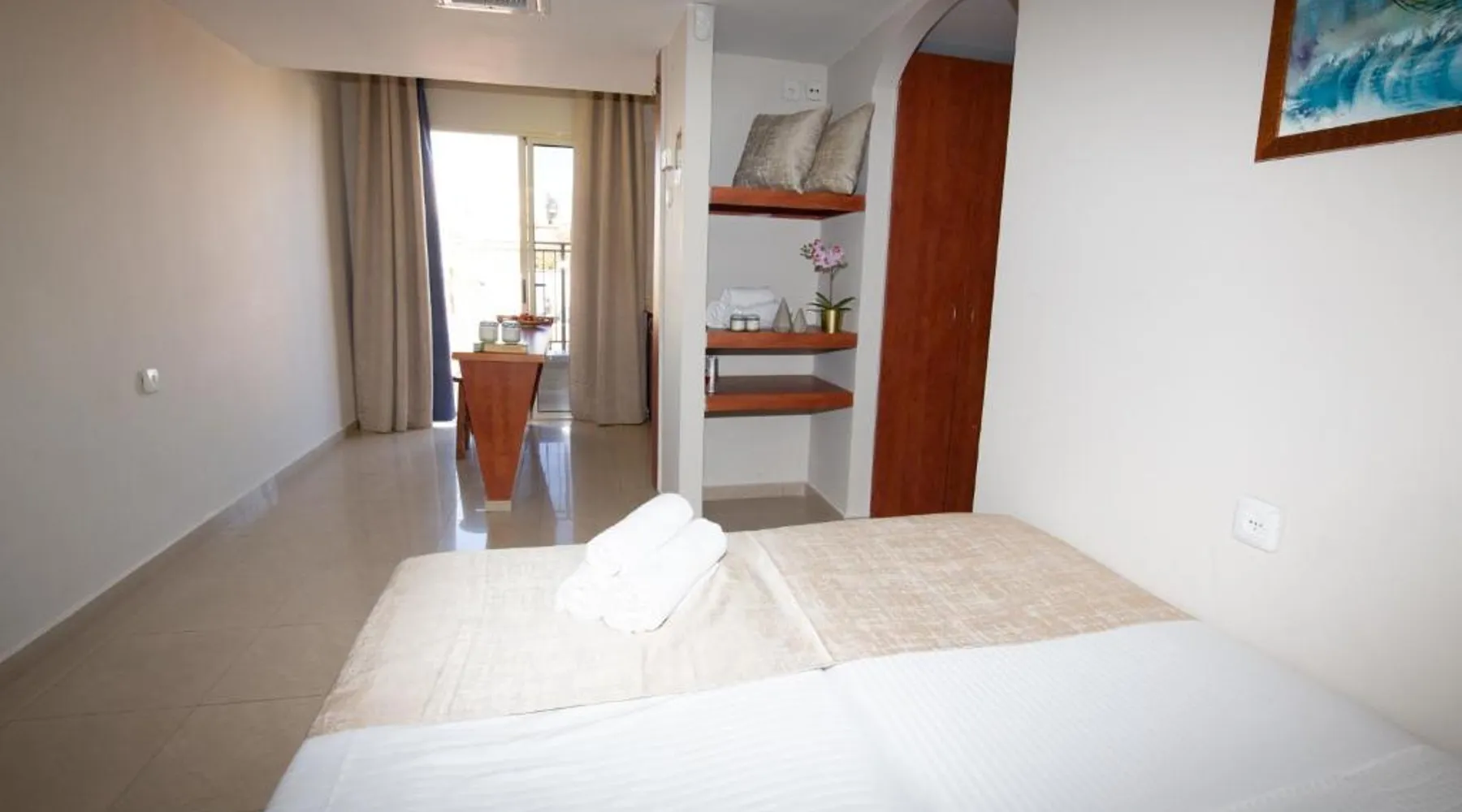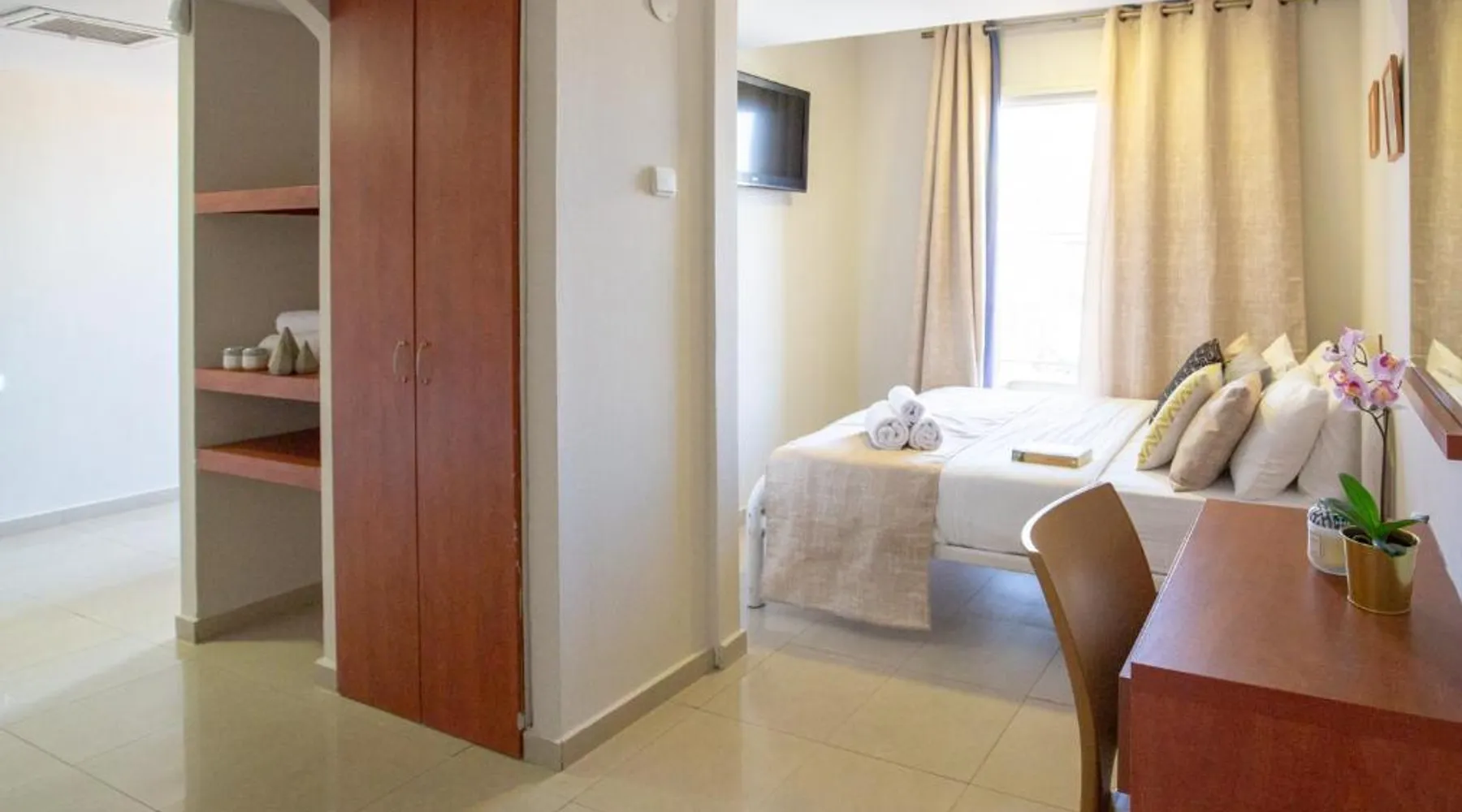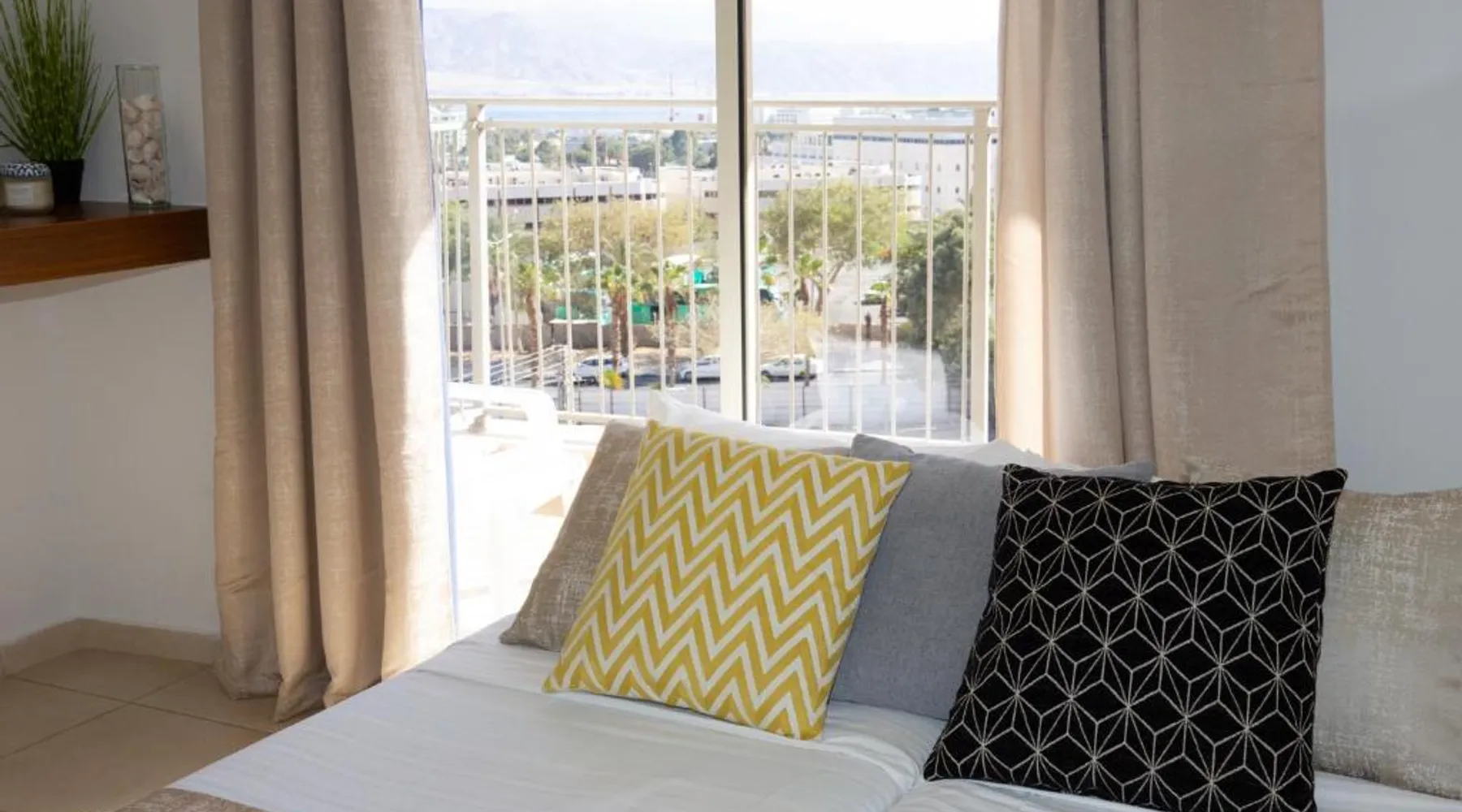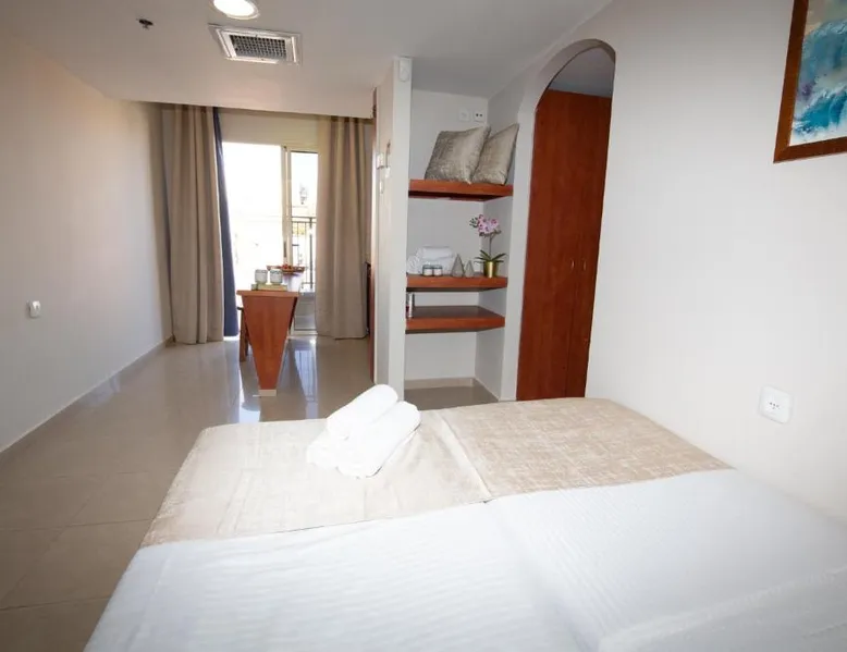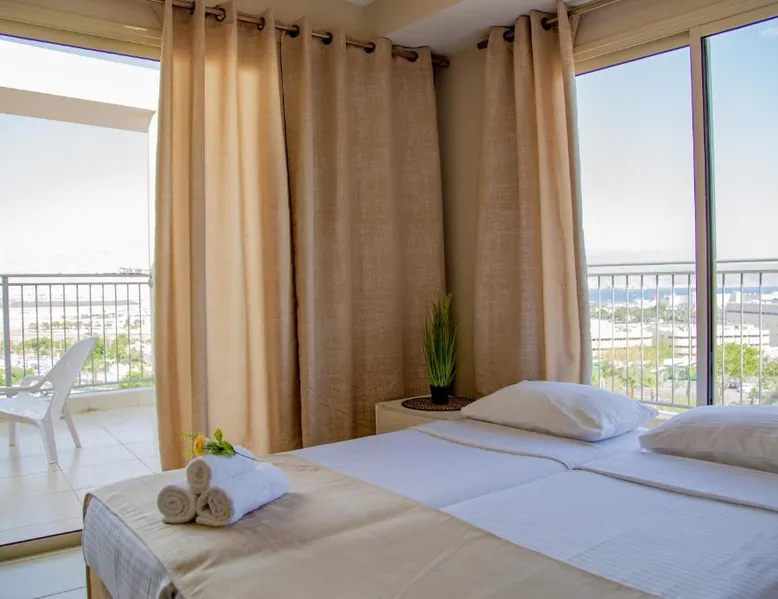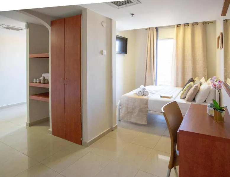Offering an outdoor swimming pool, Motel Aviv is in the center of Eilat. It is 10 minutes' walk from the town's shopping promenade and beaches. The Aviv Motel offers rooms and suites, all of which are air conditioned and include free WiFi and a TV with cable channels. The suites also include a balcony and kitchenette. You are just 5 minutes' walk from the central bus station and Eilat Airport. The swimming pool is open from 13:00 until 20:00. The junior suite features a balcony with sea or mountain views. Amenities include a fridge and an electric kettle. Free WiFi is provided. This room cannot accommodate extra beds.