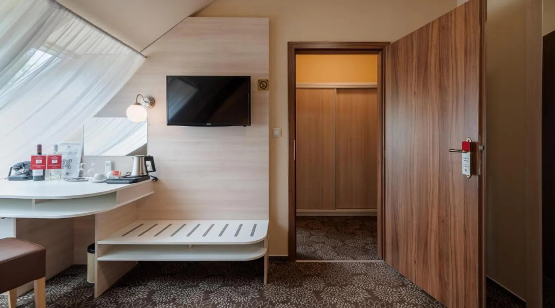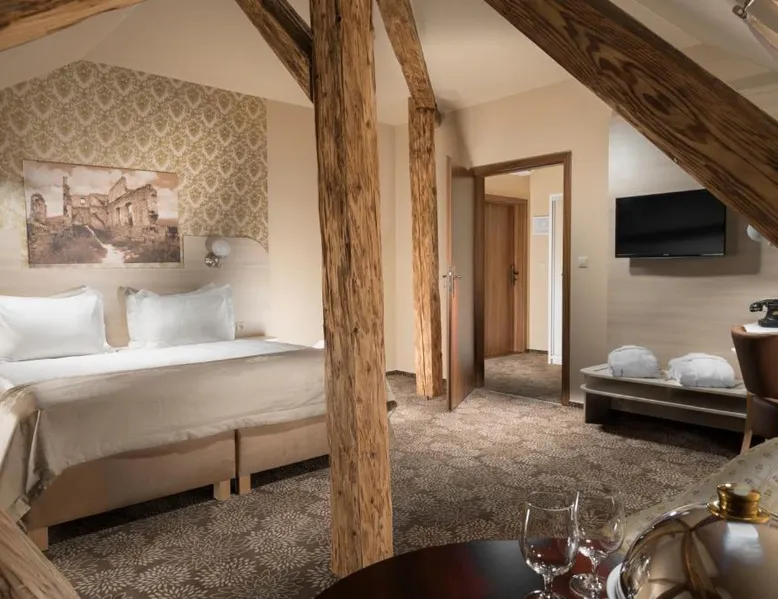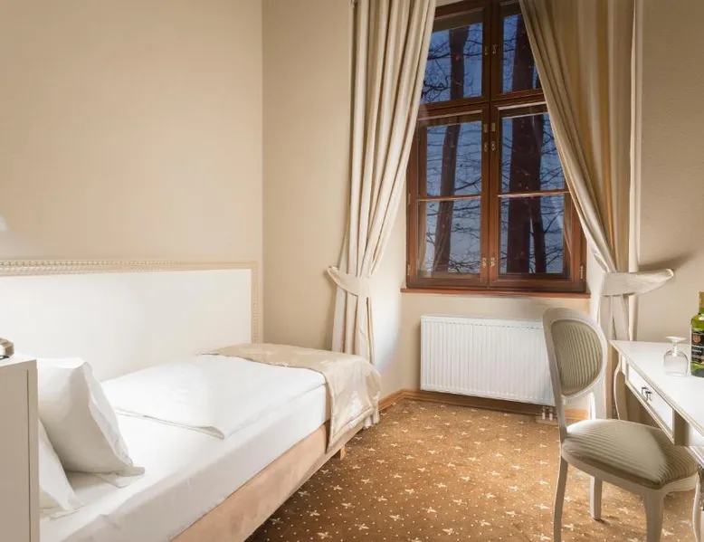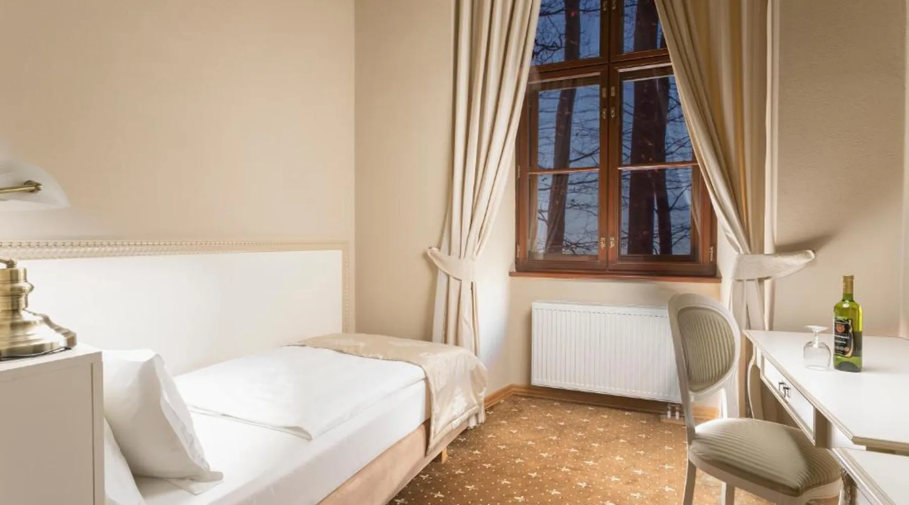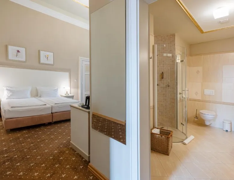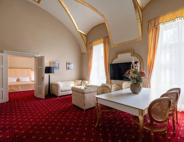 Hotel Gino Park Palace**** is located in a renovated 17th-century manor on the outskirts of Považská Bystrica, in a quiet natural setting. It offers modern accommodations with a historic atmosphere, a restaurant, three lounges, a wellness center, and a summer terrace. Guests can visit historical exhibitions or a Baroque chapel, purchase snacks at the reception, and enjoy free Wi-Fi, parking, and bicycle rental. The rooms are unique, each with its own distinct character, furnished with a sense of preserving the elegance of the space, and equipped with a mini-bar, safe, TV, internet, coffee and tea facilities, and a private bathroom with a shower. The surrounding area offers hiking opportunities, including Manínska Tiesňava Gorge, Považský Castle, and the Súľov Rocks. The hotel is 1.2 mi from the town center, 104 mi from Bratislava Airport, and 124 mi from Vienna Schwechat Airport. Couples particularly appreciate the location – rated 9.3. This suite comes with 1 living room, 1 separate bedroom and 1 bathroom with a shower and free toiletries. The suite features a mini-bar, a tea and coffee maker, a seating area, a flat-screen TV with satellite channels, as well as garden views. The unit has 3 beds.