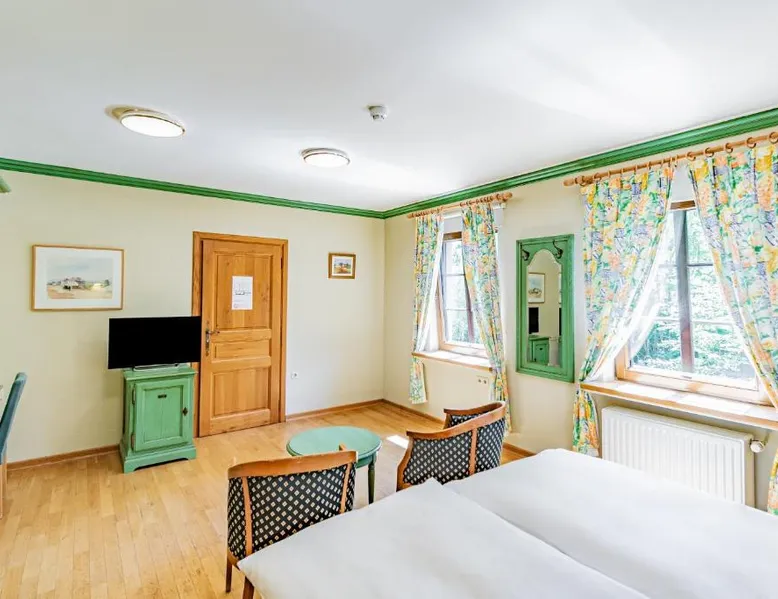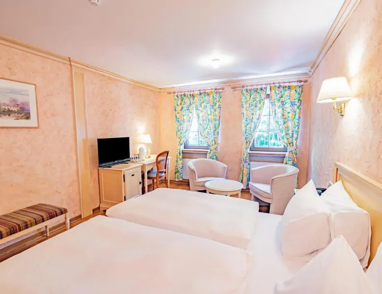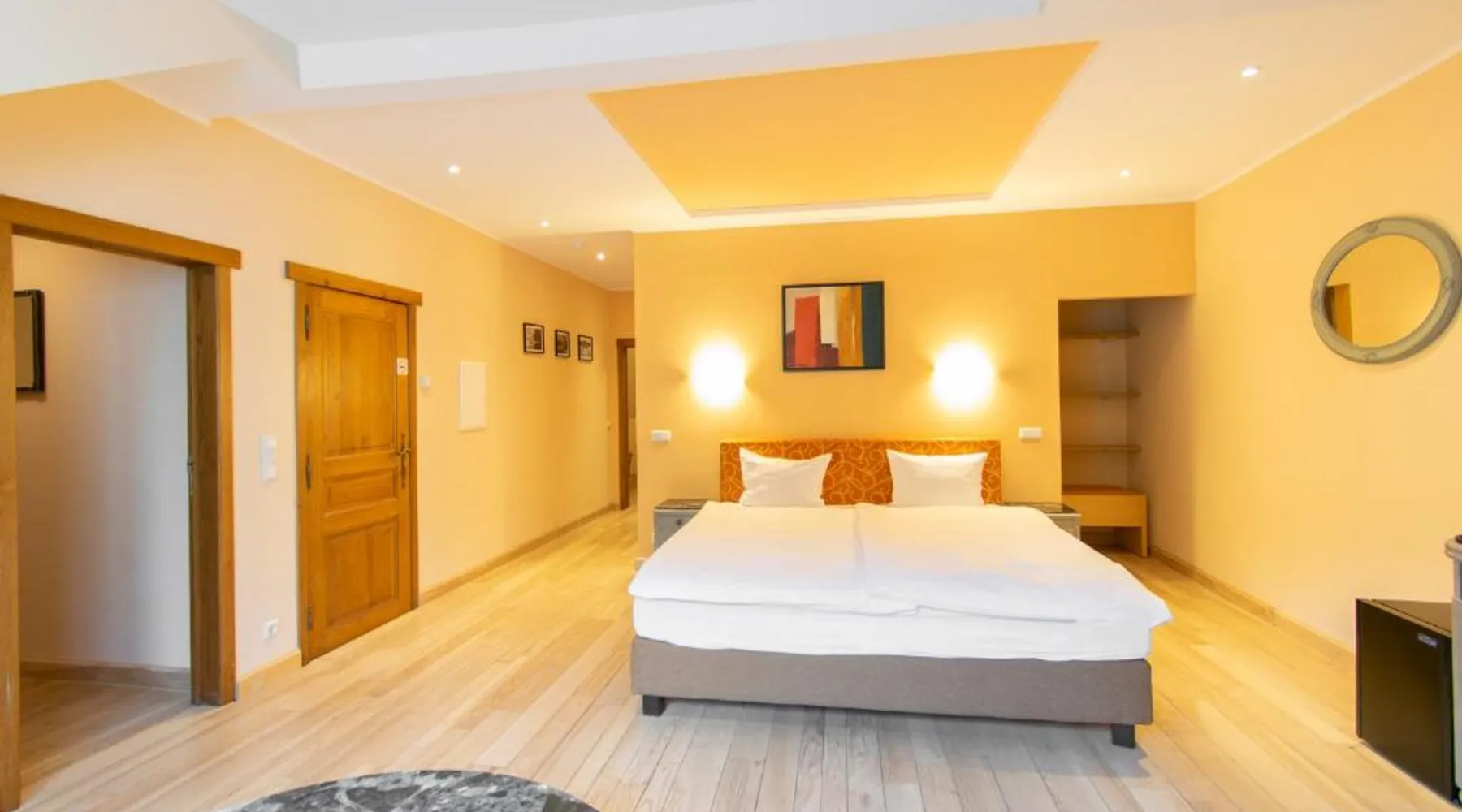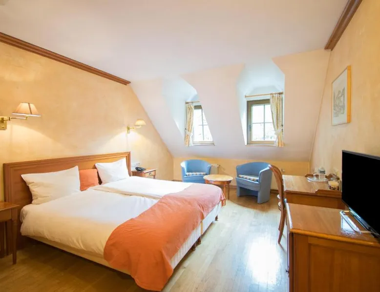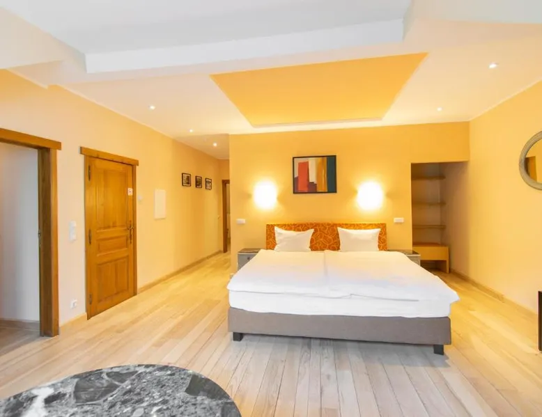 Aux Tanneries de Wiltz is quietly located along the Wiltz river, in the heart of a romantic Ardennes landscape. The hotel offers free Wi-Fi, an indoor pool, a sauna and hammam to relax. There is also a garden terrace to enjoy sunny weather. The surrounding area is ideal for walks and to explore national park La Haute Sure. The Wiltz train station is a 10-minute walk away and offers a connection to Luxembourg city. All hotel rooms have a private bathroom. The restaurant is located under the ancient vaults of a former tannery, which adds a special ambiance to your meal. This spacious suite is consisted of of 2 bedrooms, a seating area and 2 bathrooms with a walk-in shower and a bath. The suite offers a tea and coffee maker, a wardrobe, parquet floors, a flat-screen TV, as well as river views. The unit offers 3 beds.