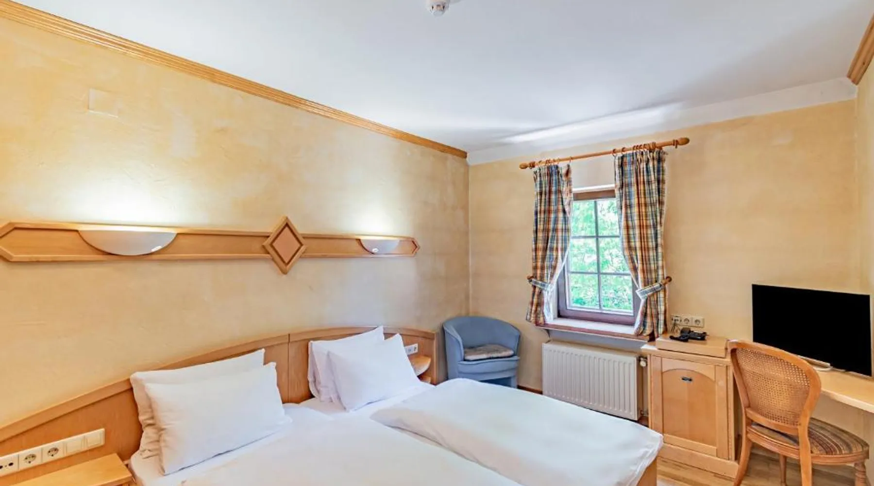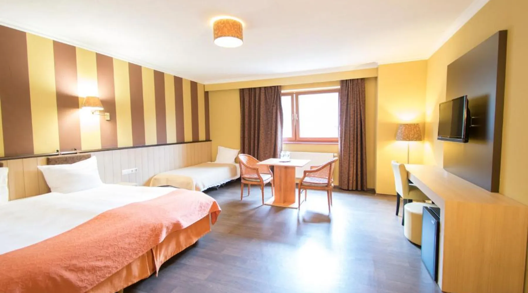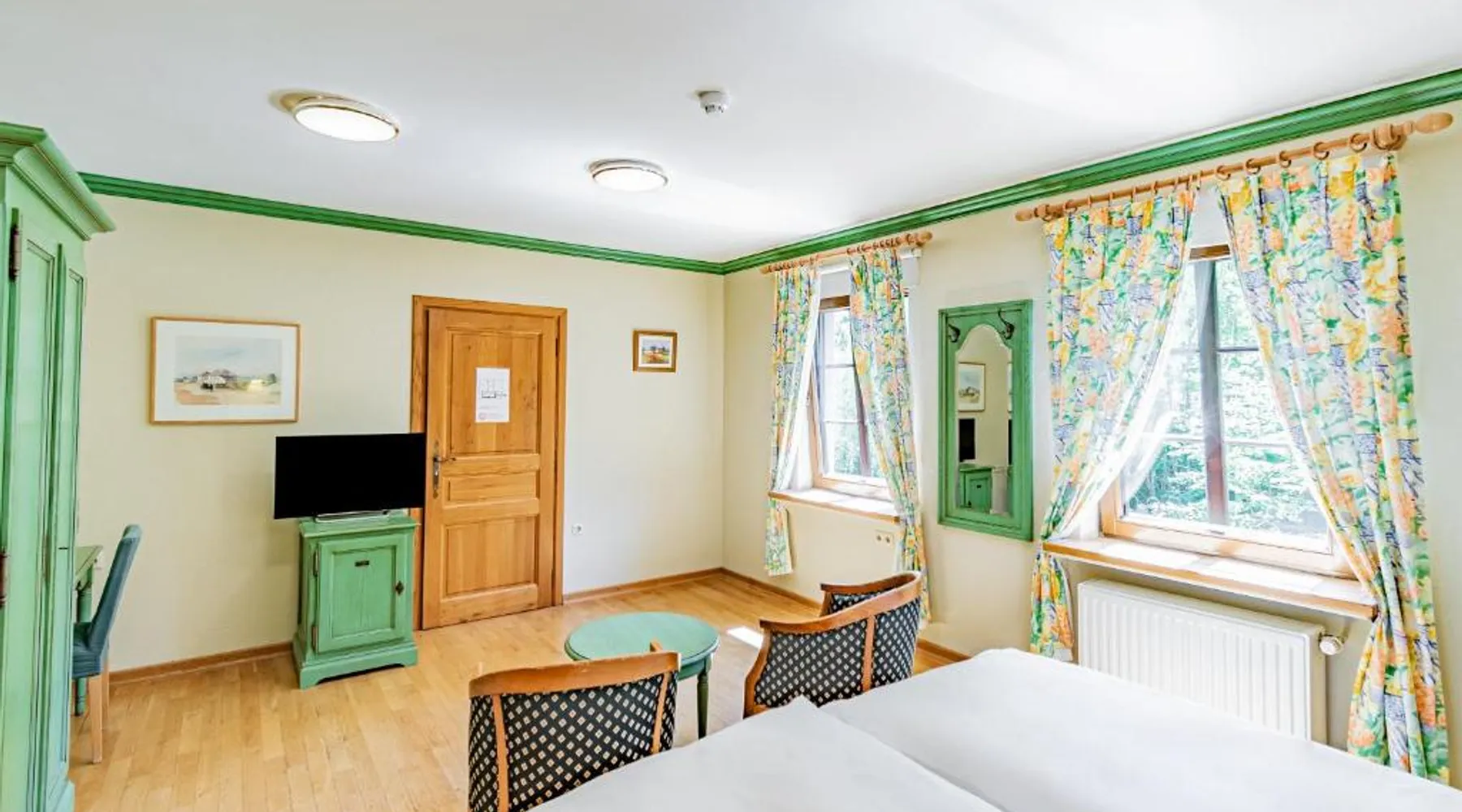 Aux Tanneries de Wiltz is quietly located along the Wiltz river, in the heart of a romantic Ardennes landscape. The hotel offers free Wi-Fi, an indoor pool, a sauna and hammam to relax. There is also a garden terrace to enjoy sunny weather. The surrounding area is ideal for walks and to explore national park La Haute Sure. The Wiltz train station is a 10-minute walk away and offers a connection to Luxembourg city. All hotel rooms have a private bathroom. The restaurant is located under the ancient vaults of a former tannery, which adds a special ambiance to your meal. This spacious suite is consisted of of 2 bedrooms, a seating area and 2 bathrooms with a walk-in shower and a bath. The suite offers a tea and coffee maker, a wardrobe, parquet floors, a flat-screen TV, as well as river views. The unit offers 3 beds.