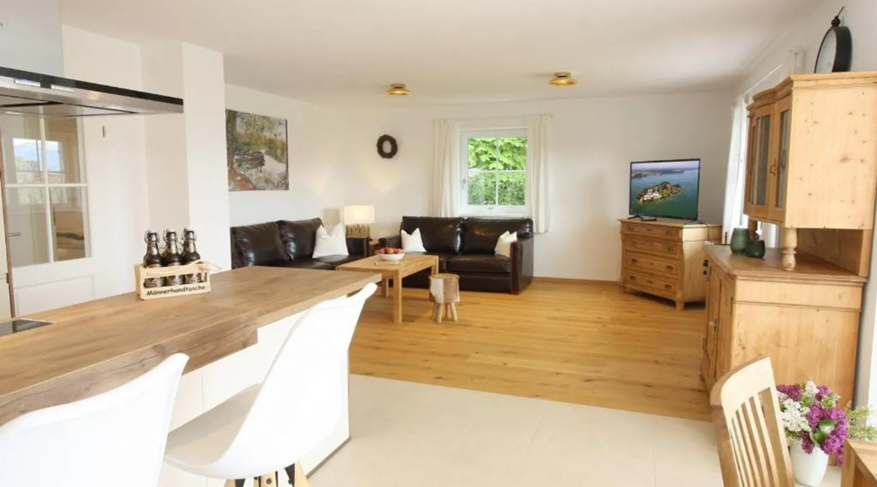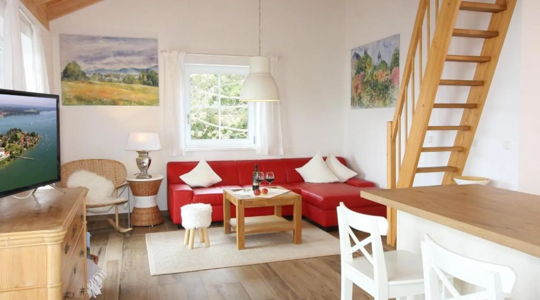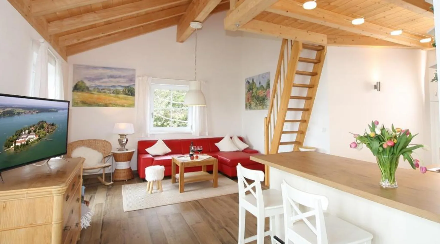 Comfortable Accommodations: Haus Chiemsee-Blick in Gstadt am Chiemsee offers a spacious apartment with a terrace and garden. Guests enjoy free WiFi, a sauna, and a children's playground. Modern Amenities: The apartment features a kitchenette, private bathroom, and a balcony with lake views. Additional amenities include a barbecue, dishwasher, and a sofa bed. Local Attractions: Herrenchiemsee is 1.9 mi away, while Max Aicher Arena lies 25 mi from the property. Boating and scuba diving are available in the surrounding area. Activities and Surroundings: Guests can engage in cycling, enjoy the outdoor play area, and relax in the sauna. Free on-site private parking is provided. Featuring a private entrance, this spacious apartment also is consisted of of 2 separate bedrooms and 1 bathroom with a walk-in shower and a hairdryer. Guests will find a stovetop, a refrigerator, a dishwasher and kitchenware in the fully equipped kitchenette. The apartment also has a barbecue. Boasting a balcony with lake views, this apartment also offers a tea and coffee maker and a flat-screen TV with satellite channels. The unit offers 2 beds.