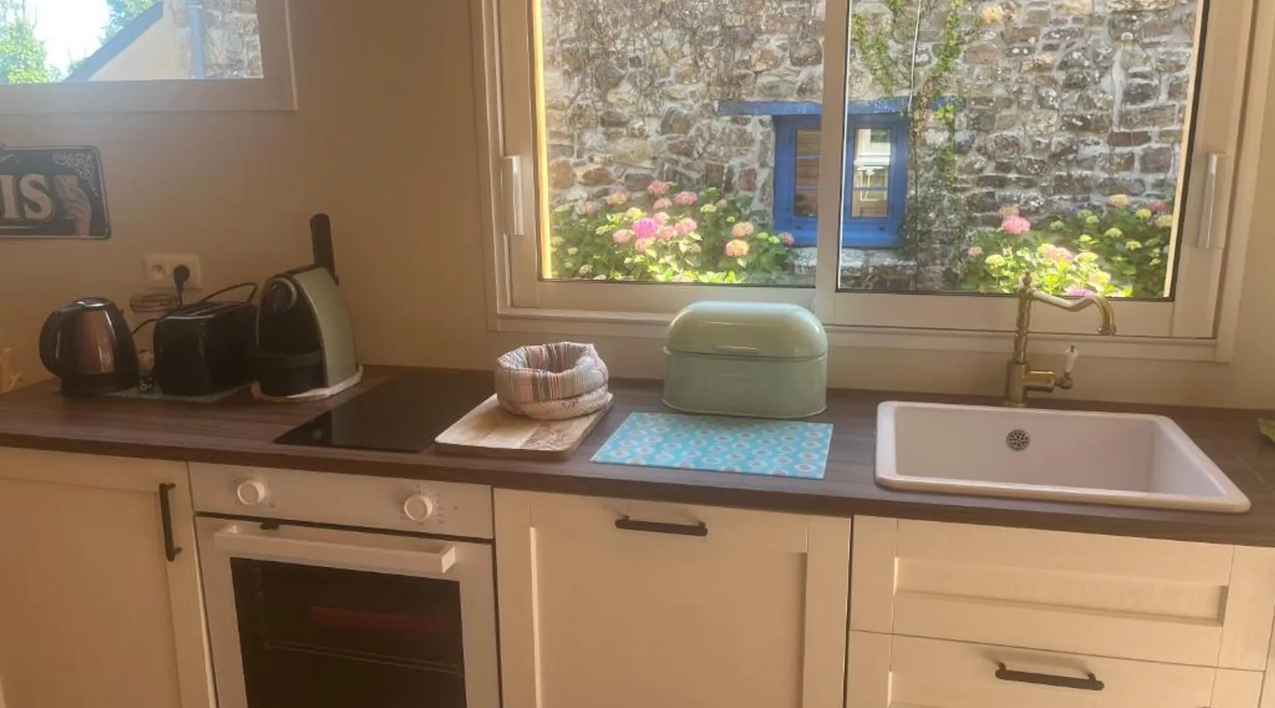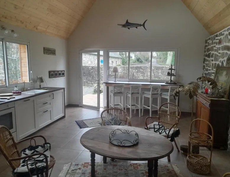 Charming Holiday Home in Crozon: Le cottage offers a serene retreat in Kerveneure, Crozon. Guests enjoy a beautiful garden and a spacious terrace, perfect for relaxation. Comfortable Accommodations: The property features family rooms with tiled and parquet floors. Each room includes a private bathroom with a walk-in shower, ensuring a comfortable stay. Modern Amenities: Equipped with a fully fitted kitchen, dishwasher, and coffee machine. Additional amenities include a barbecue, outdoor dining area, and free toiletries. Convenient Location: Located 8.7 mi from Cap de la Chèvre, the property provides easy access to local attractions. Hiking enthusiasts can explore the surrounding area. Guest Favorites: Guests highly rate the garden, location, and quietness of the area, making it a preferred choice for relaxation and leisure. Featuring a private entrance, this holiday home consists of 1 living room, 2 separate bedrooms and 1 bathroom with a walk-in shower and a hairdryer. Guests will find a stovetop, a refrigerator, a dishwasher and kitchenware in the kitchen. The holiday home also provides guests with a barbecue. The holiday home features a tea and coffee maker, a seating area, tumble dryer as well as a terrace with garden views. The unit offers 4 beds.