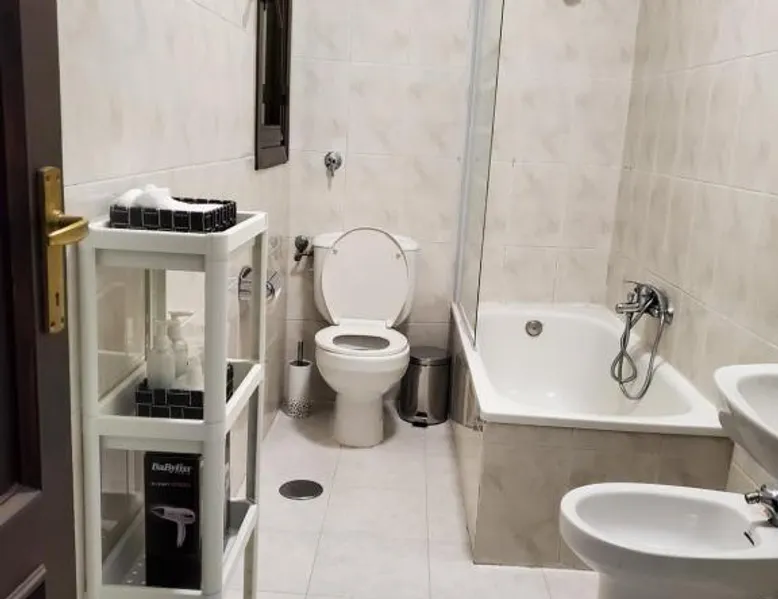 Spacious Accommodations: Piso termal in Ourense offers a spacious apartment with two bedrooms and a living room. The property features a terrace and balcony, providing ample space for relaxation. Modern Amenities: Guests enjoy free WiFi, a fully equipped kitchenette, washing machine, and a dining table. Additional amenities include a TV, parquet floors, and a private entrance. Convenient Location: Located 57 mi from Vigo Airport, the apartment is 1.1 mi from As Burgas Thermal Springs and 1.2 mi from the Auditorium - Exhibition Center. Pazo da Touza Golf is 13 mi away. Local Attractions: The area offers boating opportunities, with the river and city views providing scenic surroundings. This spacious apartment consists of 1 living room, 2 separate bedrooms and 1 bathroom with a bath and free toiletries. Guests can make meals in the kitchen that is equipped with a refrigerator, kitchenware, an oven and a microwave. The apartment provides a washing machine, a private entrance, a tea and coffee maker, a flat-screen TV, as well as city views. The unit offers 2 beds.