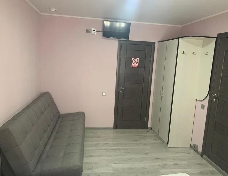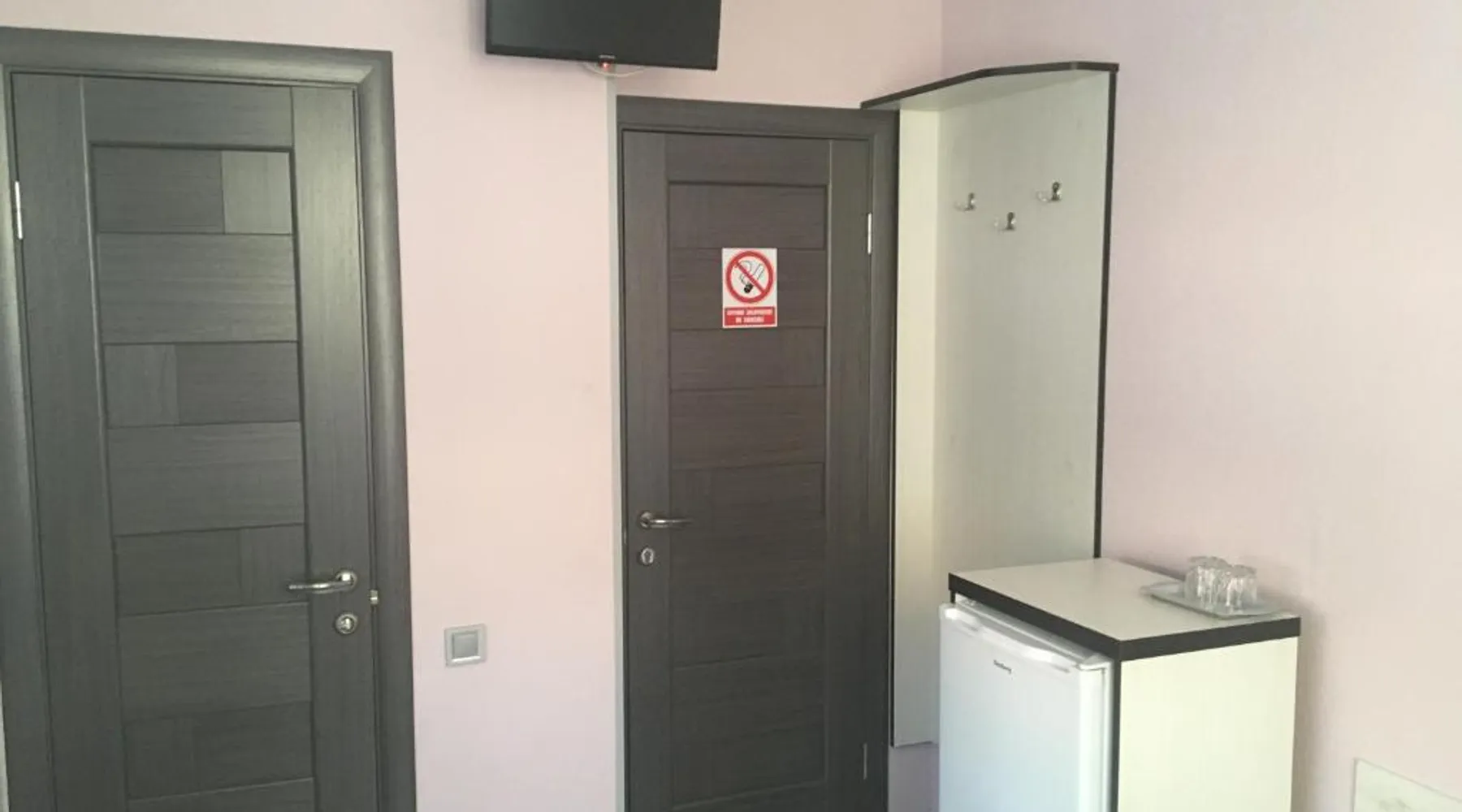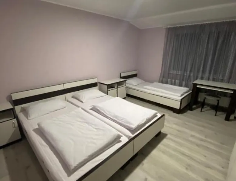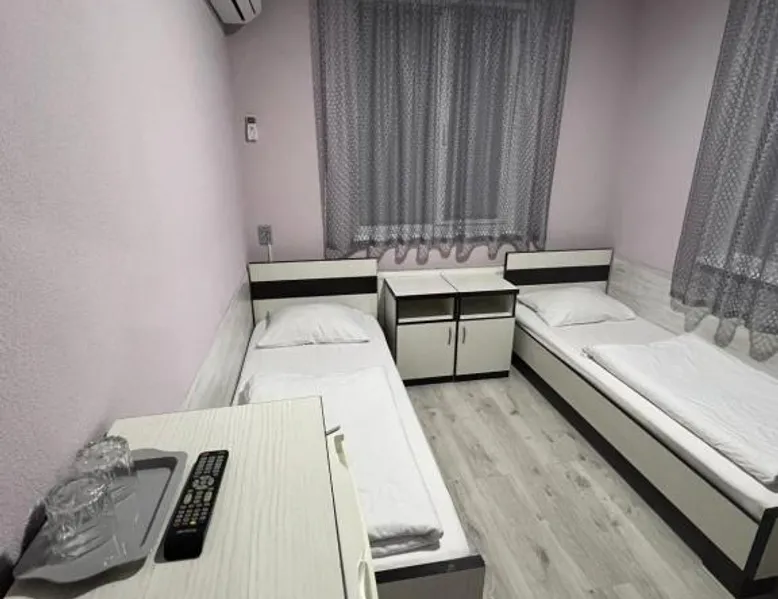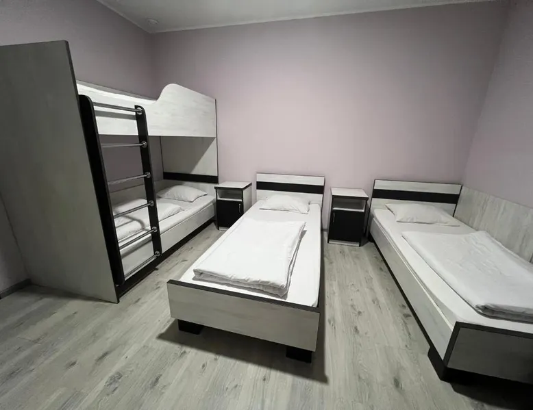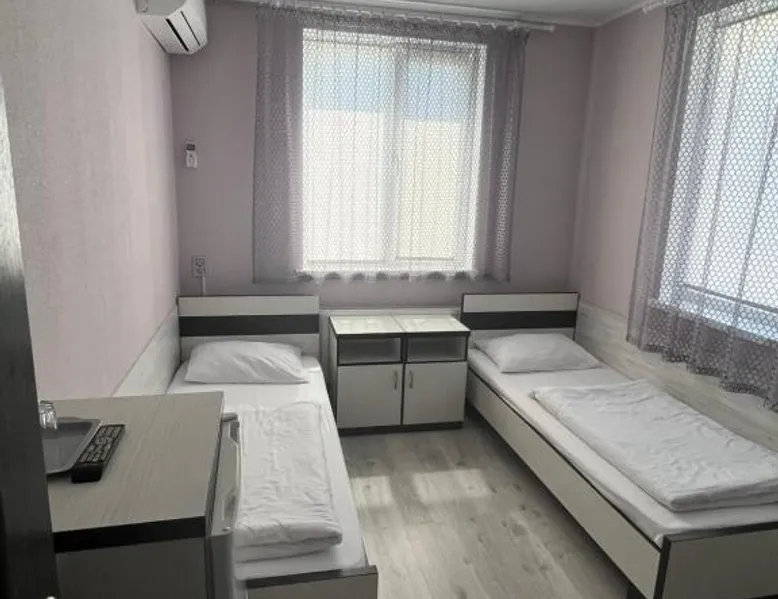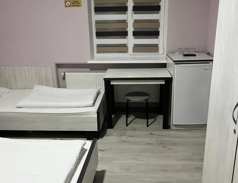 Comfortable Accommodations: Guest House MAX in Kherson offers family rooms with private bathrooms, air-conditioning, and soundproofing. Each room includes a TV, wardrobe, and dining area. Essential Facilities: Guests enjoy free WiFi, massage services, and a shared kitchen. The property provides full-day security and paid on-site private parking. Additional Amenities: The guest house features a dining table, sofa bed, refrigerator, and kitchenware. Private entrances and tiled floors enhance the comfort. Reception Services: Reception staff speak Polish and Ukrainian, ensuring effective communication for all guests. The family room provides air conditioning and soundproof walls, as well as a private bathroom featuring a bath. This family room features a wardrobe, heating and a flat-screen TV. The unit offers 2 beds.