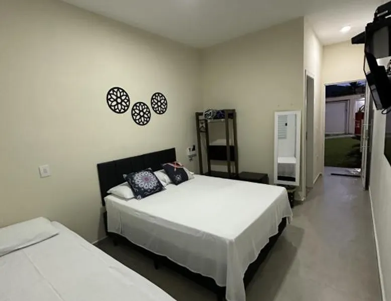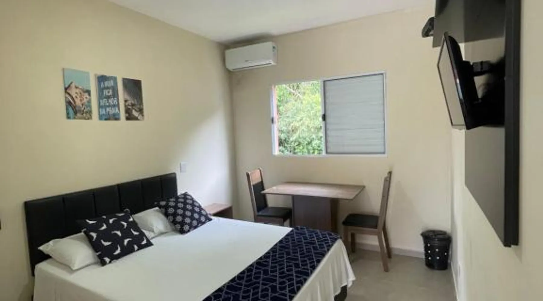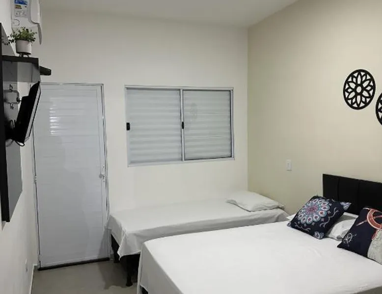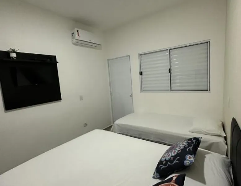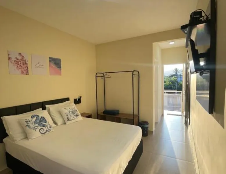 Comfortable Accommodations: Residencial 220 Maresias in Maresias offers family rooms with air-conditioning, private bathrooms, and garden, terrace, or pool views. Each room includes a mini-bar, TV, and soundproofing for a pleasant stay. Outdoor Amenities: Guests can relax in the year-round outdoor swimming pool, enjoy the garden, and unwind in the terrace. The property features an outdoor seating area and inner courtyard views, enhancing the outdoor experience. Convenient Location: Maresias Beach is a 12-minute walk away, while the International Square of Surf lies less than 0.6 mi from the guest house. Sao Sebastiao Port is 17 mi distant, and Sunset Square is 6.8 mi away. Guest Satisfaction: Highly rated for room cleanliness, attentive staff, and convenient location, Residencial 220 Maresias ensures a pleasant and comfortable stay for all visitors. The quadruple room includes a private bathroom equipped with a shower. The air-conditioned quadruple room provides a flat-screen TV with satellite channels, soundproof walls, a mini-bar, a tiled floor as well as garden views. The unit offers 3 beds.