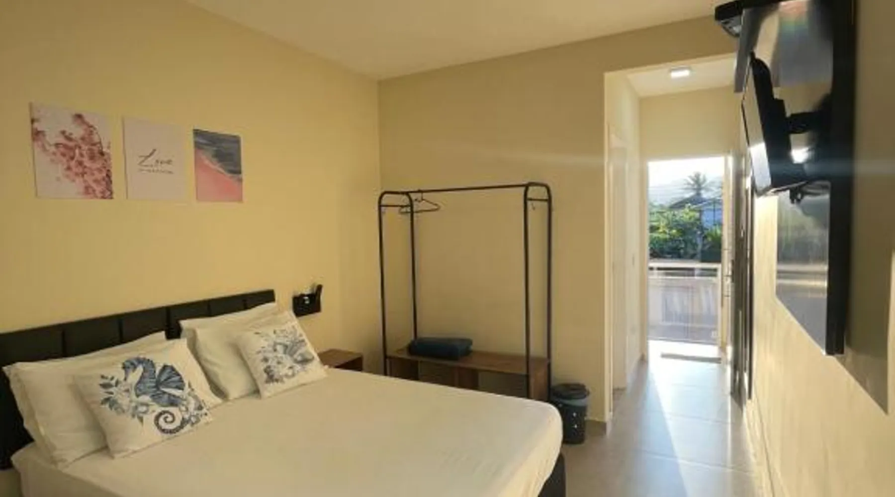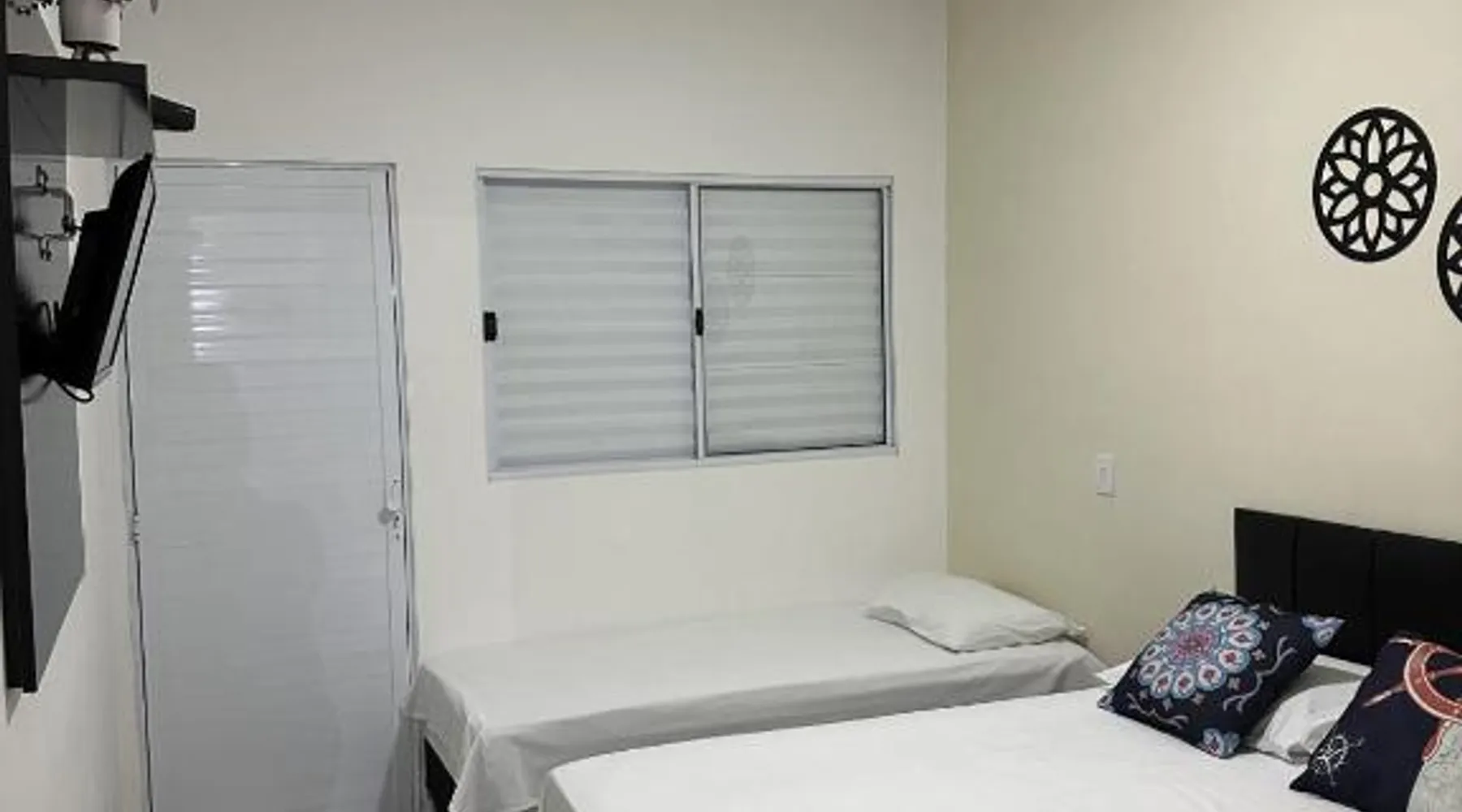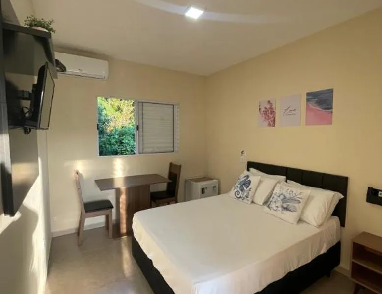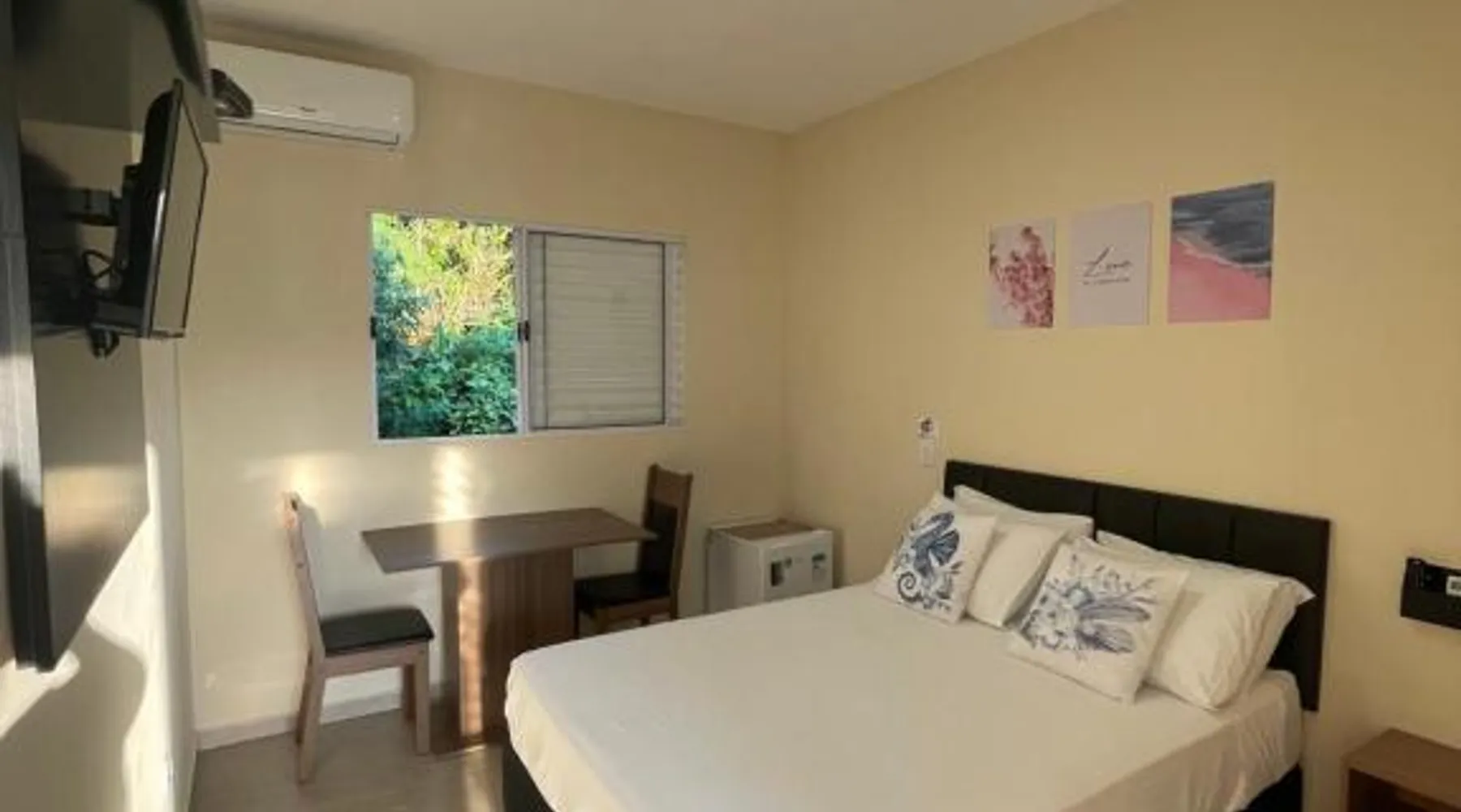 Comfortable Accommodations: Residencial 220 Maresias in Maresias offers family rooms with air-conditioning, private bathrooms, and garden, terrace, or pool views. Each room includes a mini-bar, TV, and soundproofing for a pleasant stay. Outdoor Amenities: Guests can relax in the year-round outdoor swimming pool, enjoy the garden, and unwind in the terrace. The property features an outdoor seating area and inner courtyard views, enhancing the outdoor experience. Convenient Location: Maresias Beach is a 12-minute walk away, while the International Square of Surf lies less than 0.6 mi from the guest house. Sao Sebastiao Port is 17 mi distant, and Sunset Square is 6.8 mi away. Guest Satisfaction: Highly rated for room cleanliness, attentive staff, and convenient location, Residencial 220 Maresias ensures a pleasant and comfortable stay for all visitors. The quadruple room includes a private bathroom equipped with a shower. The air-conditioned quadruple room provides a flat-screen TV with satellite channels, soundproof walls, a mini-bar, a tiled floor as well as garden views. The unit offers 3 beds.