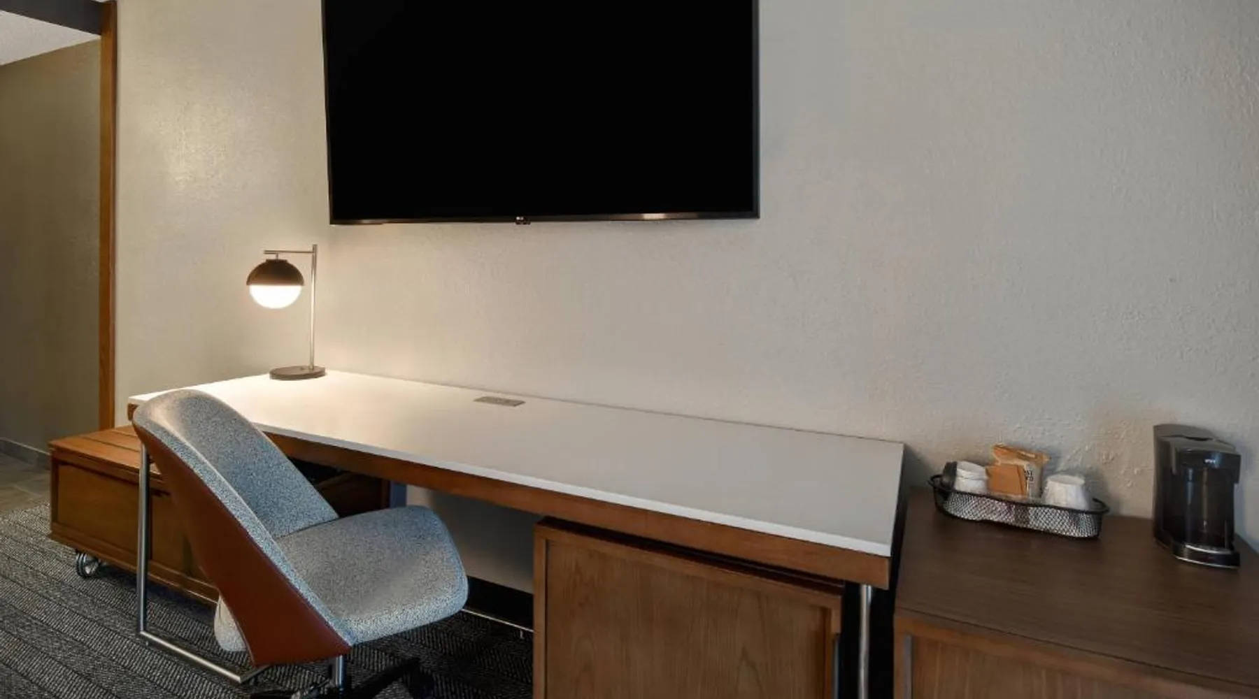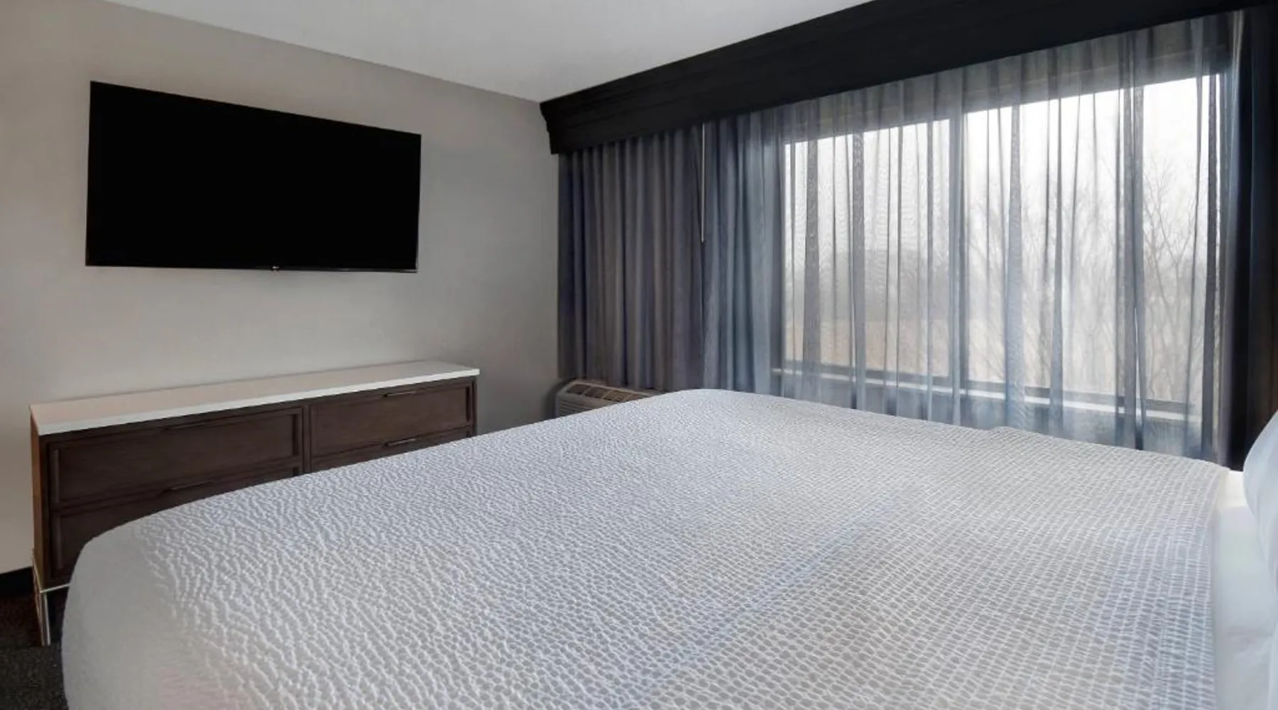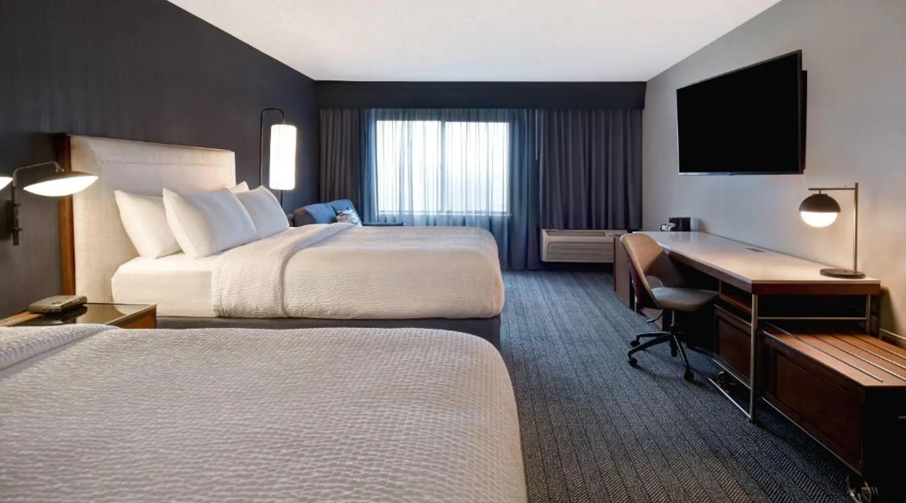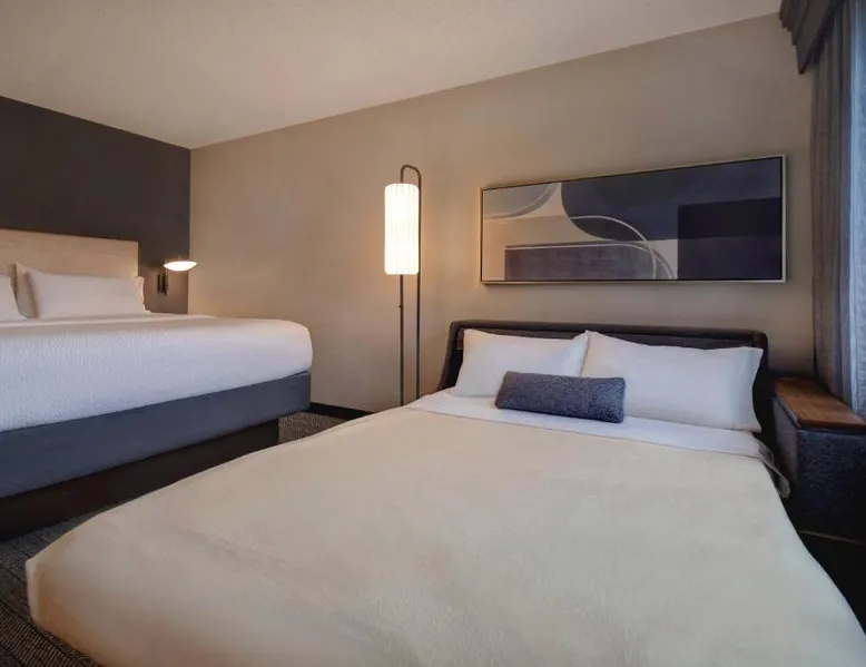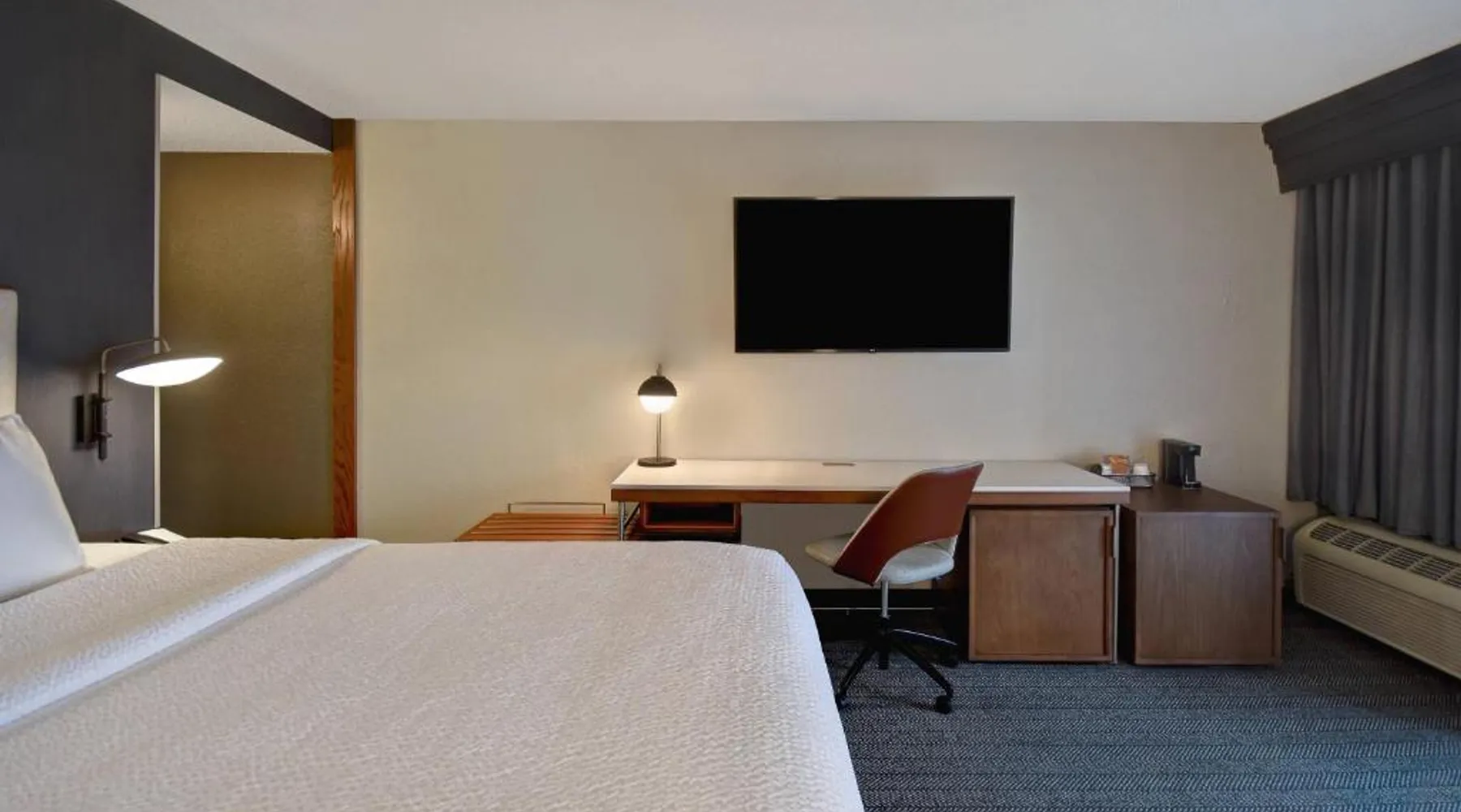 Comfortable Accommodations: Courtyard by Marriott Cincinnati Airport in Erlanger offers family rooms with air-conditioning, private bathrooms, and free WiFi. Each room includes a work desk, sofa bed, and TV. Dining and Amenities: The hotel features a restaurant serving American cuisine for dinner. Guests can relax on the sun terrace or enjoy the on-site restaurant. Additional facilities include a minimarket, picnic area, and electric vehicle charging station. Convenient Location: Located 1.2 mi from Cincinnati/Northern Kentucky International Airport, the hotel is close to attractions such as Pioneer Park (7.5 mi) and the Cincinnati Zoo (14 mi). Free on-site private parking is available. Guest Satisfaction: Highly rated for its convenient location, connectivity to the airport, and attentive staff, the hotel ensures a pleasant stay for all visitors. Featuring a seating area with a sofa bed, this room also has a flat-screen cable TV and a desk.