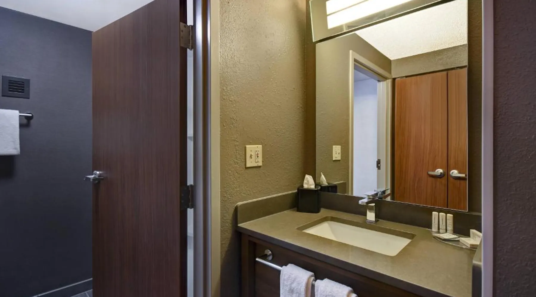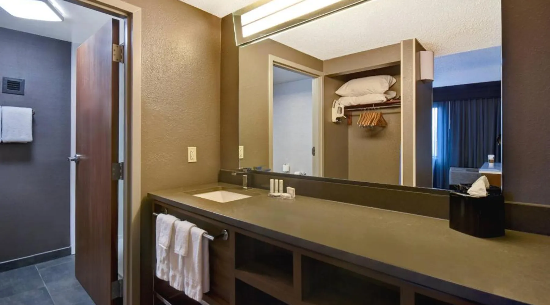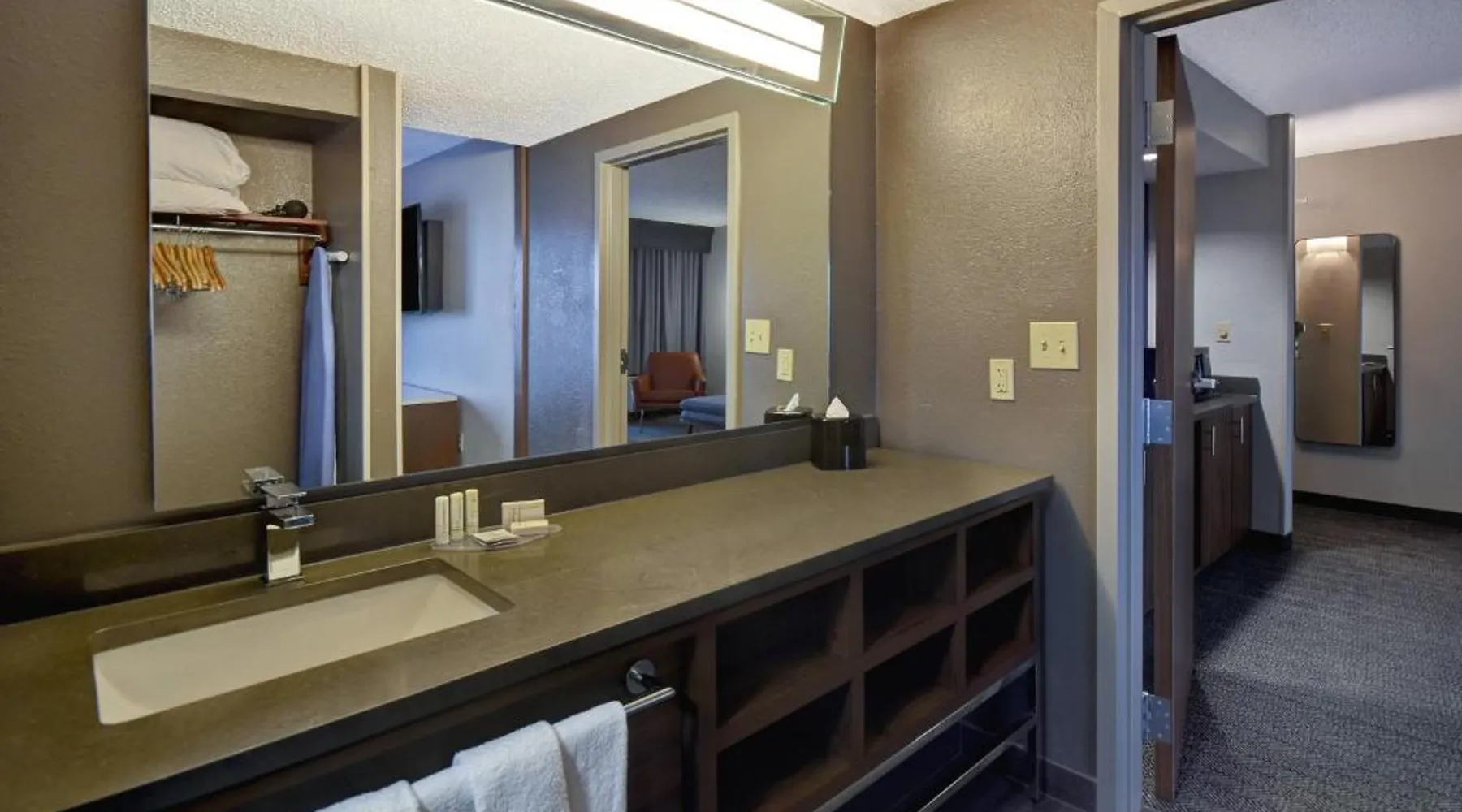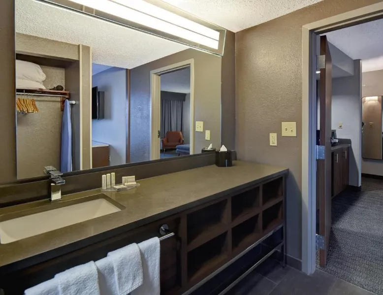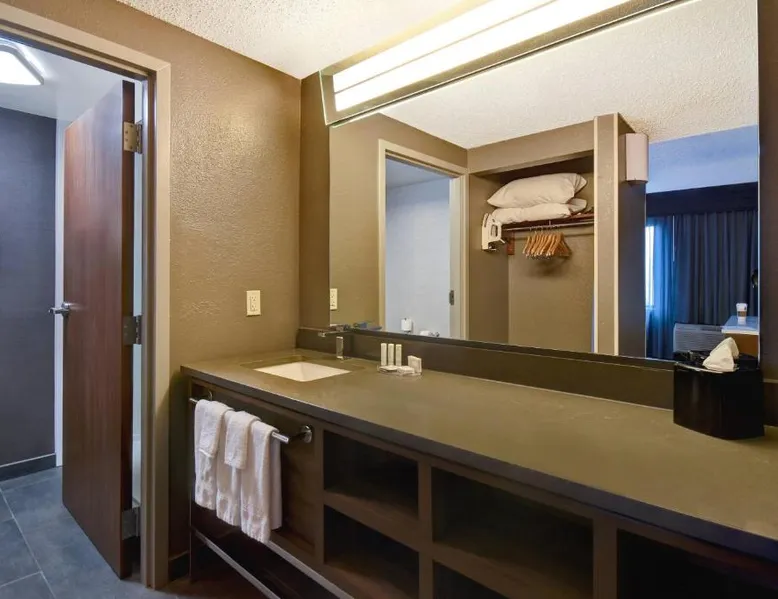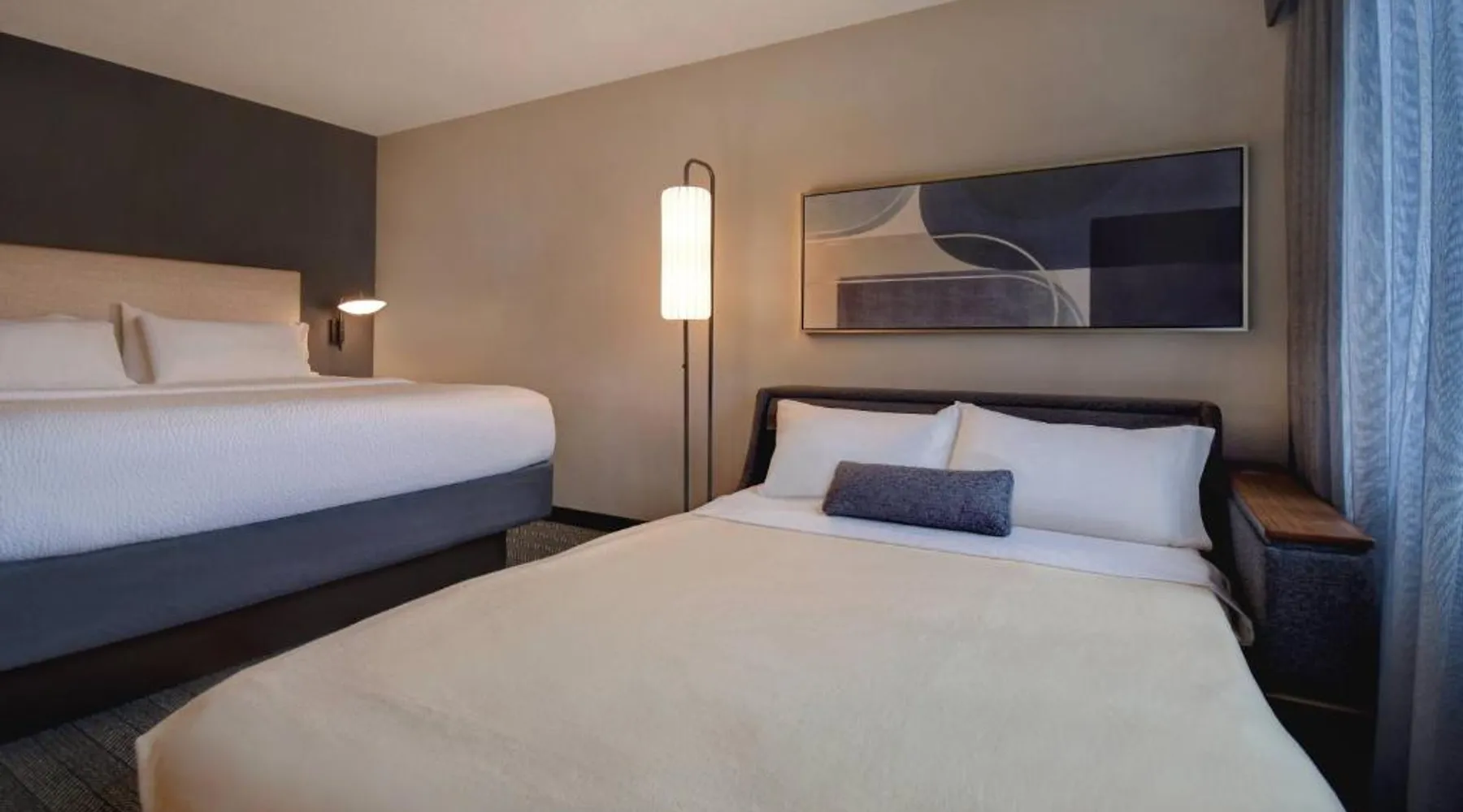Comfortable Accommodations: Courtyard by Marriott Cincinnati Airport in Erlanger offers family rooms with air-conditioning, private bathrooms, and free WiFi. Each room includes a work desk, sofa bed, and TV. Dining and Amenities: The hotel features a restaurant serving American cuisine for dinner. Guests can relax on the sun terrace or enjoy the on-site restaurant. Additional facilities include a minimarket, picnic area, and electric vehicle charging station. Convenient Location: Located 1.2 mi from Cincinnati/Northern Kentucky International Airport, the hotel is close to attractions such as Pioneer Park (7.5 mi) and the Cincinnati Zoo (14 mi). Free on-site private parking is available. Guest Satisfaction: Highly rated for its convenient location, connectivity to the airport, and attentive staff, the hotel ensures a pleasant stay for all visitors. Featuring a seating area with a sofa bed, this room also has a flat-screen cable TV and a desk.