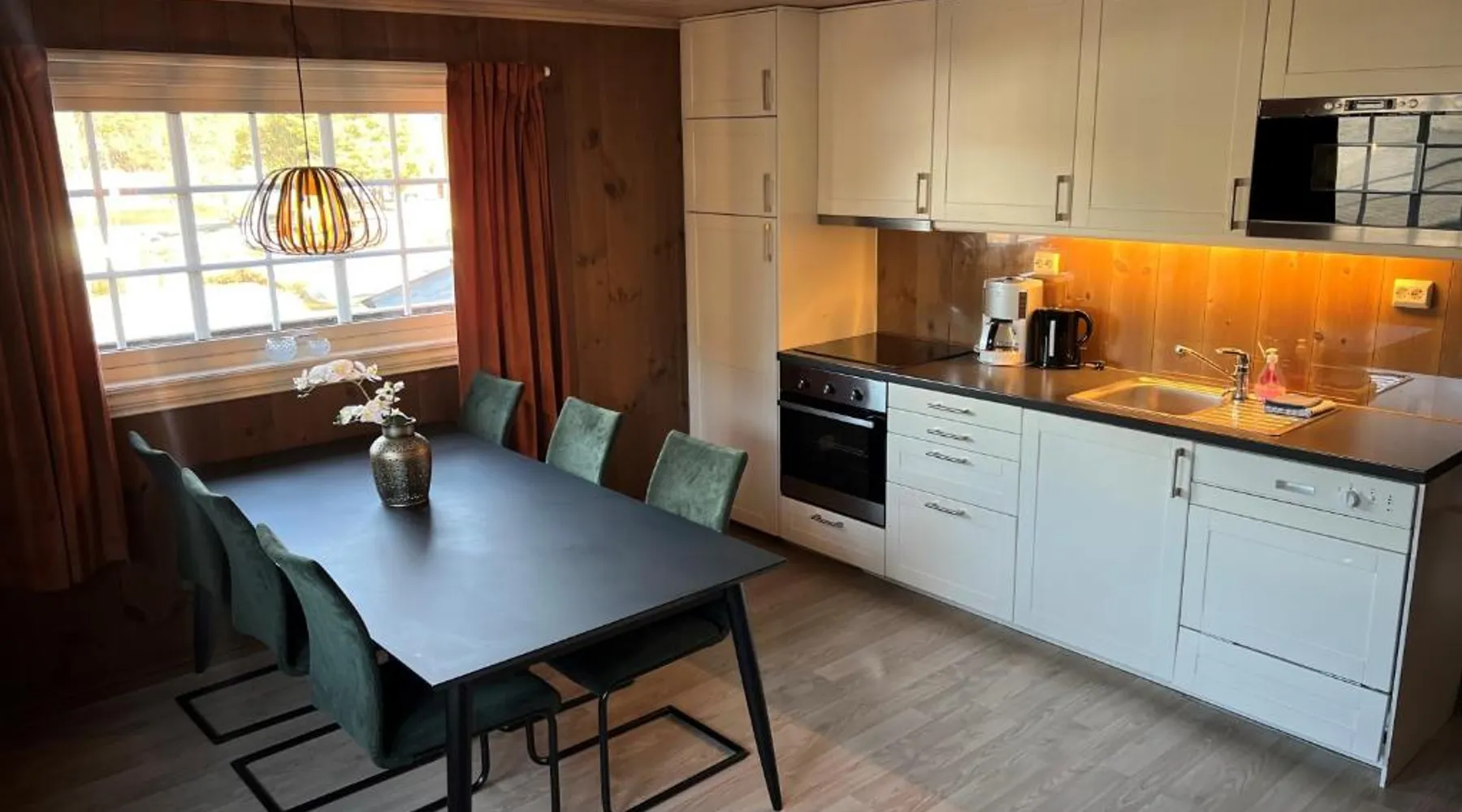 Located along the Strande Fjord, this property is 656 feet from Fagernes town center. It features free Wi-Fi, as well as accommodations with a fully equipped kitchen and flat-screen satellite TV. A balcony or terrace with a fjord view can be enjoyed from all cottages and apartments at Fagernes Campingpark. Some have a private bathroom, while others have access to shared facilities. BBQ equipment, a children's playground, along with on-site bicycle and boat rental is available at Campingpark Fagernes. During the summer, guests can enjoy a restaurant and kiosk on site. Valdres Museum is located next to the property and features a restaurant that is open all year. Area activities include hiking, fishing and canoeing. Jotunheimen National Park is 25 mi away. This apartment has a balcony, dishwasher and seating area. The living room features a sofa bed and a bunk bed with two bunks.