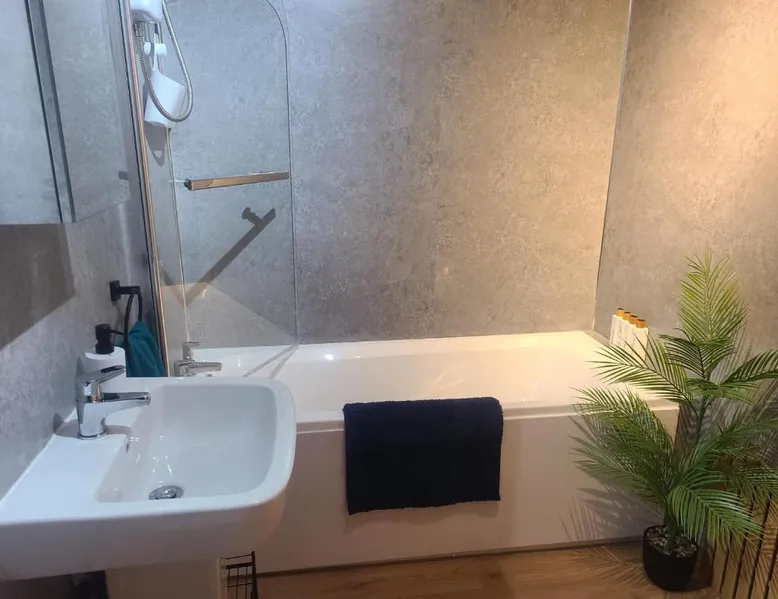 Historic Setting: Vale View Apartment in Prestatyn offers a recently renovated apartment within a historic building. Guests enjoy mountain and city views from the living room. Modern Amenities: The apartment features a bar, free WiFi, and private check-in and check-out services. Additional facilities include a paid airport shuttle, elevator, and free on-site parking. Comfortable Living: The apartment includes a bedroom, bathroom, and a fully equipped kitchen with a refrigerator, oven, and microwave. Guests can relax in the seating area or enjoy mountain views from the balcony. Prime Location: Located less than 0.6 mi from Prestatyn Central Beach and 47 mi from Liverpool John Lennon Airport, the apartment is near attractions such as Bodelwyddan Castle (8.7 mi) and Llandudno Pier (25 mi). Highly rated for its convenient location, room cleanliness, and beach access. This apartment features a double bed and a bathroom with a bath and a shower. It has a fully equipped kitchen and a dining table that can seat up to 4 people. A seating area with a leather sofa and a large leather bean bag is provided. A single folding bed and a travel cot are available.