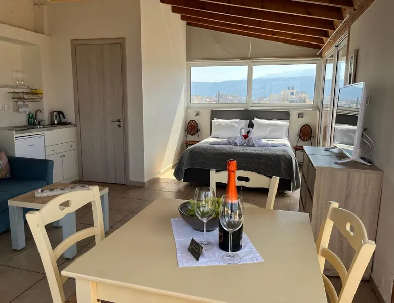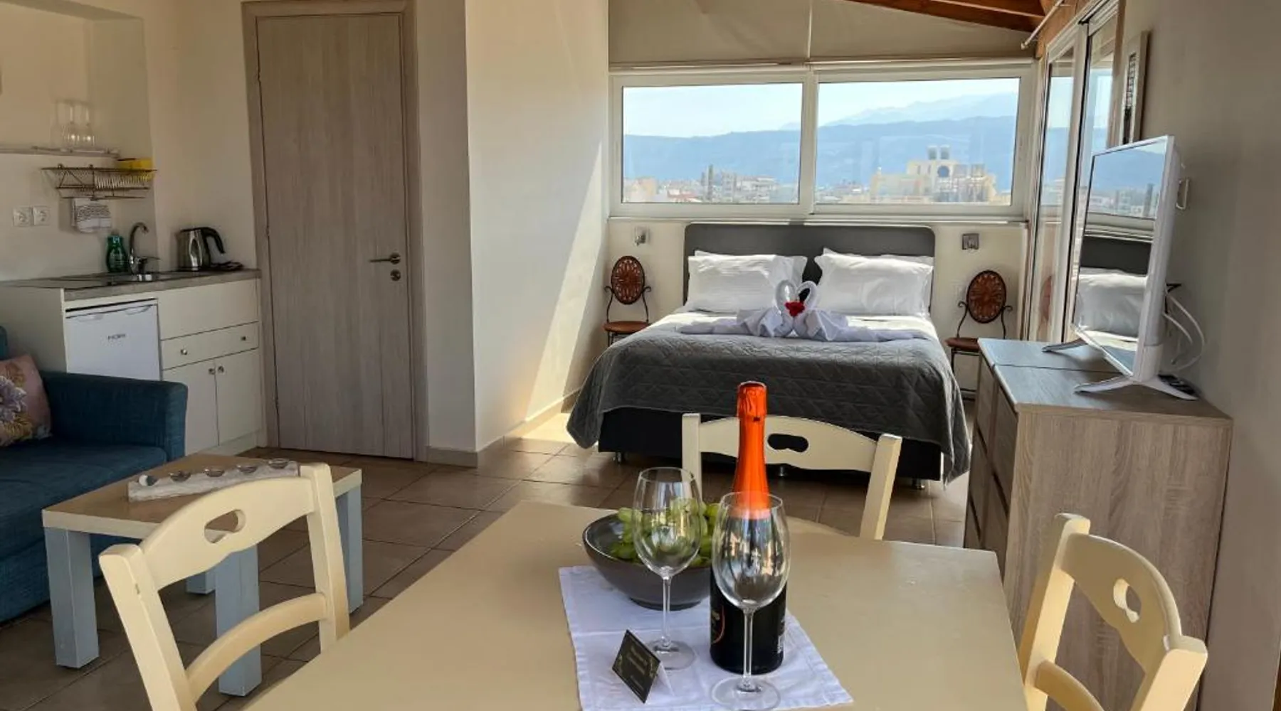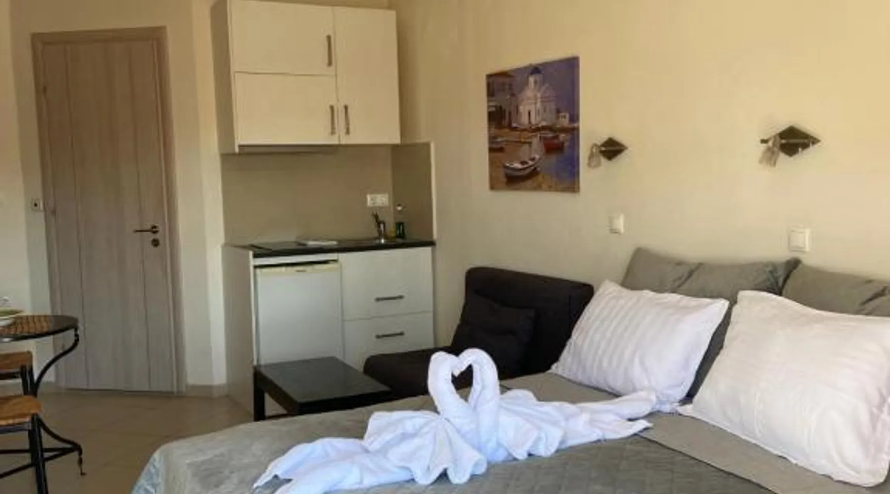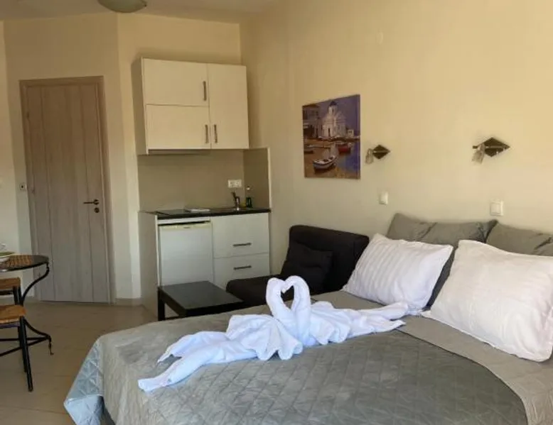 Within 164 feet from the beach, Candia Hotel is located in Chania Town. Free WiFi access is available in all areas. Opening to a balcony, each accommodations unit here will provide you with a flat-screen TV and air conditioning. Complete with a refrigerator, the dining area also has an electric kettle. Featuring a bath or shower, private bathroom also comes with a hairdryer. Extras include an outdoor seating area and a safety deposit box. Other facilities offered at Candia Hotel include luggage storage and laundry facilities. The Old Town of Chania with an array of shops, cafes and bars is within 2297 feet. Souda Airport is 7.5 mi away. Free public parking is possible nearby. Opening to a balcony, this air-conditioned studio includes a flat-screen TV, a kitchenette with fridge and a safety deposit box. It features 2 single beds and a double sofa bed.