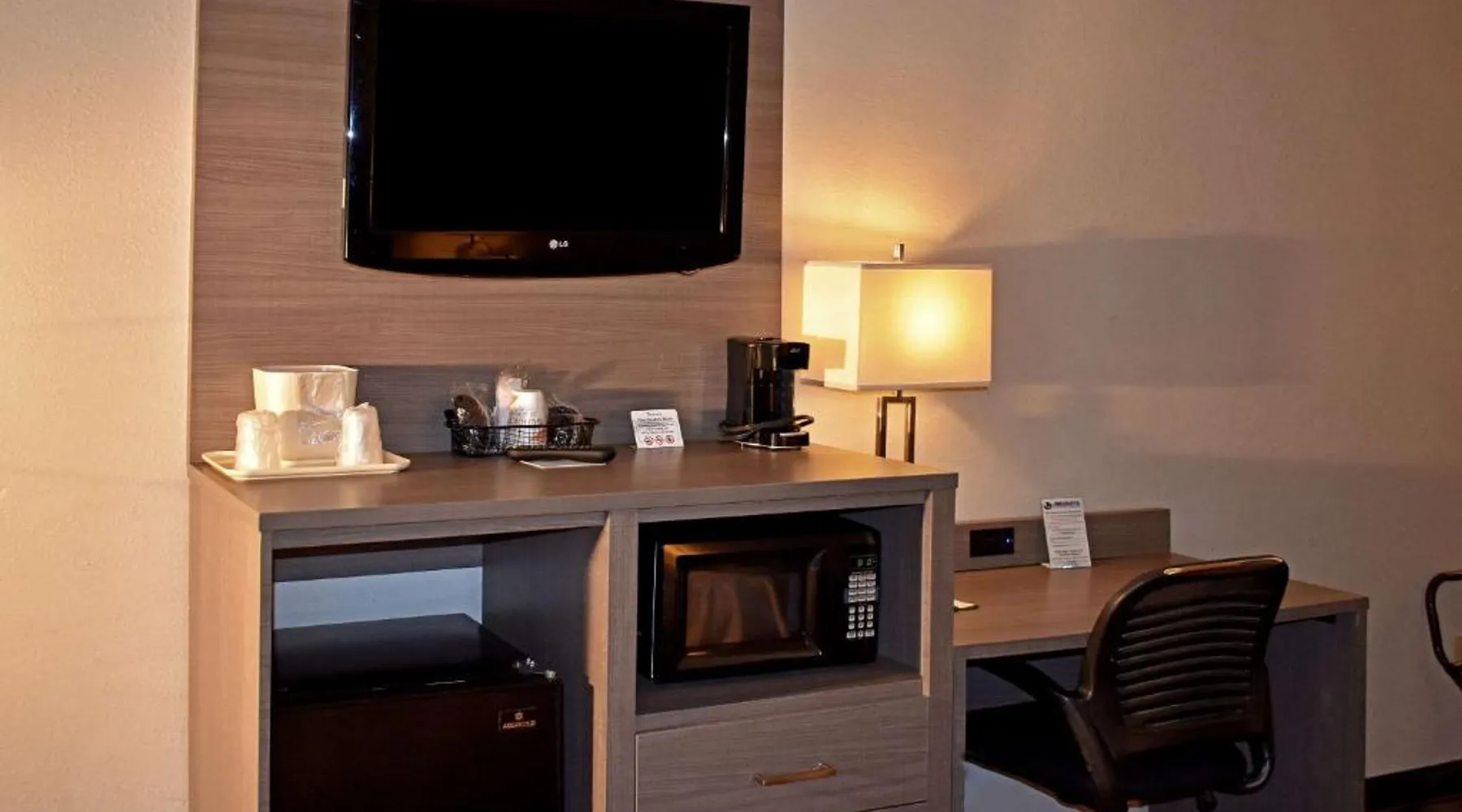 Comfortable Accommodations: Rooms feature air-conditioning, refrigerators, microwaves, TVs, and free WiFi. Additional amenities include spa baths, tea and coffee makers, hairdryers, and showers. Leisure Facilities: Guests can enjoy a fitness center, seasonal outdoor swimming pool, and free on-site private parking. The hotel offers a 24-hour front desk, business area, and room service. Dining Options: A continental breakfast is served with fresh pastries and fruits. Location and Attractions: Located in Martinsburg, the hotel is 30 mi from Hagerstown Regional Airport. Nearby attractions include Locust Hill Golf Course (14 mi), Appalachian Trail Conference Headquarters (16 mi), Harpers Ferry National Historical Park (17 mi), and Glen Burnie Historic House And Gardens (27 mi). Guests appreciate the room cleanliness, value for money, and convenient location. This family room features a tea and coffee maker and a TV. The unit has 2 beds.