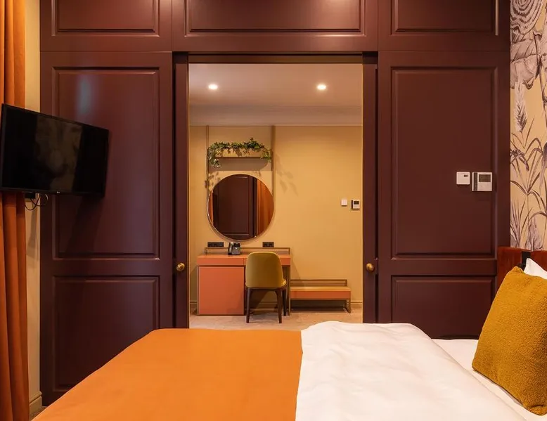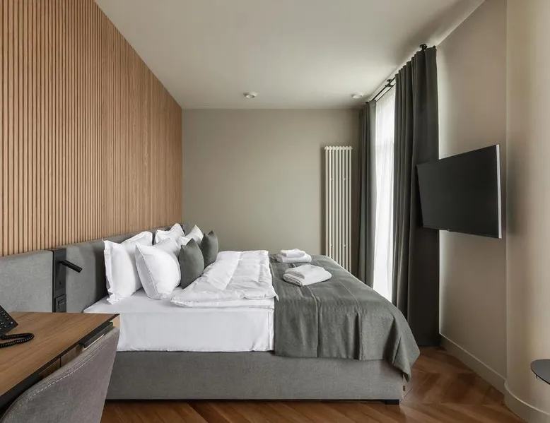 Comfortable Accommodations: Potocki Boutique Hotel in Kherson offers family rooms with air-conditioning, private bathrooms, and city views. Each room includes a work desk, mini-bar, and free WiFi. Dining Experience: Guests can enjoy a terrace, restaurant, and bar. The family-friendly restaurant serves American, Italian, Japanese, and Mediterranean cuisines, alongside vegetarian, vegan, and gluten-free options. Breakfast includes continental, full English/Irish, and vegetarian selections. Leisure Facilities: The hotel features a hot tub, sauna, and spa bath. Additional amenities include a coffee shop, live music, and culture classes. Free on-site private parking is available. Location and Activities: Located in Kherson, the hotel is near boating activities. Highly rated for its restaurant, breakfast, and attentive staff. Providing free toiletries and bathrobes, this double room includes a private bathroom with a shower, a hairdryer and slippers. The air-conditioned double room provides a flat-screen TV, soundproof walls, a mini-bar, a tea and coffee maker as well as city views. The unit offers 1 bed.