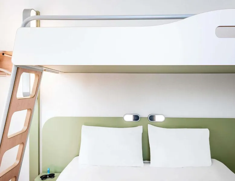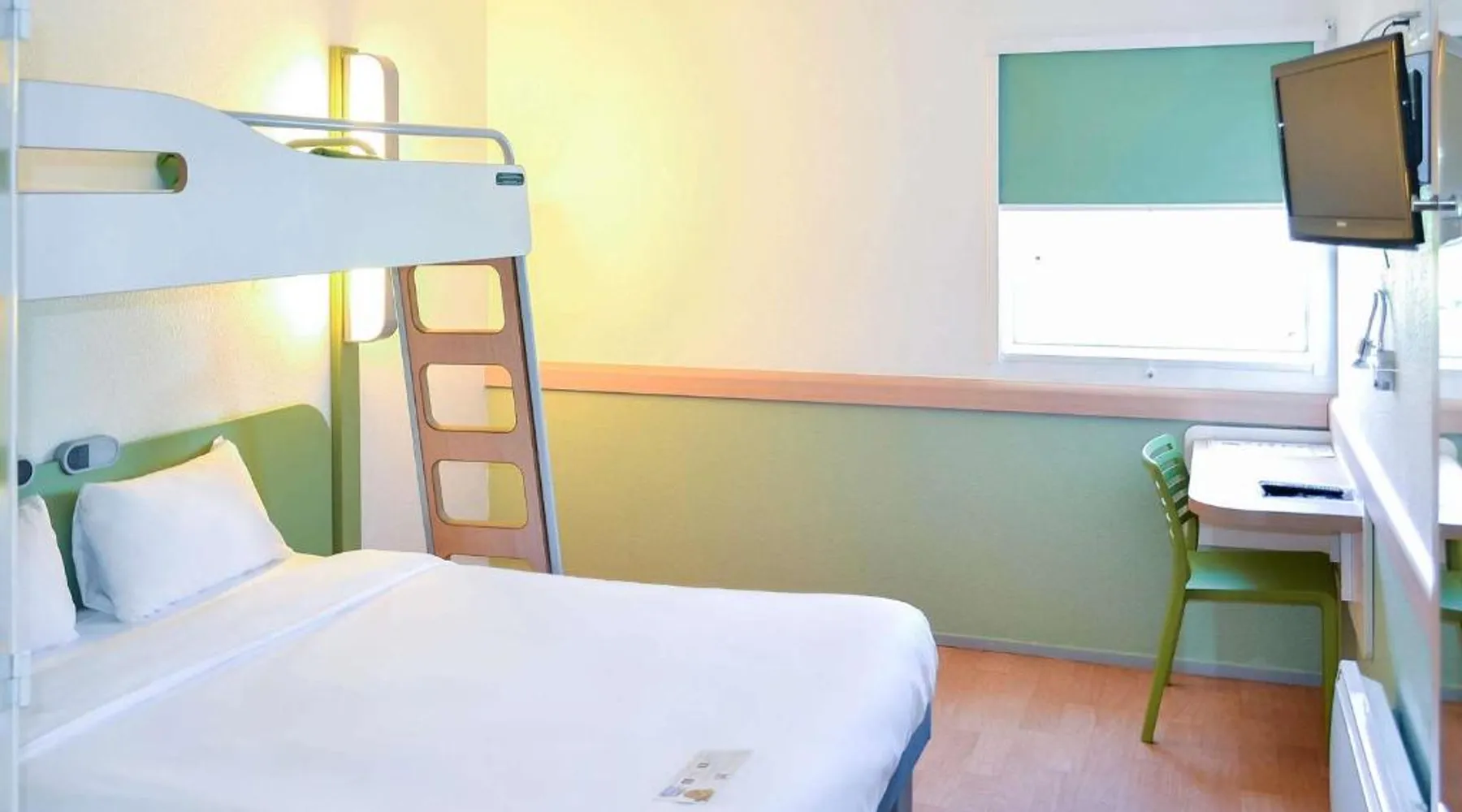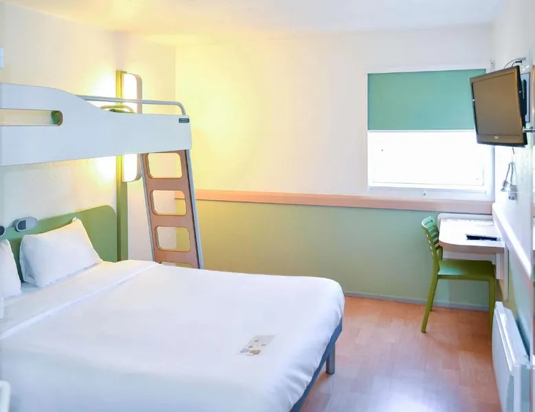 This ibis budget hotel provides low-cost accommodations in the Rhone-Alpes region 3.7 mi from Lake Bourget. It offers free private on-site parking and free Wi-Fi is available throughout the hotel. Rooms at ibis budget are equipped with a private bathroom, desk and TV. Hotel ibis budget Aix Les Bains serves a buffet breakfast each morning. Restaurants and cafes are less than 0.6 mi away. The hotel is a 20-minute drive from Annecy and Chambery. It is accessible from the A41 motorway. This room has a double bed, a bunk bed a WiFi connection and a flat-screen TV. The bathroom has a shower and a toilet. The bunk bed is not recommended for children aged under 6 years old.