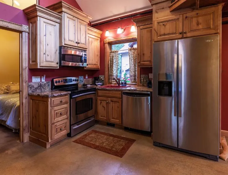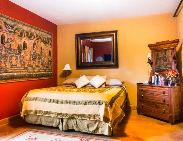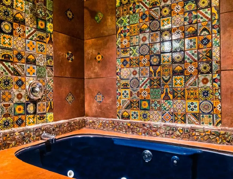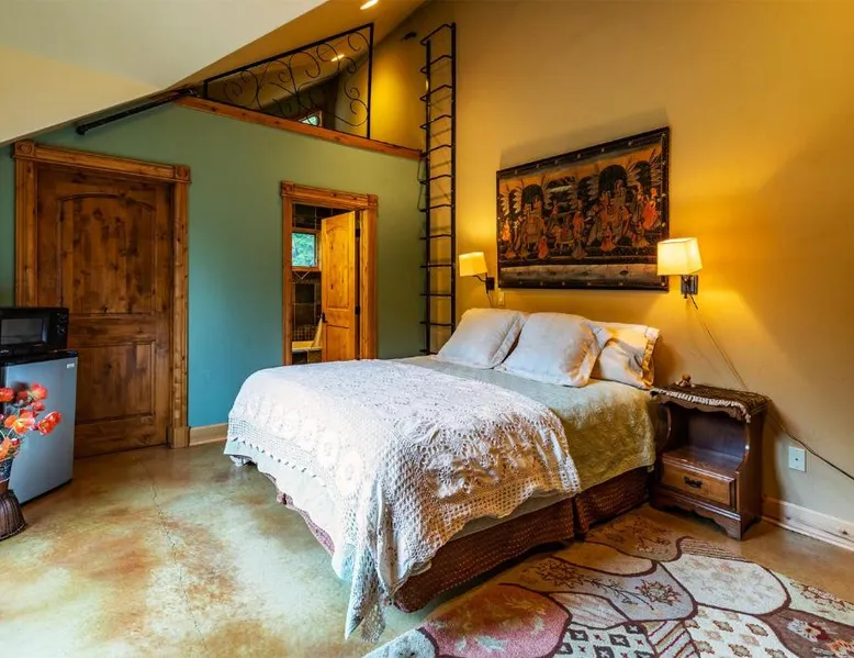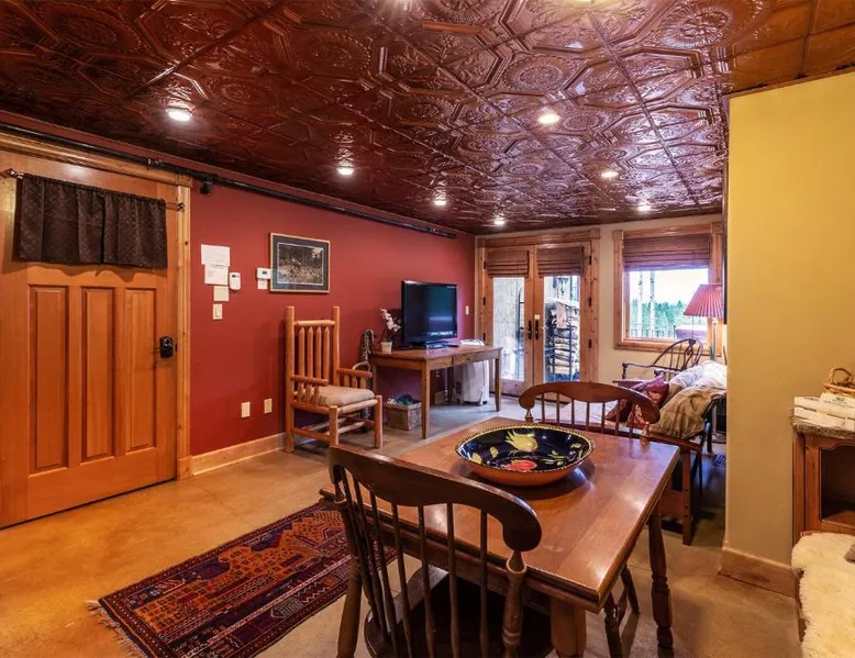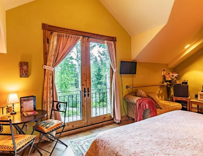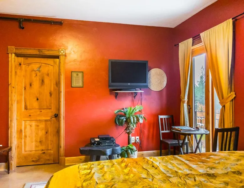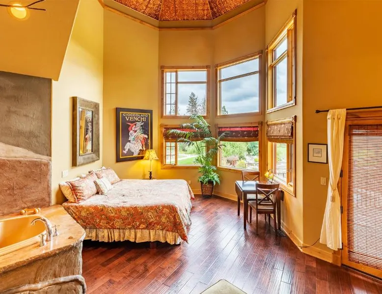 Elegant Accommodations: Talus Rock Retreat in Sandpoint offers a 5-star lodge experience with a sauna, sun terrace, and a seasonal outdoor swimming pool. Guests enjoy free WiFi, a garden, and a hot tub for relaxation. Comfortable Amenities: The property features private check-in and check-out, a lounge, outdoor fireplace, and wellness packages. Additional amenities include a shared kitchen, electric vehicle charging station, and free on-site parking. Outdoor Activities: Guests can engage in fishing, skiing, hiking, and cycling. The surrounding area offers scenic views of mountains and a serene environment ideal for nature trips. Convenient Location: Located 79 mi from Spokane International Airport, the retreat provides easy access to local attractions. Highly rated for its staff and service support, Talus Rock Retreat ensures a memorable stay. This peaceful room features a Parisian balcony with sliding glass doors and includes views of the waterfall, pond and Cabinet Mountains. The bathroom features vibrant colors and inlaid with over 200 Talavera Mexican tiles that surround a deep jetted tub. This room is also known as "Kipling Room".