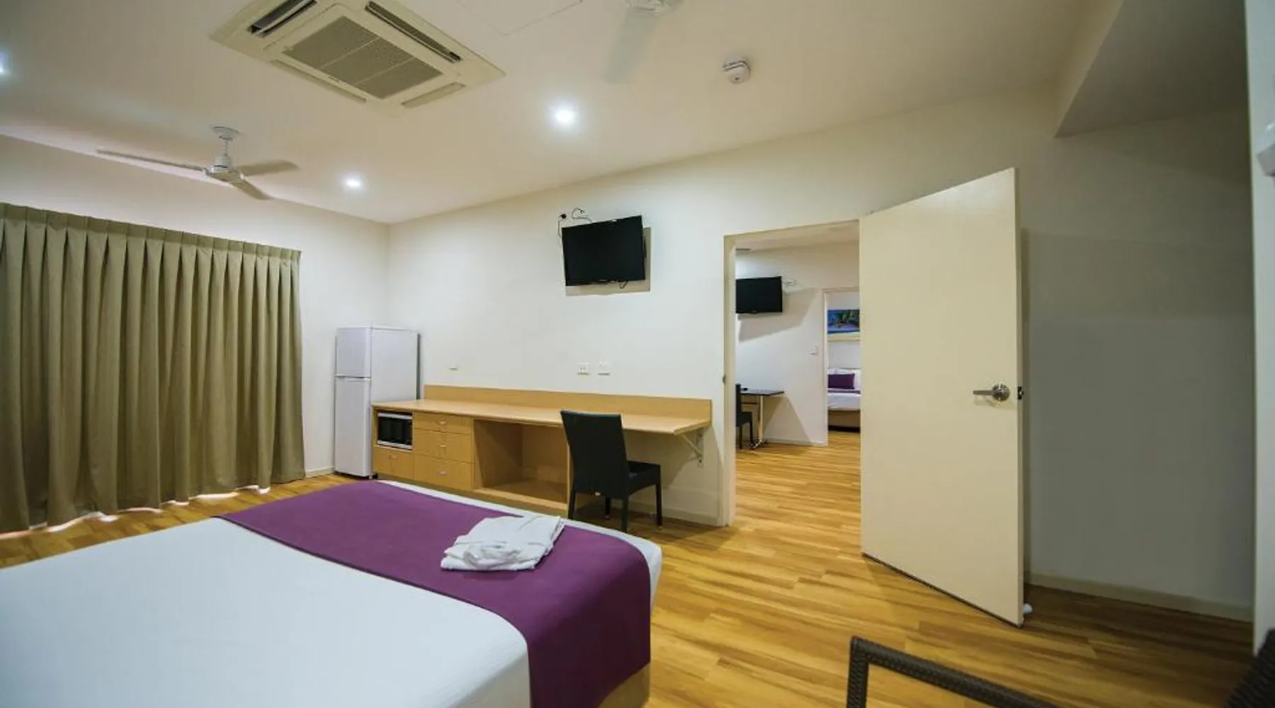 Set in the Northern suburbs of Darwin just 656 feet from the stunning Lee Point Beach, Club Tropical Resort Darwin features 2 salt water pools, BBQ areas, Al-fresco dining area and an on-site restaurant. Free WiFi is provided. The stylish accommodations and apartments come with a balcony or patio, garden views and air conditioning. They feature a flat-screen TV with cable channels, a seating area, fridge, microwave and a toaster. Each room type has a private bathroom with free toiletries. The villas come with a fully-equipped kitchen. Guests can relax poolside or prepare a BBQ under the outdoor covered seating areas. The tour office operates during the dry season and can assist with Kakadu National park tours, day trips and fishing tours. Darwin International Airport is a 5-minute drive away and TIO Stadium in Marrara is a 10-minute drive. Darwin CBD and Charles Darwin National Park are both within a 20-minute drive away by car. This 2-bedroom apartment with an interconnecting door to a Deluxe Room, features a kitchenette with a dishwasher, 2 burner hotplate, crockery and utensils and both pots and pans. A balcony or patio offering garden views is provided as well as a flat-screen TV, a seating area, full size refrigerator, a microwave and a toaster. 2 queen-sized bed and 1 double sofa bed are included as well as free WiFi and cable channels.