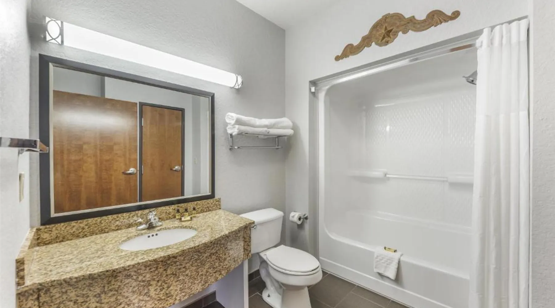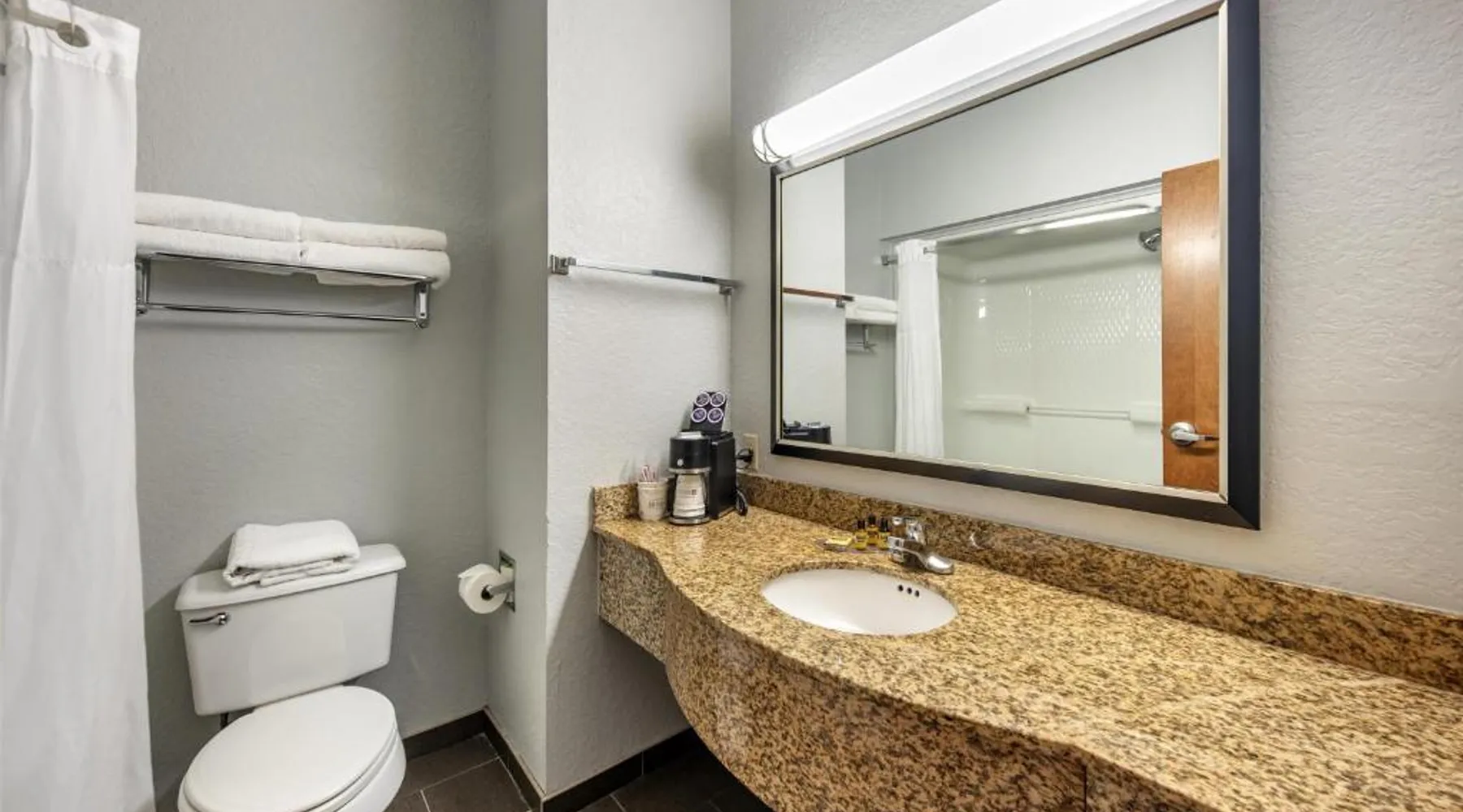 Just off Route 87 and less than 1.5 miles from downtown Fredericksburg, this hotel features an outdoor pool. Free Wi-Fi is available in all areas. A 32-inch flat-screen TV and a coffee maker are found in each wood-furnished room at the Best Western Plus Fredericksburg. A work desk and an iron are also included. Guests of the Fredericksburg Best Western Plus are welcome to relax in the on-site hot tub. Vending machines and 24-hour front desk service are also available. A hot breakfast buffet including Texas-shaped waffles, hot coffee and biscuits and gravy is served every morning. The National Museum of the Pacific War is less than one mile from the Best Western Plus. The Lady Bird Johnson Golf Course is 4 miles away. The spacious double room has a private bathroom, air conditioning, a tea and coffee maker, as well as a seating area with a flat-screen TV. The double room features heating. The unit has 2 beds.