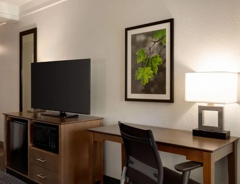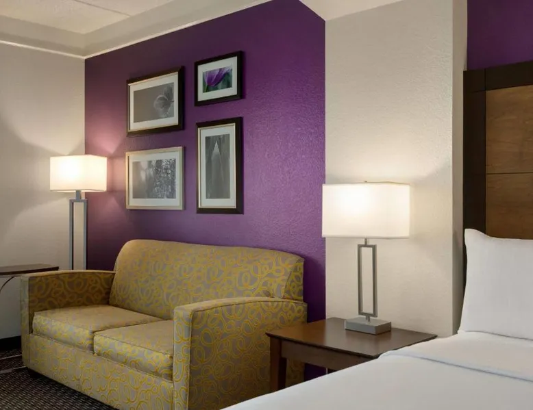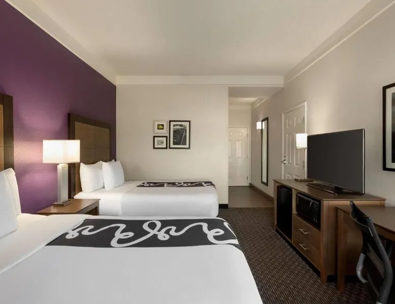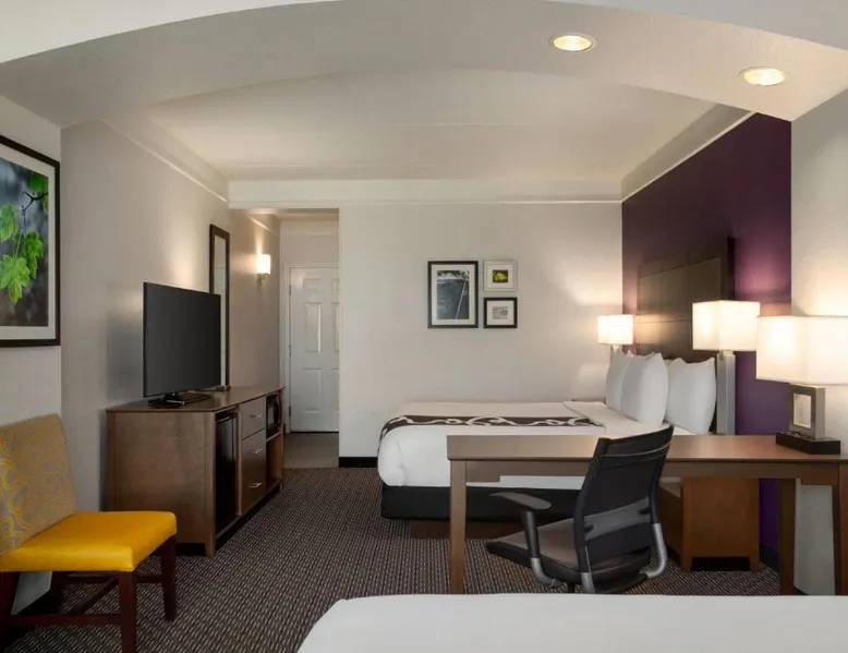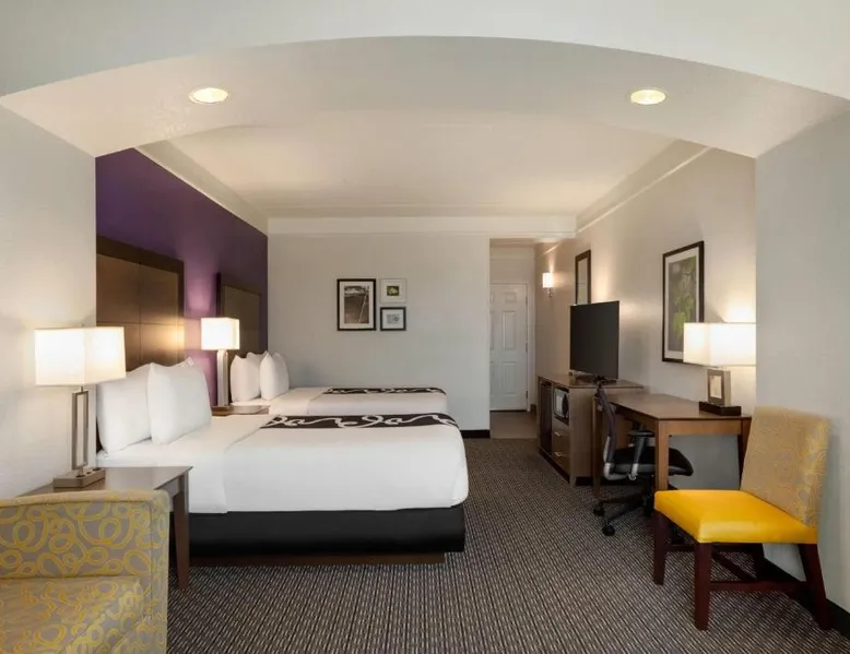 Six Flags Over Texas is less than half a mile from this Arlington Hotel. Free Wi-Fi is included in all guest rooms. A continental breakfast is served daily, and there is a bar and lounge on site. A flat-screen HD cable TV with premium channels is offered in each room at the pet-friendly La Quinta Inn & Suites Arlington North 6 Flags Drive. A microwave, refrigerator and coffee-making facilities are included. An outdoor pool and hot tub are available. A business center and fitness center are provided for guest convenience. A daily transfer service is offered to DFW Airport, Cowboys Stadium, and other locations within a 5 mile radius of Arlington North 6 Flags Drive La Quinta Inn & Suites. Arlington Convention Center and Dallas Cowboys Stadium are within 3 miles of La Quinta Inn & Suites Arlington North 6 Flags Drive. Dallas Fort Worth Airport is 20 minutes’ drive away. Free Wi-Fi, a flat-screen HD cable TV with premium channels, a microwave, refrigerator and coffee-making facilities are included in this room.