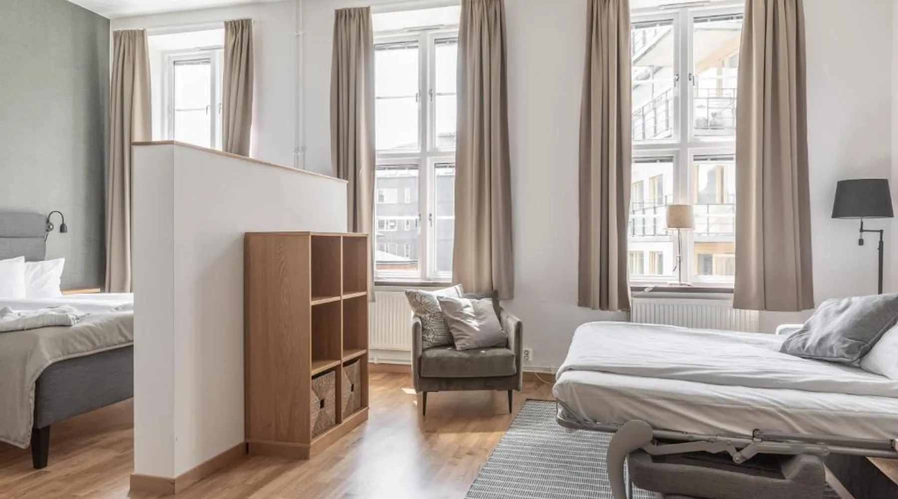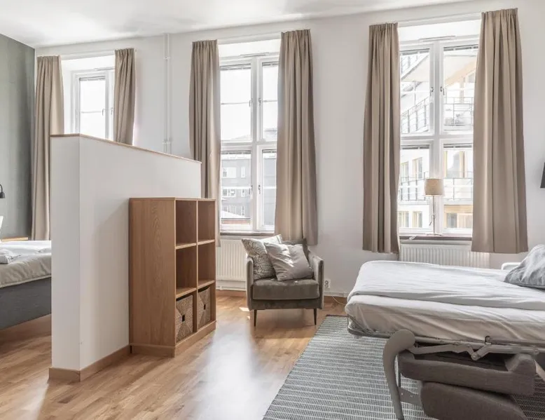This eco-friendly hotel is within 5 minutes’ walk of Triangeln Station and the vibrant Möllevången district. It offers modern, stylish apartments with free internet, gym and sauna access. The More Hotel is located in an old chocolate factory dating back to the late 1800s. Each apartment includes a kitchen, seating area, tiled bathroom and cable TV. Guests can utilize hotel services such as laundry and dry cleaning. Regional buses depart from Bergsgatan, right next to The More Hotel. Malmö Central Station is about 20 minutes’ walk away. Includes kitchen, seating area, cable TV and bathroom with shower.