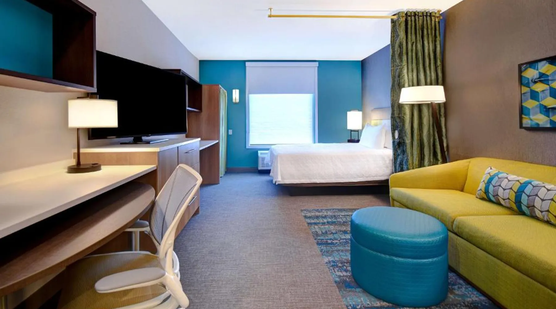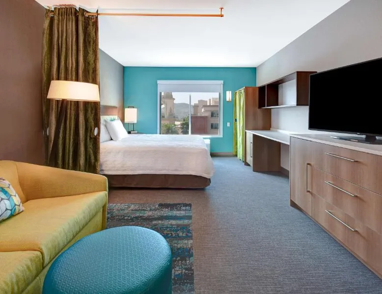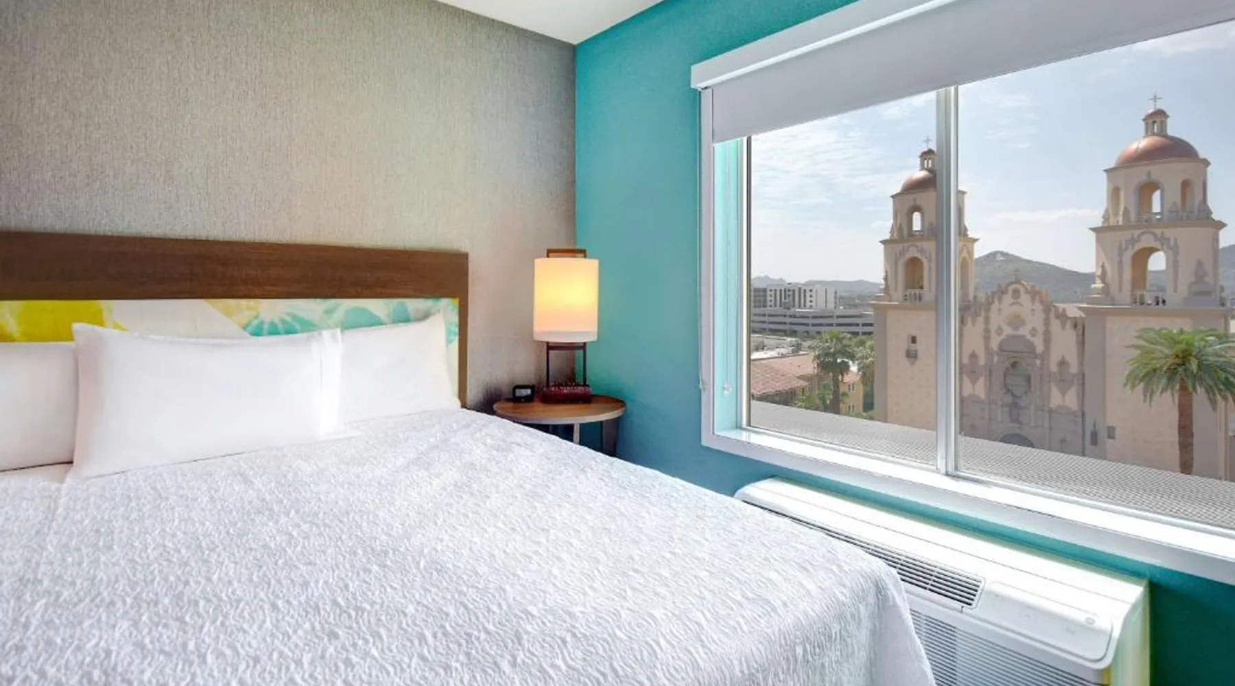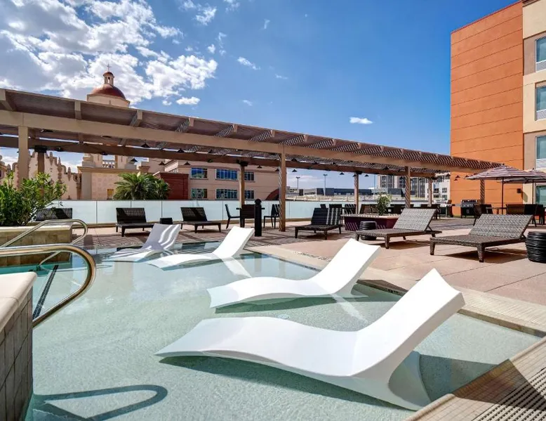 Comfortable Accommodations: Rooms feature air-conditioning, free WiFi, and modern amenities including a work desk, sofa bed, and flat-screen TV. Guests appreciate the spacious layout and comfortable furnishings. Leisure Facilities: The hotel offers a fitness center, sun terrace, and a year-round outdoor swimming pool. Additional facilities include a lounge, fitness room, and outdoor seating areas. Convenient Location: Located in Tucson, the property is less than 0.6 mi from Tucson Convention Center and a 10-minute walk to Tucson Museum Of Art. Tucson International Airport is 6.8 mi away. Guest Services: The hotel provides a 24-hour front desk, concierge service, and express check-in and check-out. Additional amenities include a child-friendly buffet, electric vehicle charging station, and bicycle parking. The suite offers air conditioning, a tea and coffee maker, a seating area, heating, as well as a flat-screen TV with cable channels. The unit has 2 beds.